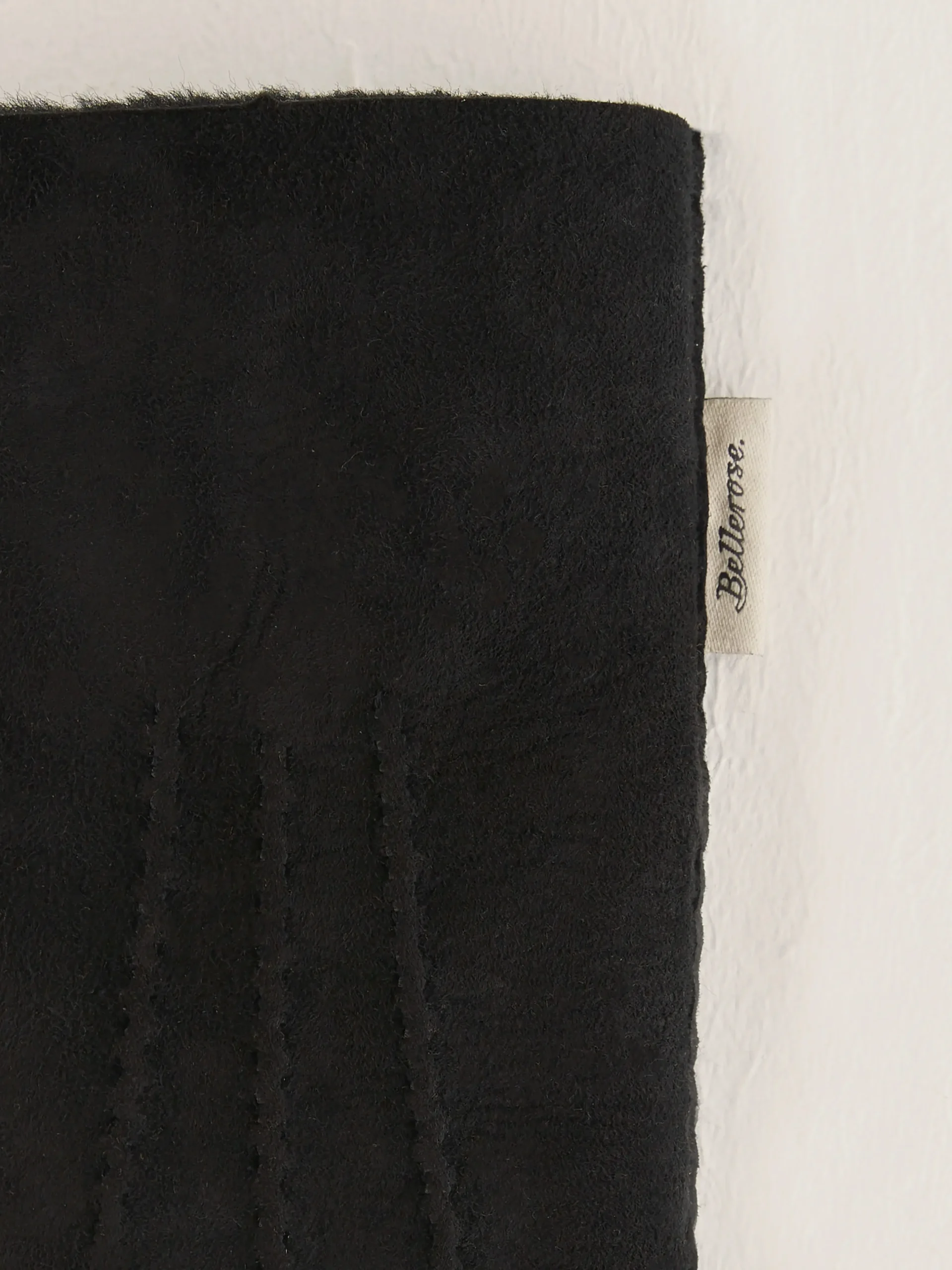Handschoenen zonder vingers in zwart leer met shearlingwol.rBinnenkant van shearlingrGestikte details bovenaanr