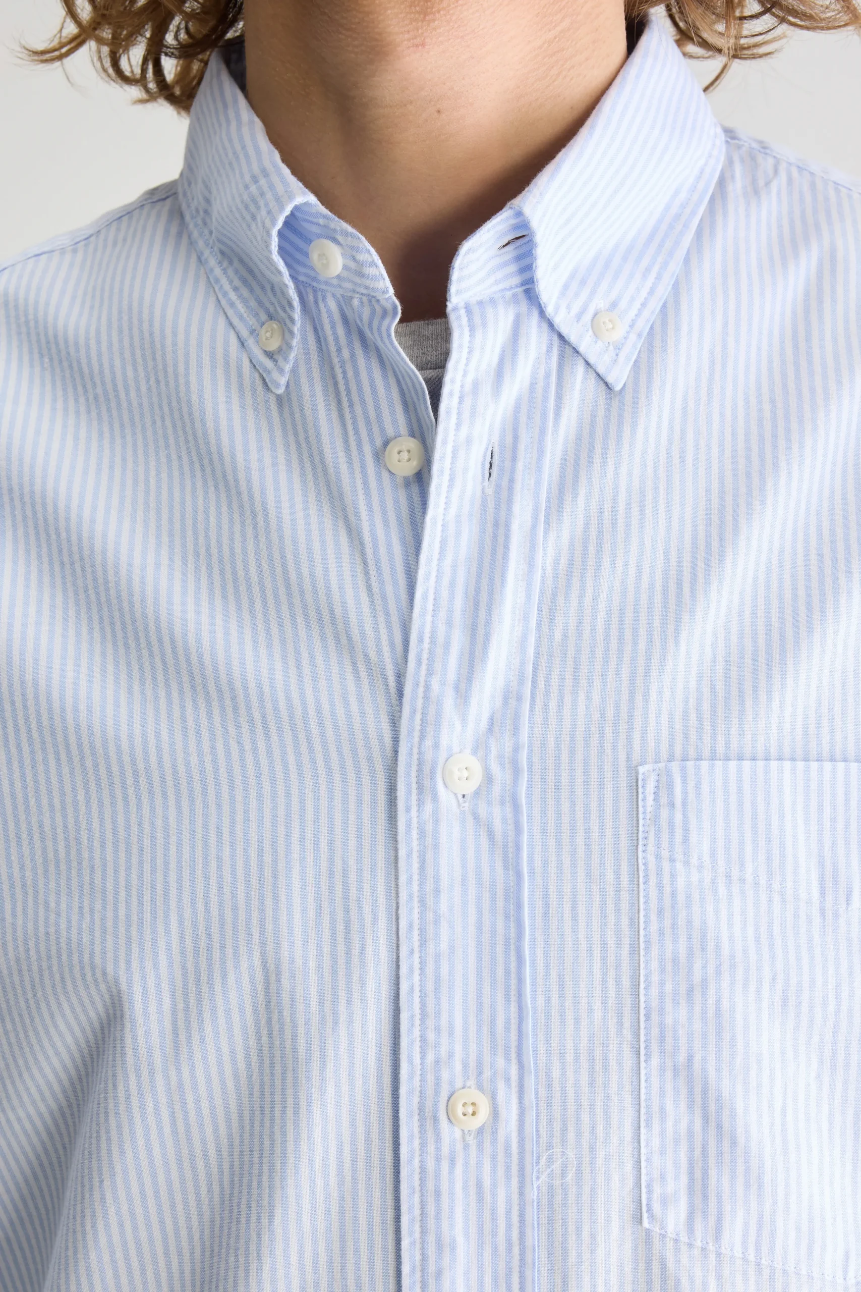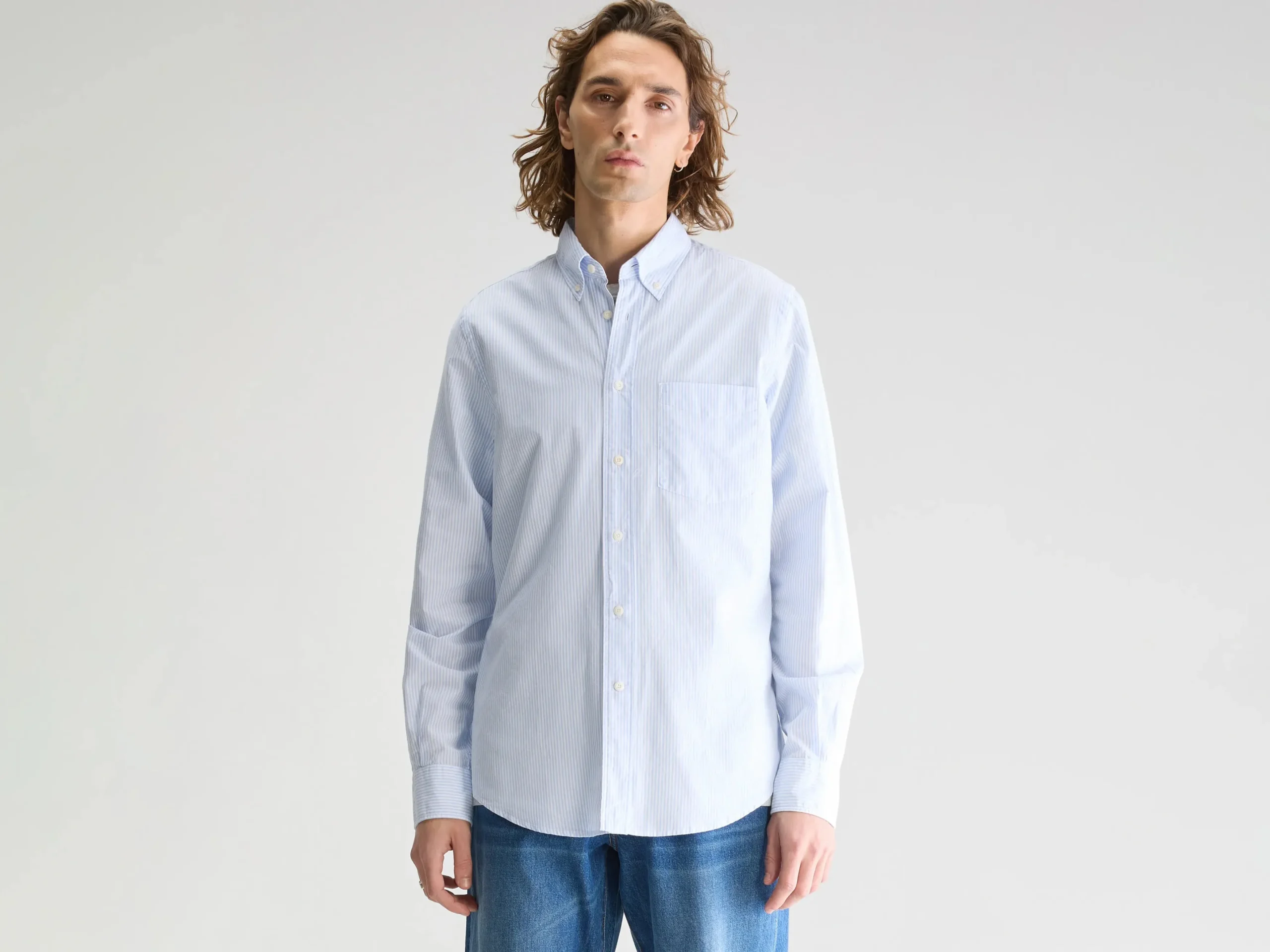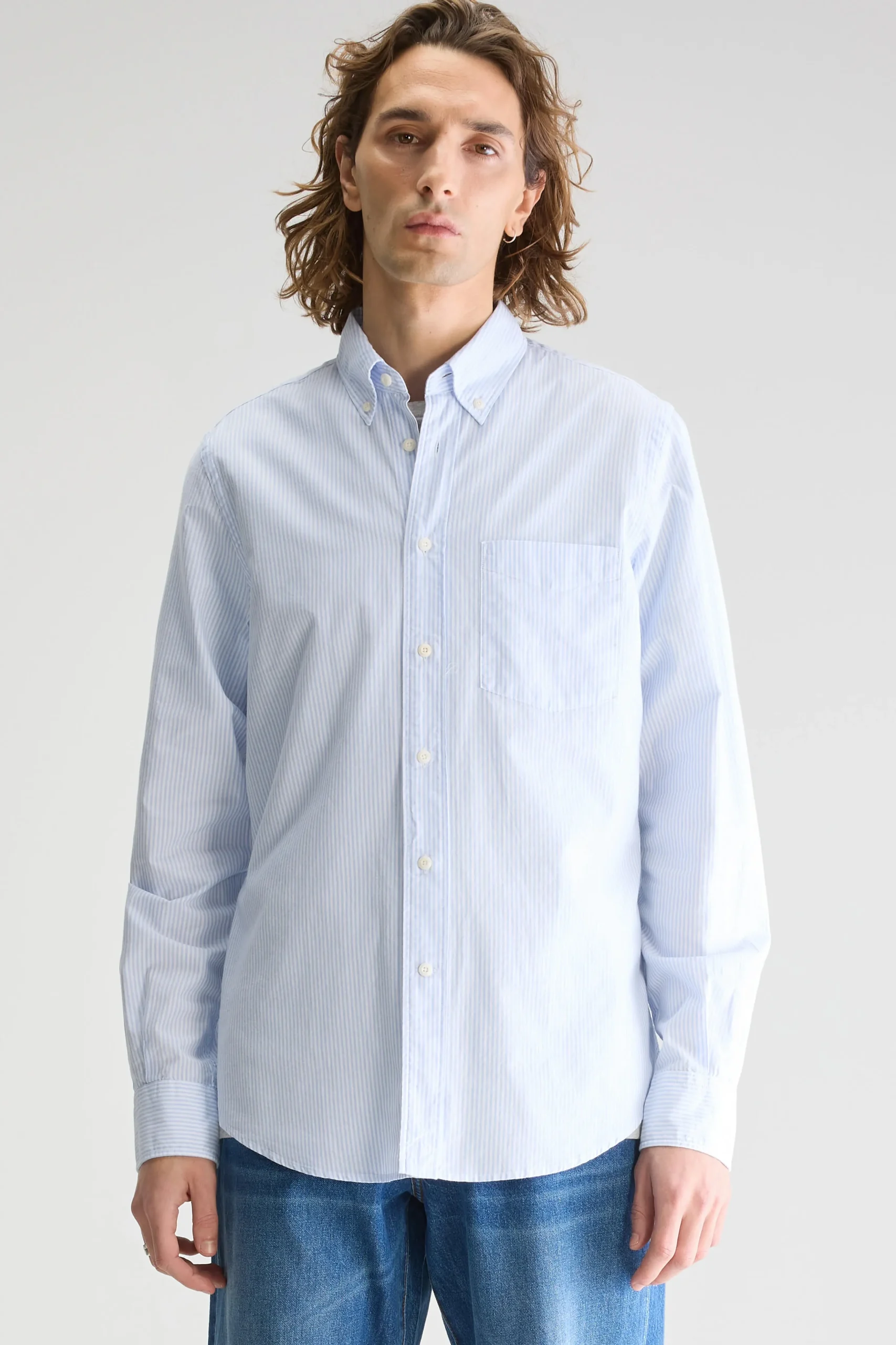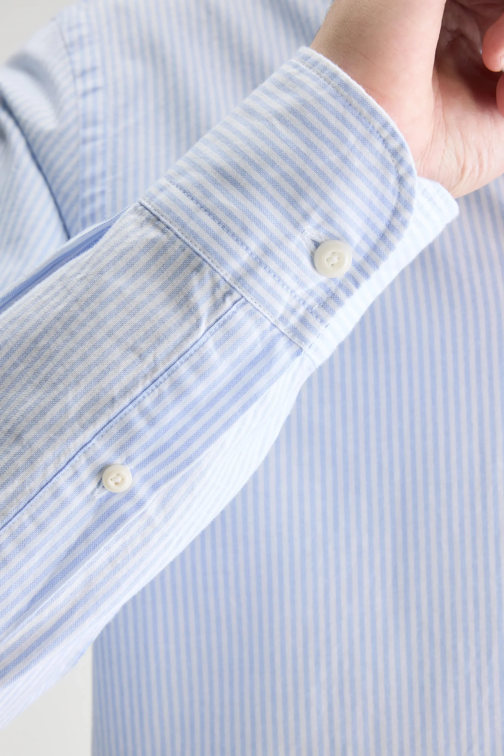 Hemd met slim fit pasvorm met klassieke kraag en lange mouwen, gemaakt van wit oxford katoen met blauwe strepen.Slim fit pasvormHemdkraagLange mouwen met manchetknopenKnoopsluiting aan de voorkantOxford katoenGebogen zoom