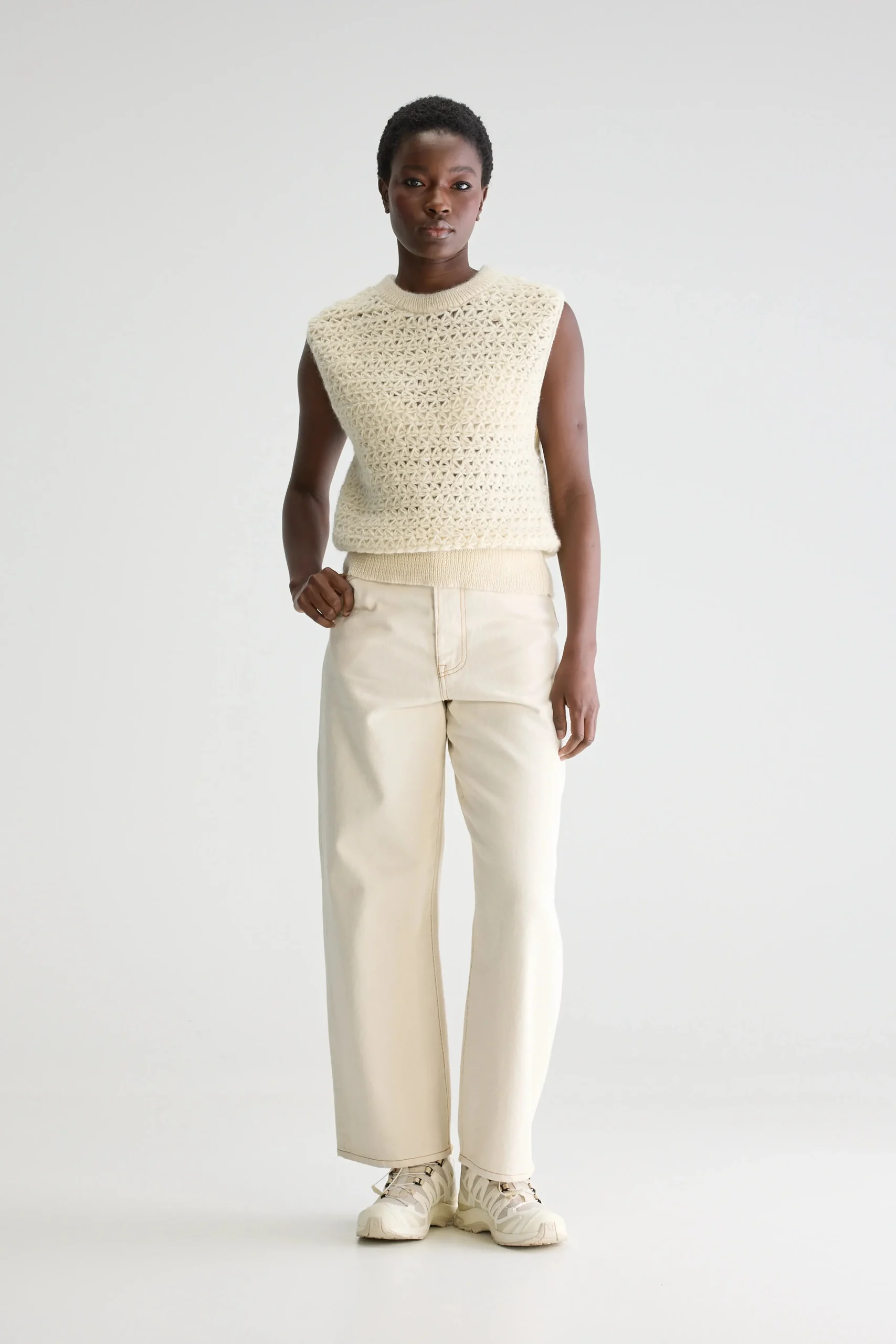 Gebreide tanktop met een oversized pasvorm en een sterrenpatroon van zuiver wolgaren in ecru.Oversized pasvorm : Kies