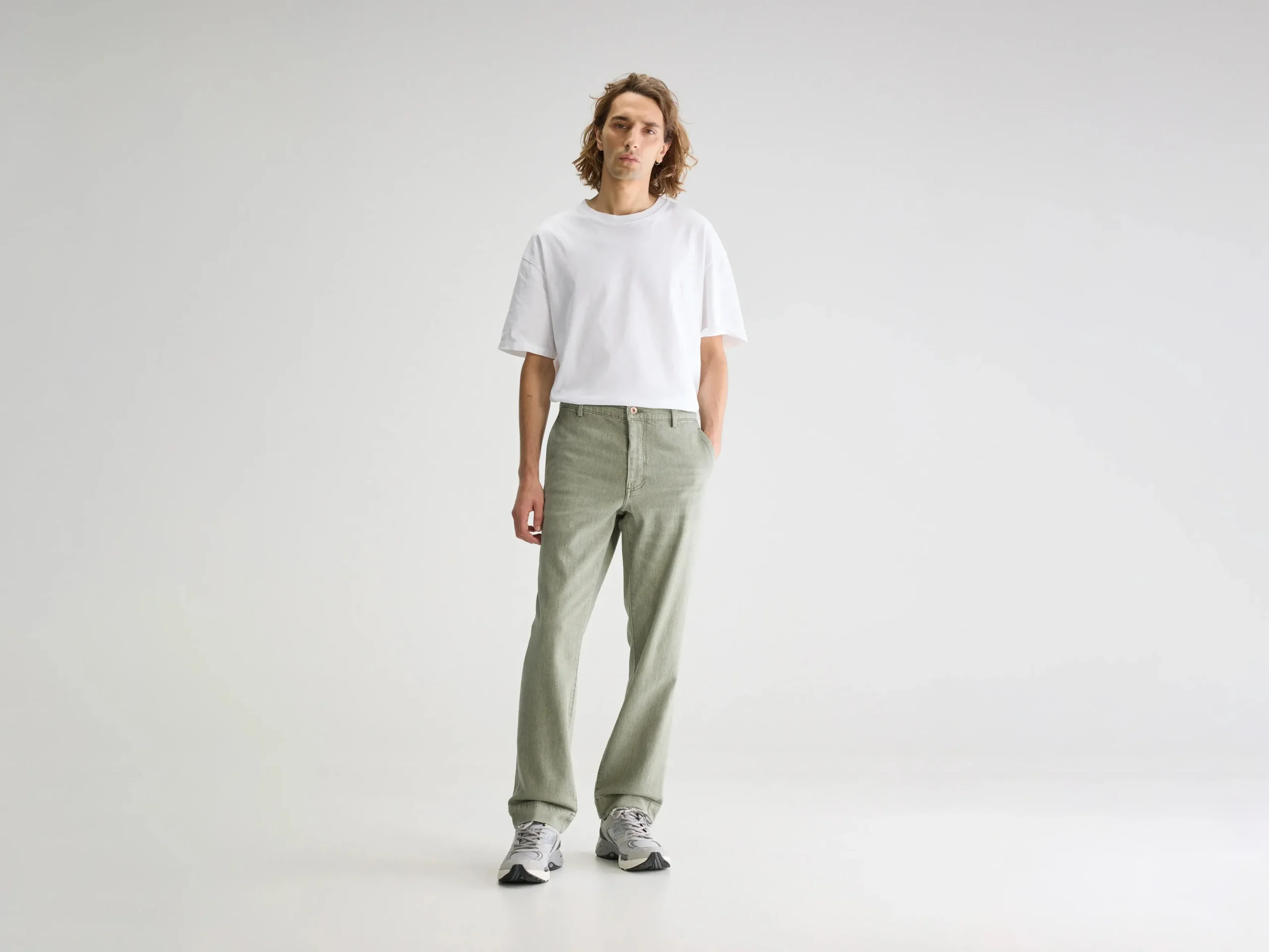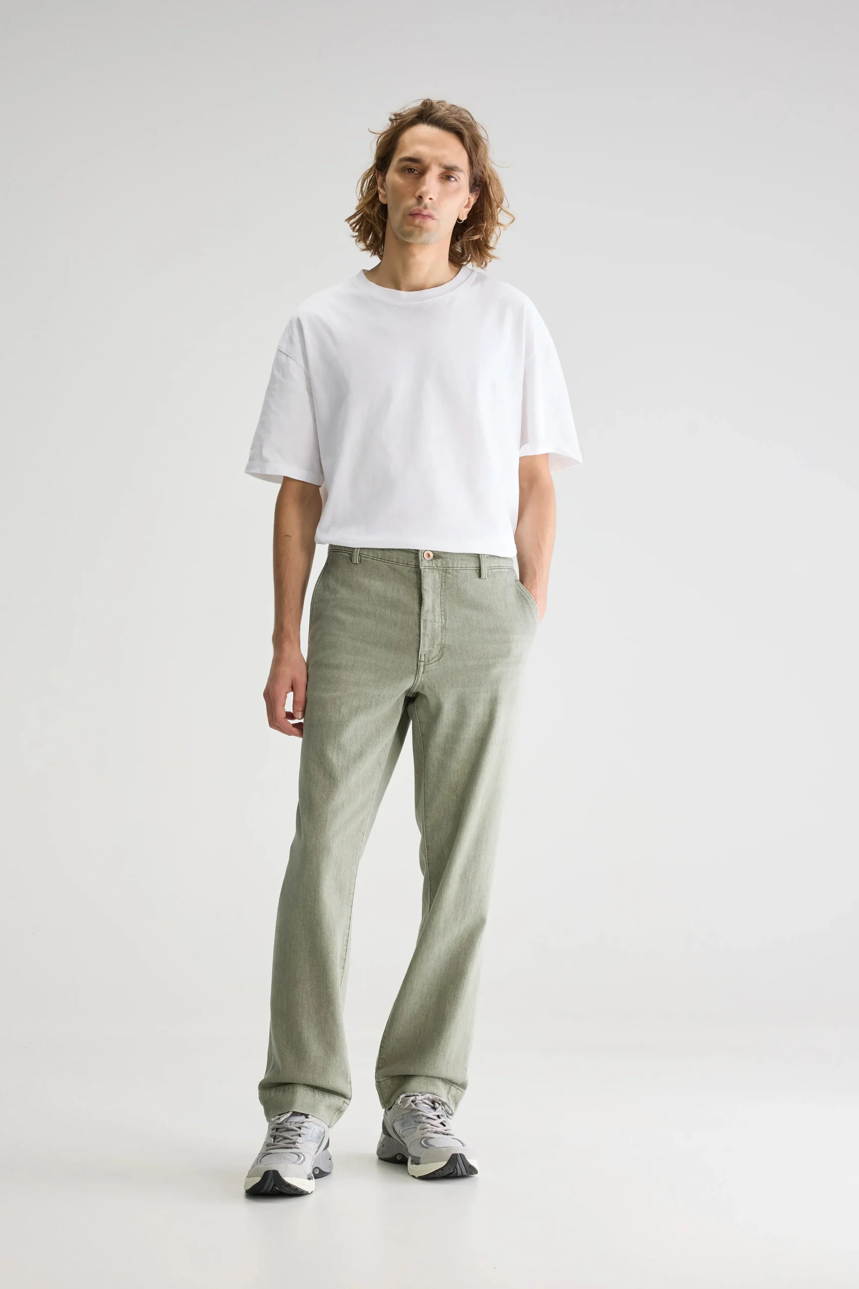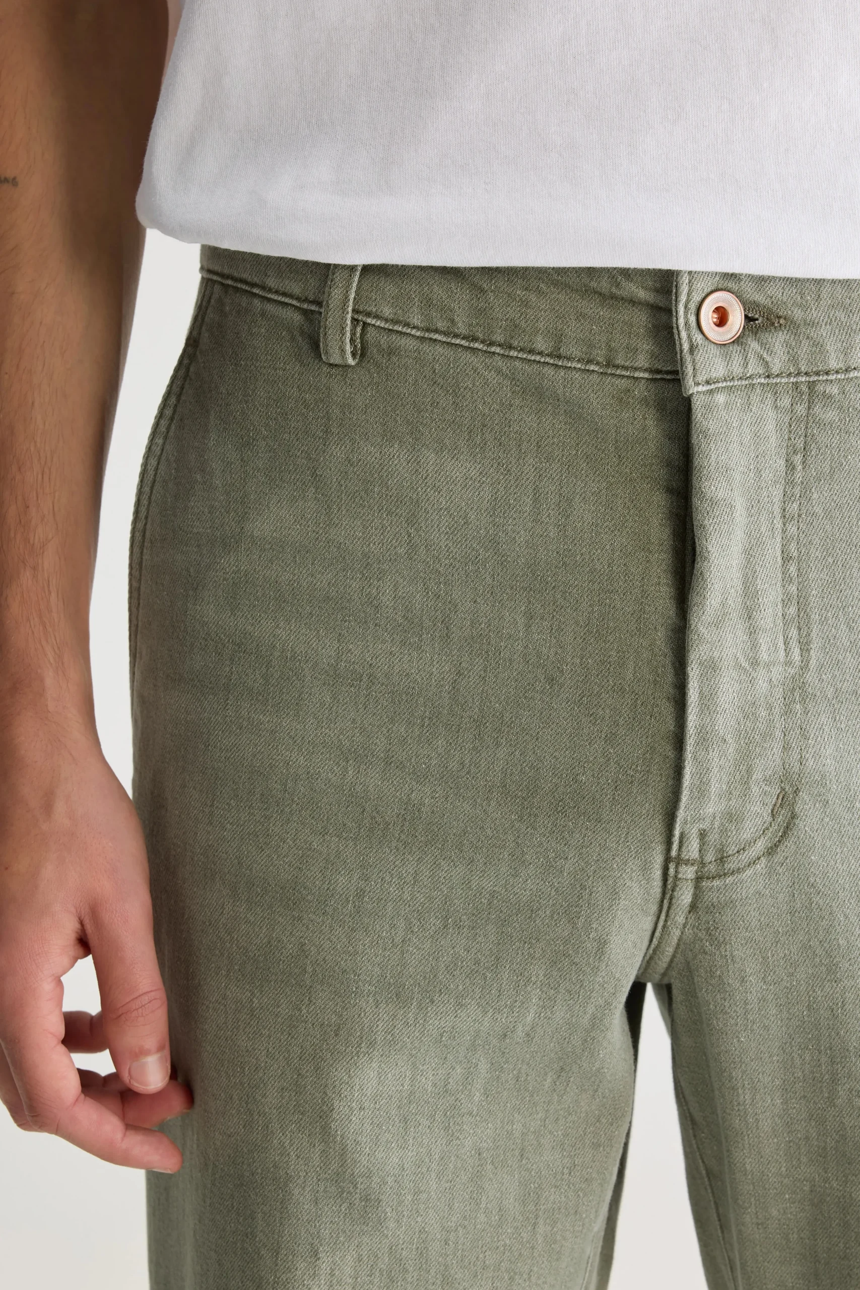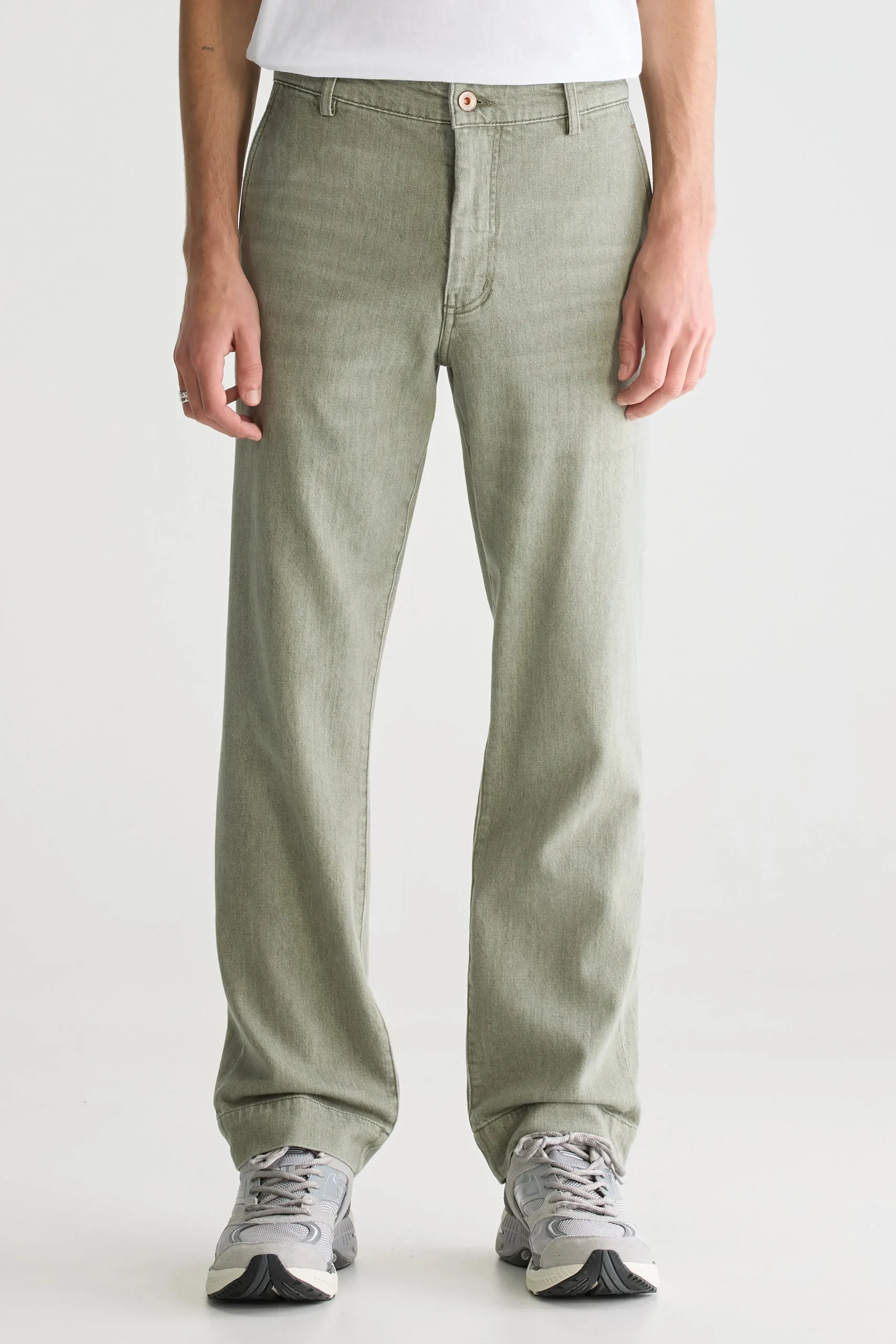 Regular halfhoge broek met rechte pijpen van katoendenim in olijfgroen.Regular pasvormHalfhoge taille, rechte pijpen Gekleurde denimstof, lichte stretchBinnenbeenlengte: 31″ (gebaseerd op maat 32)De binnenbeenlengte past zich lichtjes aan afhankelijk van de gekozen maat, zodat de pasvorm proportioneel blijft.Zoom: 21cm