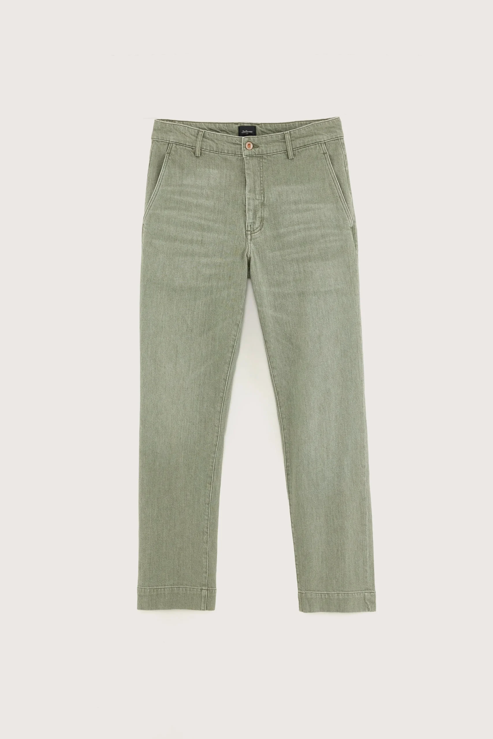 Regular halfhoge broek met rechte pijpen van katoendenim in olijfgroen.Regular pasvormHalfhoge taille, rechte pijpen Gek…