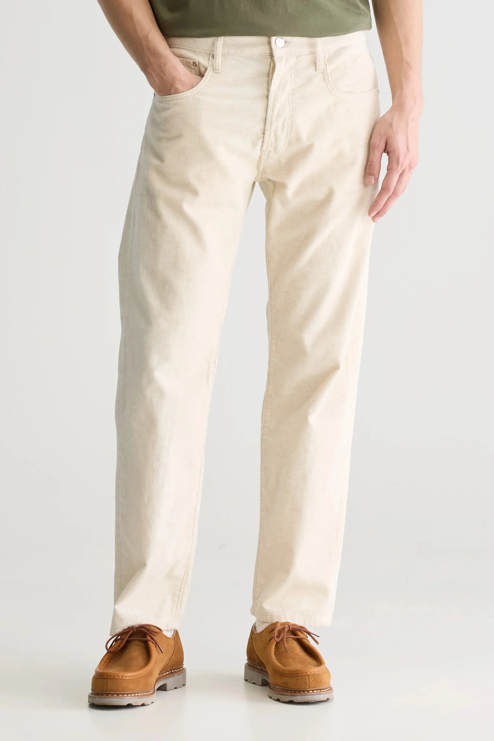 Losse 5-pocketbroek met lage taille en rechte pijpen, gemaakt van katoen en linnen thin wale corduroy in beige.Losse pas…
