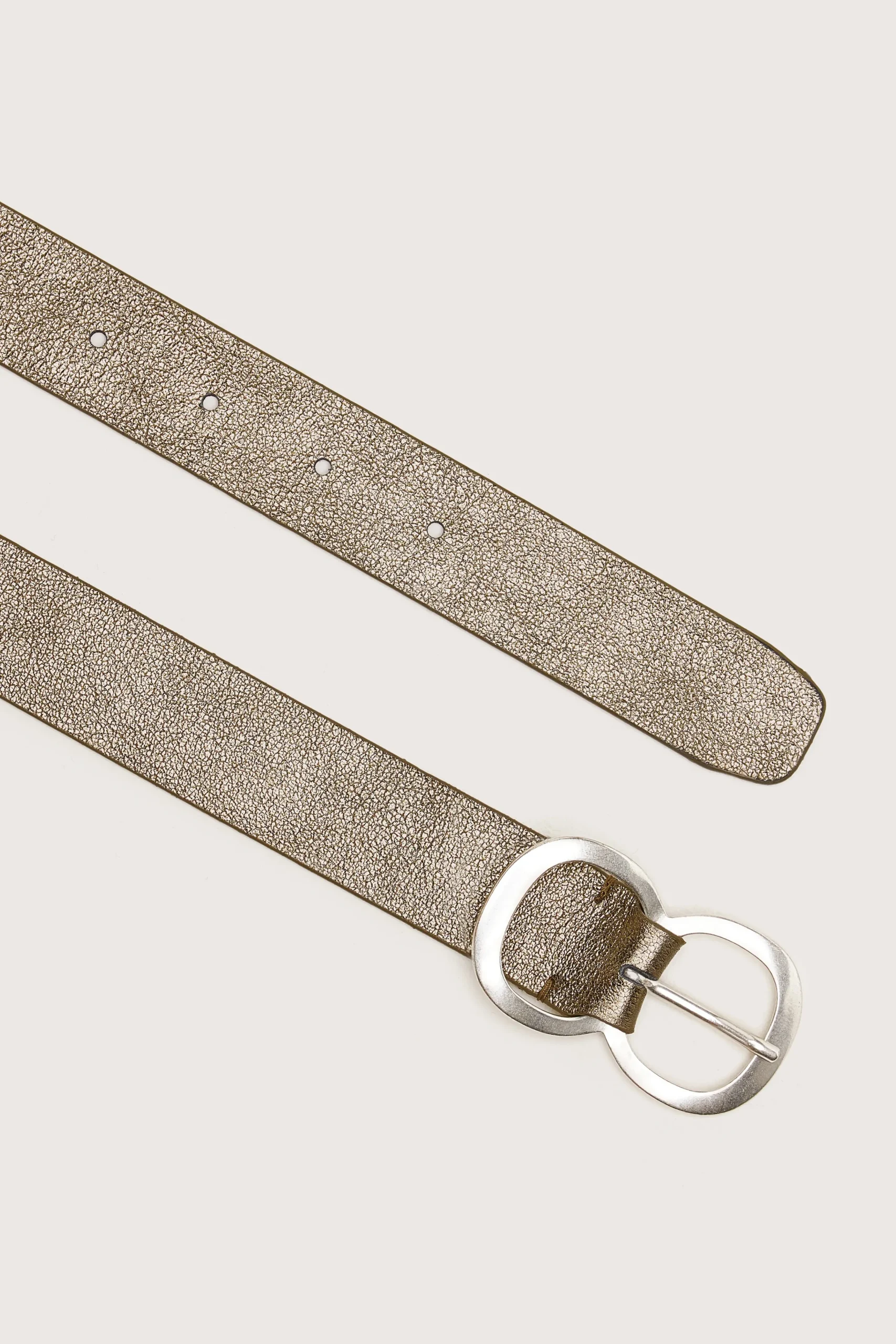 Klassieke riem van donkerbruin leer met een glanzende coating en een zilveren 8-vormige gesp.Klassieke vorm Lederen riemZilveren gesp Glanzende coatingBreedte: 3 cm