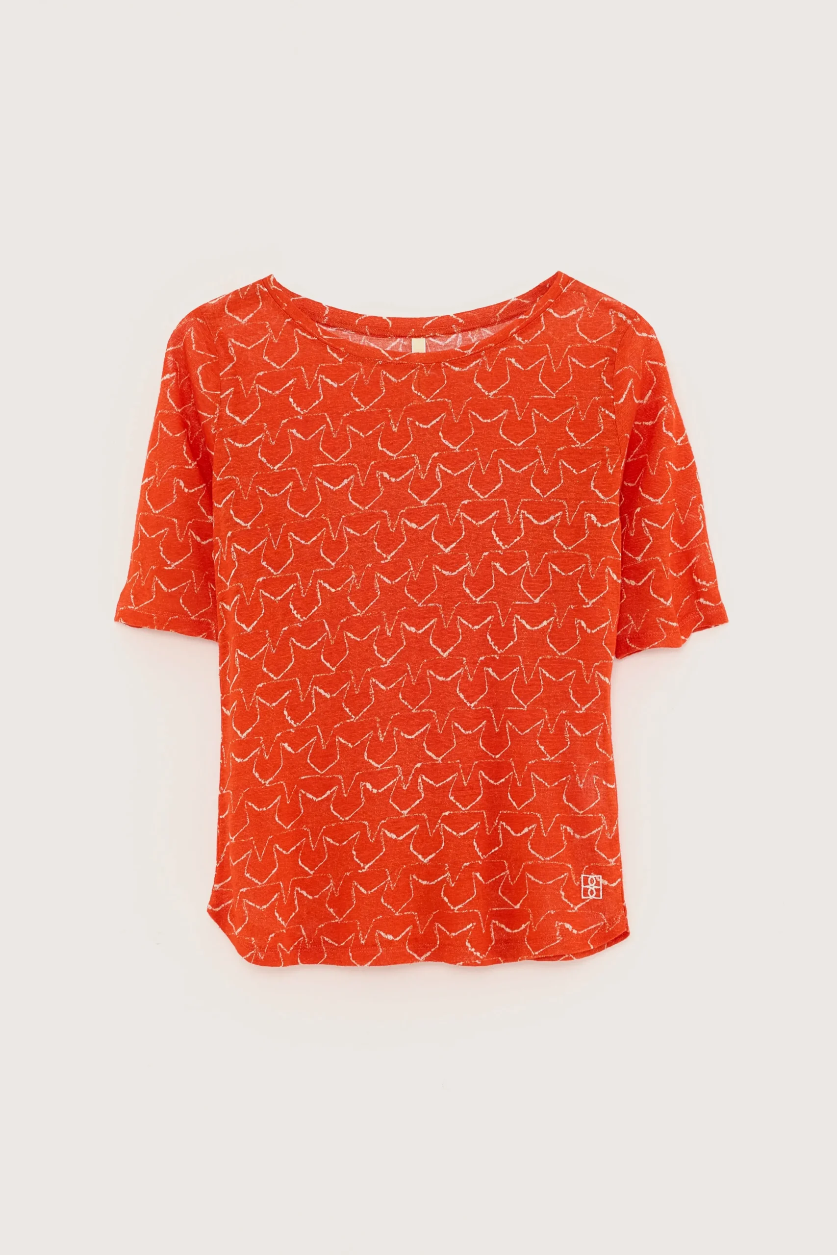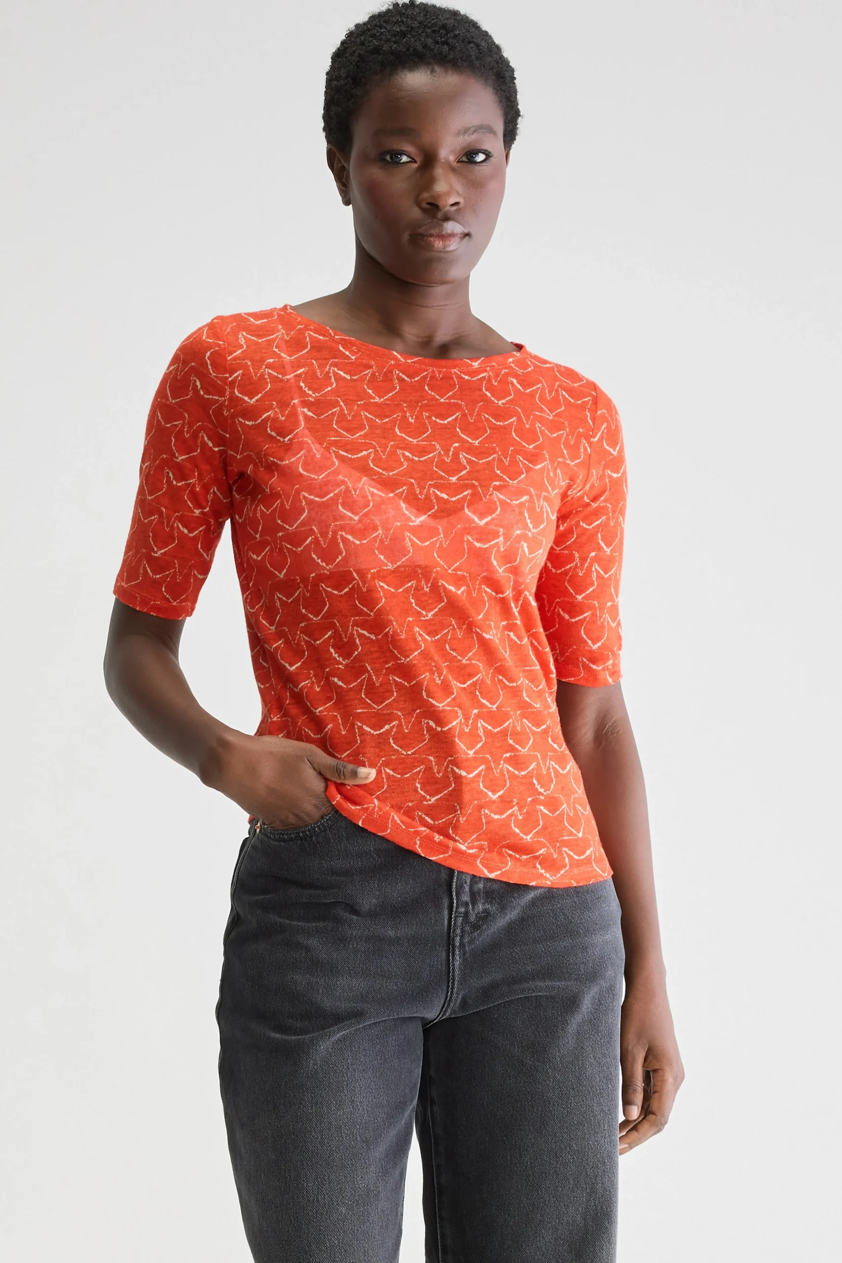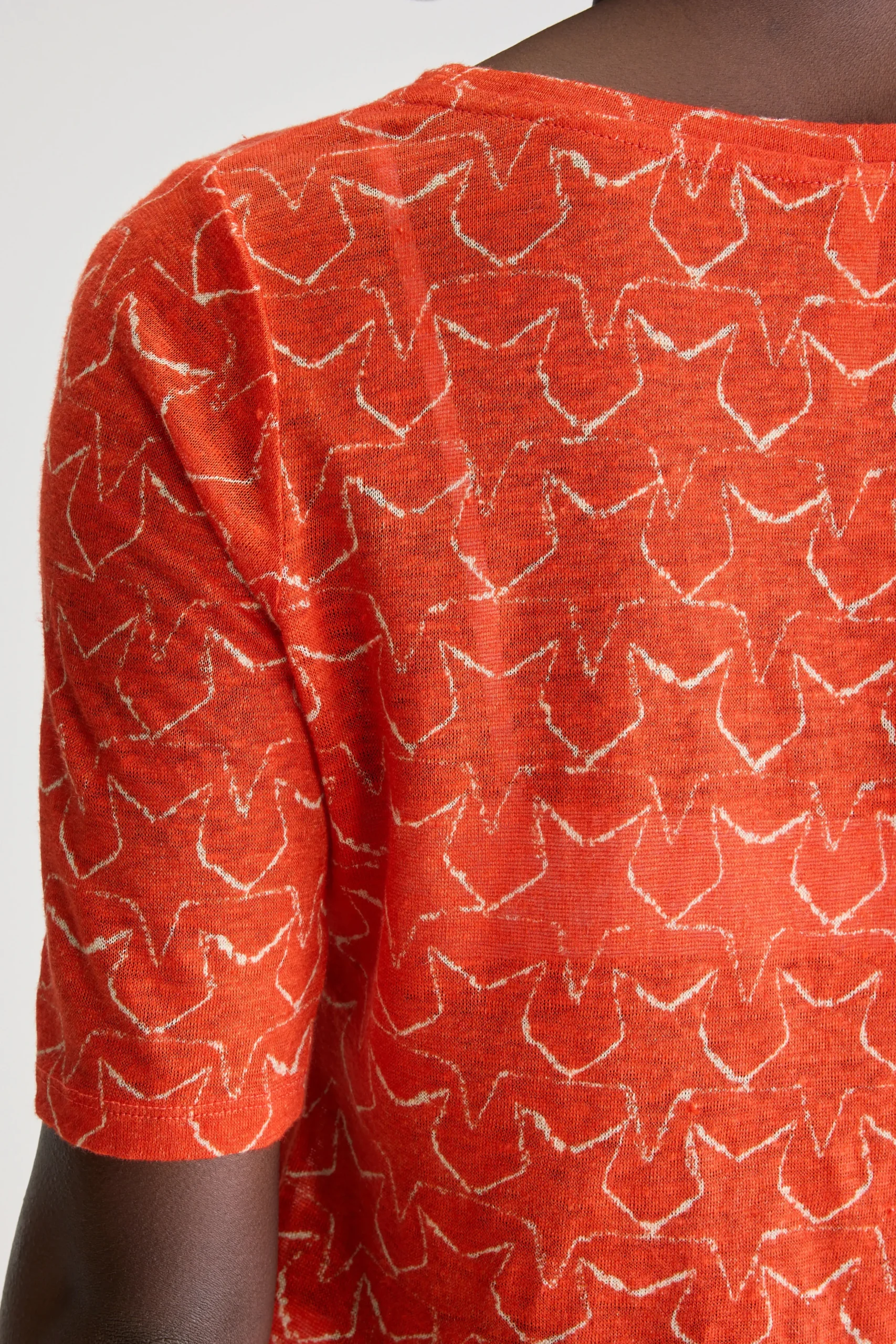 Slim fit t-shirt met korte mouwen en ronde hals gemaakt van rood linnen jersey met all-over sterrenborduursels.Slim fit Middenmouwen Ronde halsAll-over sterrenprintMiddelzware jersey stof