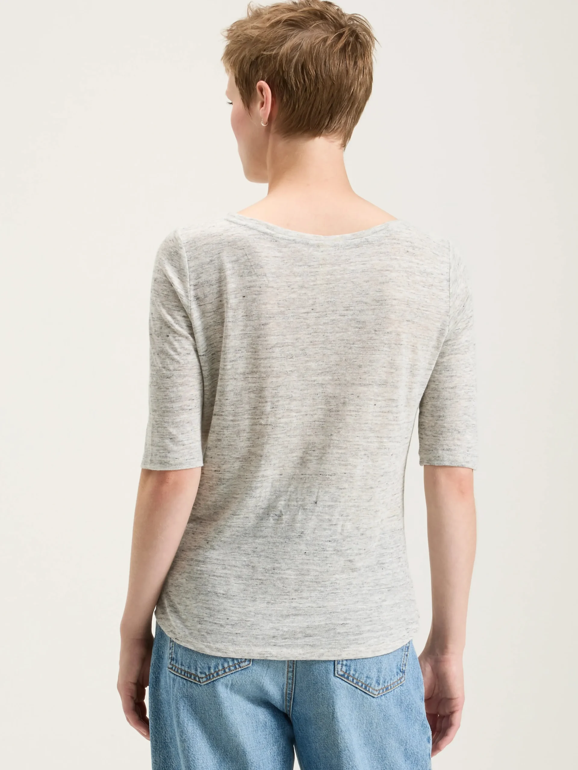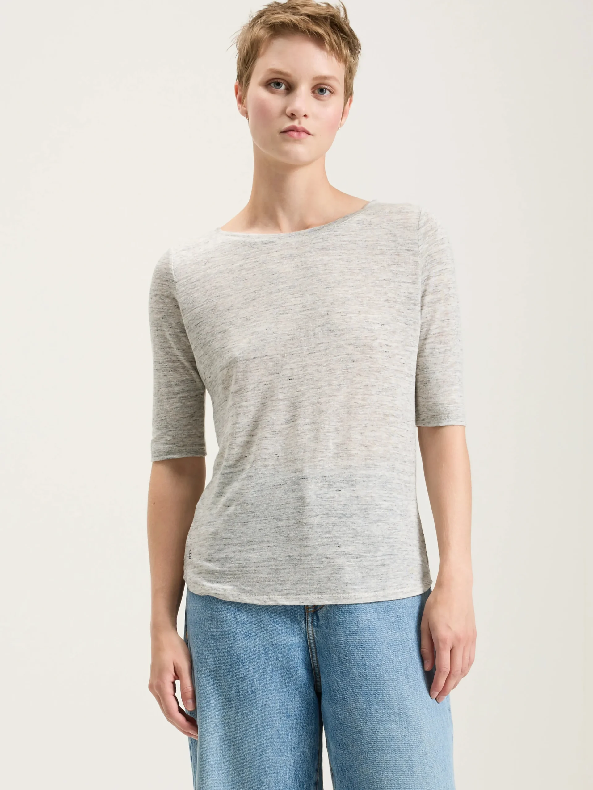 Slim fit t-shirt met ronde hals en korte mouwen in heidegrijze katoenjersey.rrSlim fitrKorte mouwenrRonde halsrLich…