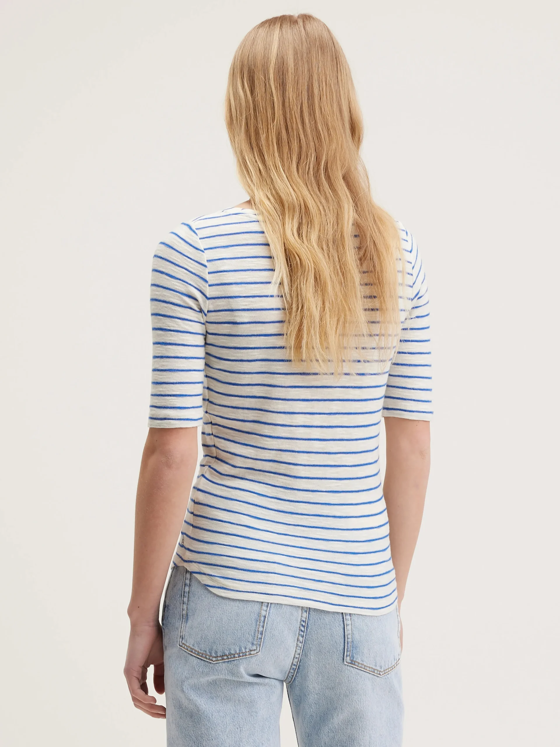 Slim fit t-shirt met ronde hals en korte mouwen van gestreept katoenjersey.rrSlim fitrKorte mouwenrRonde halsrLicht…