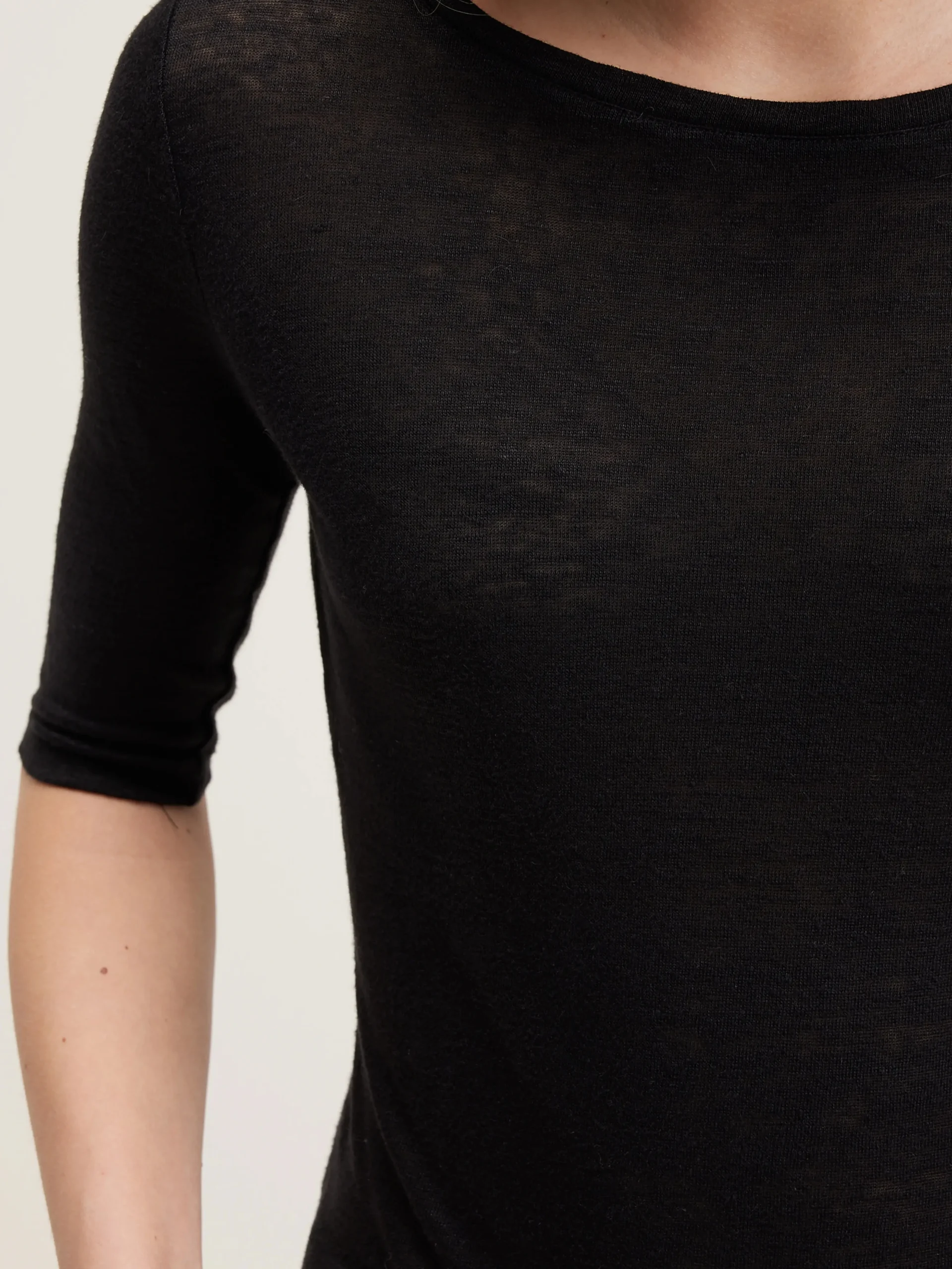 Slim fit t-shirt met ronde hals en korte mouwen in off-black katoenjersey.rrSlim fitrKorte mouwenrRonde halsrLicht …