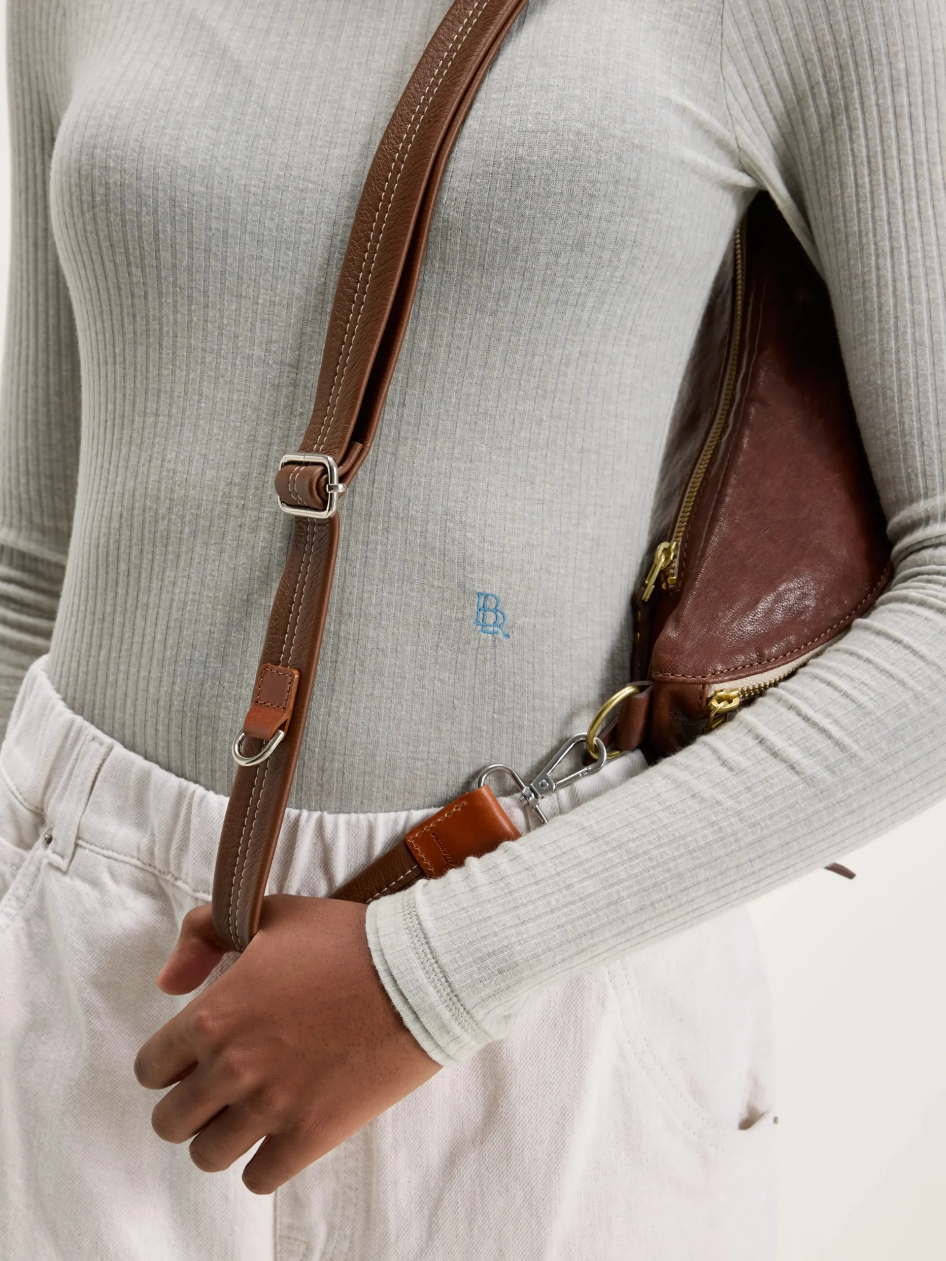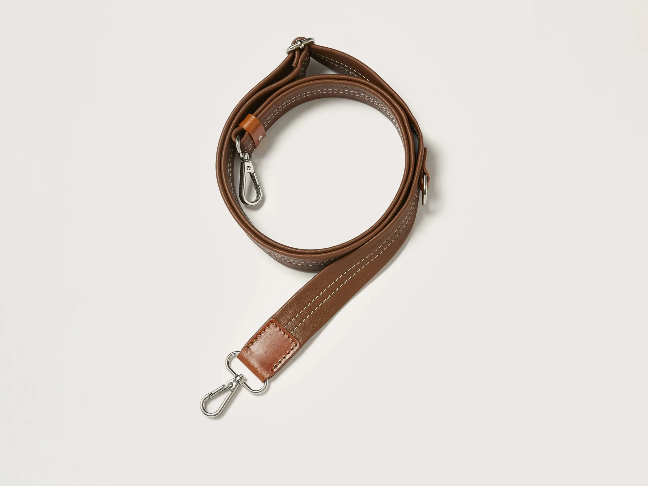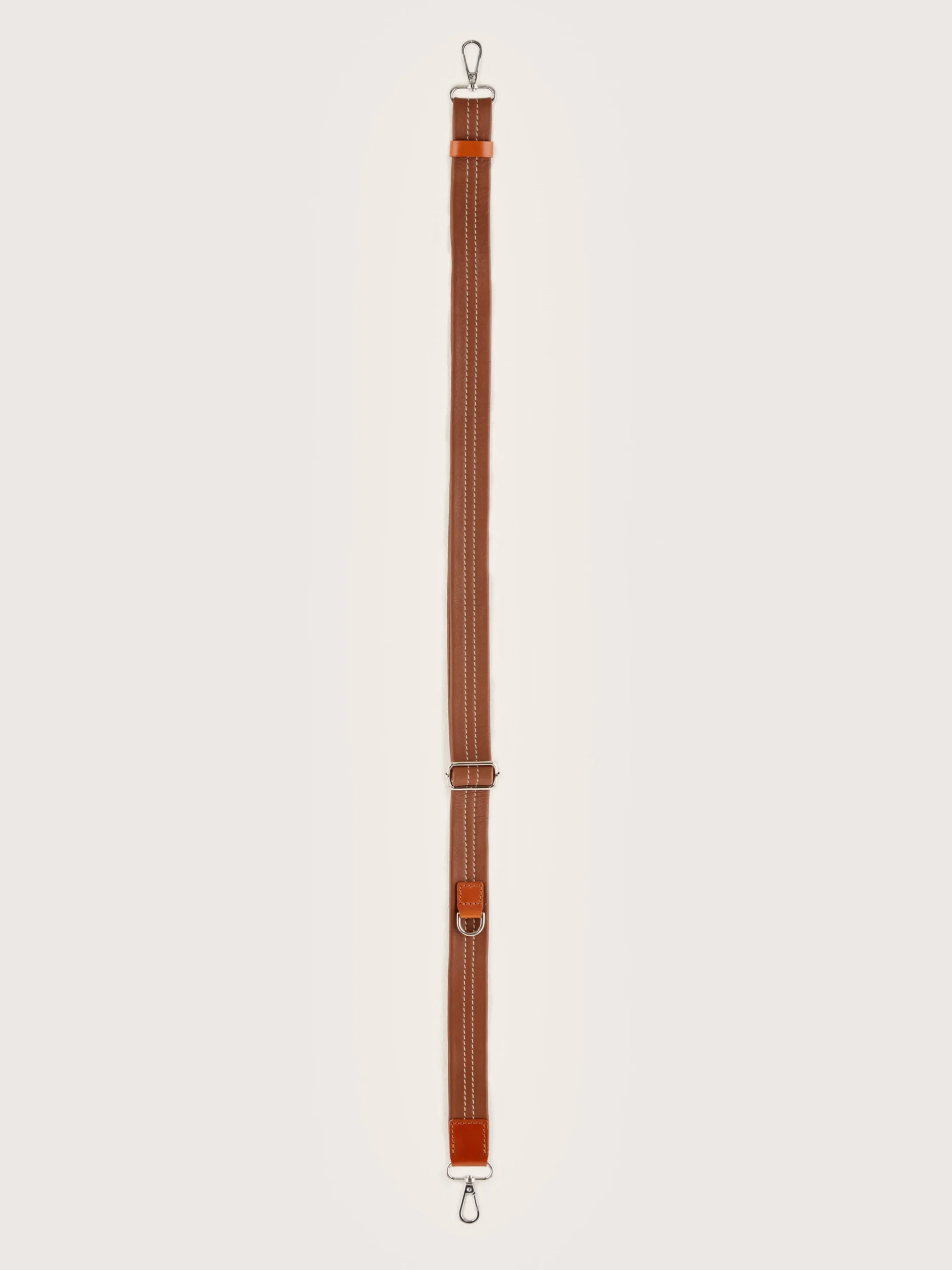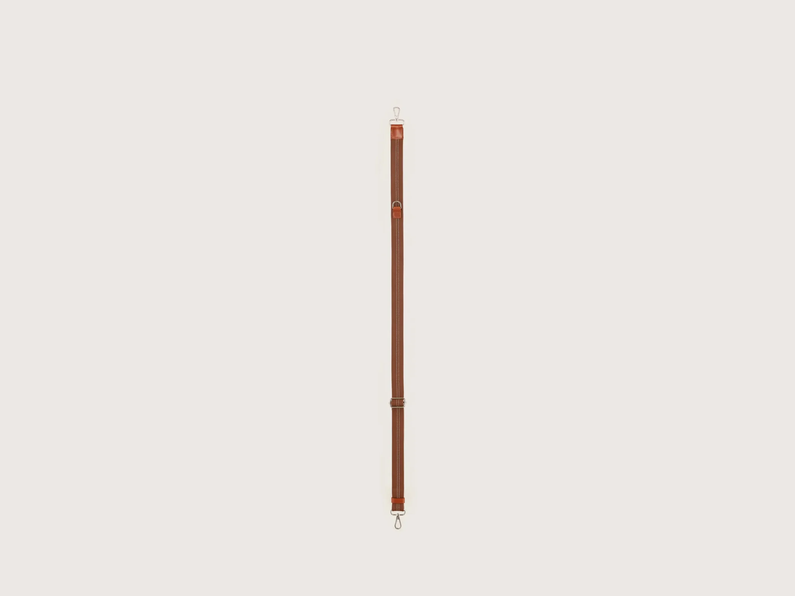 Verstelbare riem van cognac-kleurig glad leer met zilverkleurige hardware.r
