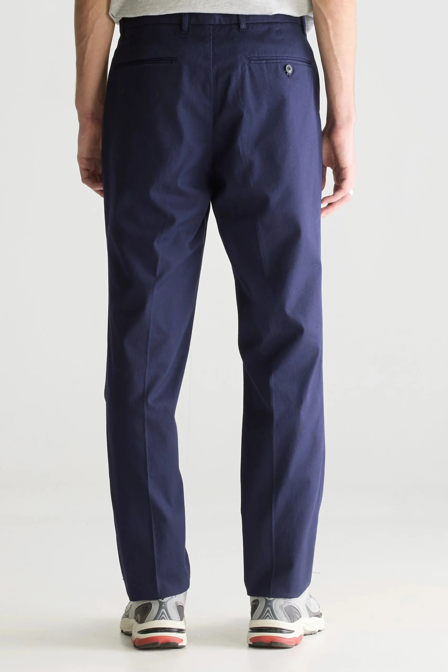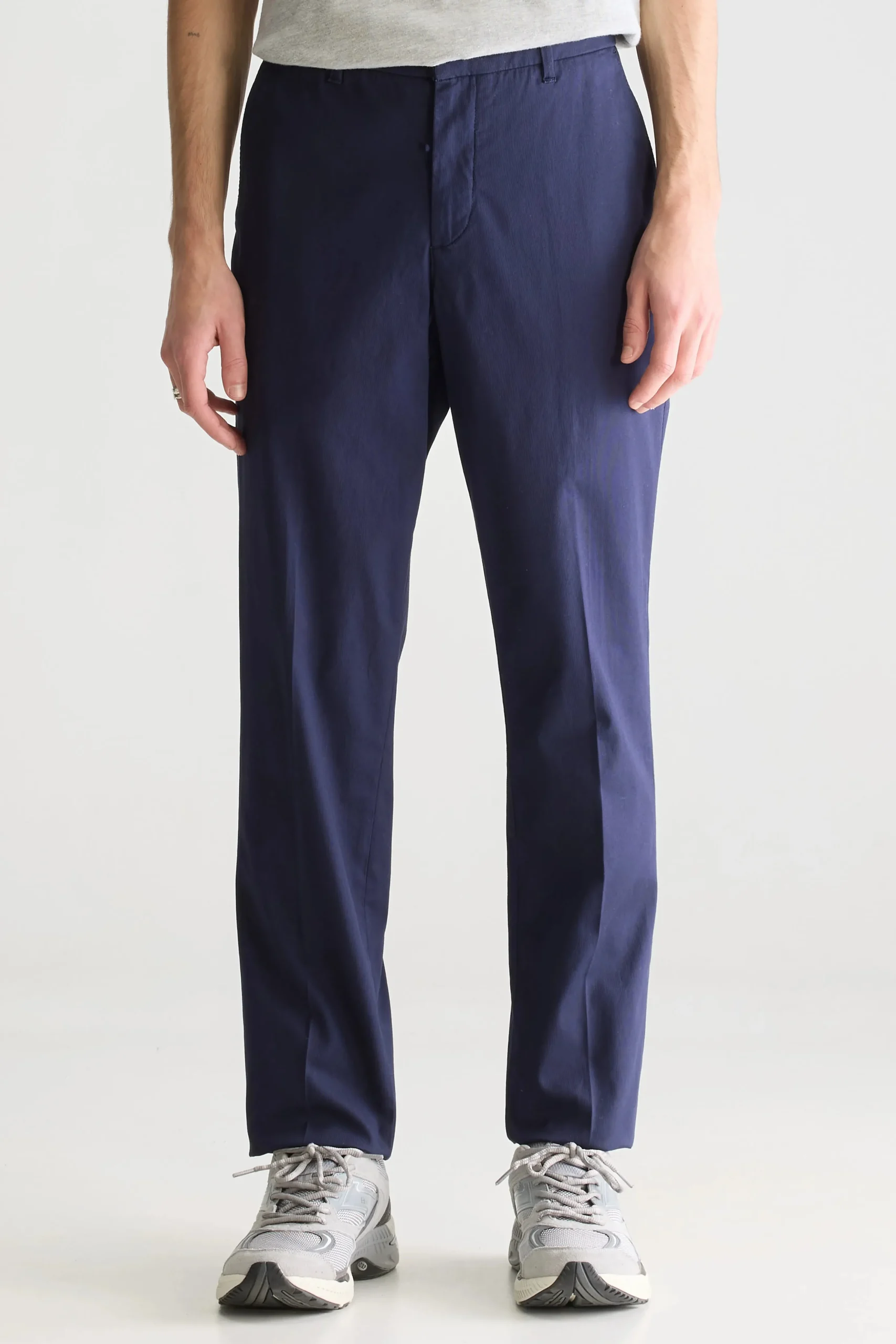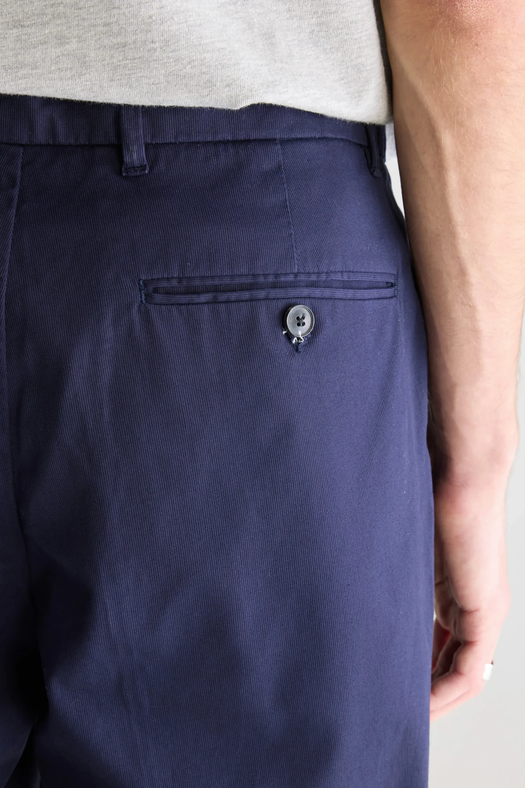 Slim fit formele broek met tapered pijpen en een clean profiel, gemaakt van geribde katoenmix in marineblauw.Slim fit pa…