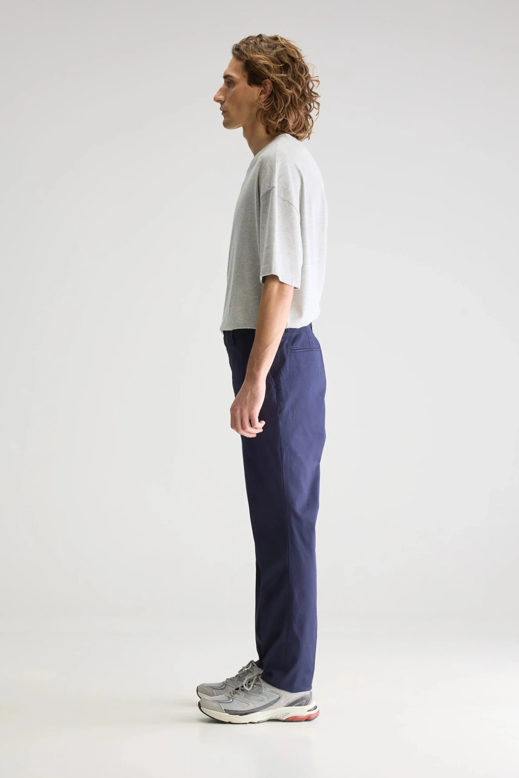 Slim fit formele broek met tapered pijpen en een clean profiel, gemaakt van geribde katoenmix in marineblauw.Slim fit pasvormLage taille, tapered pijpenClean profiel Lichte stretchBinnenbeenlengte: 34″ (gebaseerd op maat 42)De binnenbeenlengte past zich lichtjes aan afhankelijk van de gekozen maat, zodat de pasvorm proportioneel blijft.Zoom: 18 cm