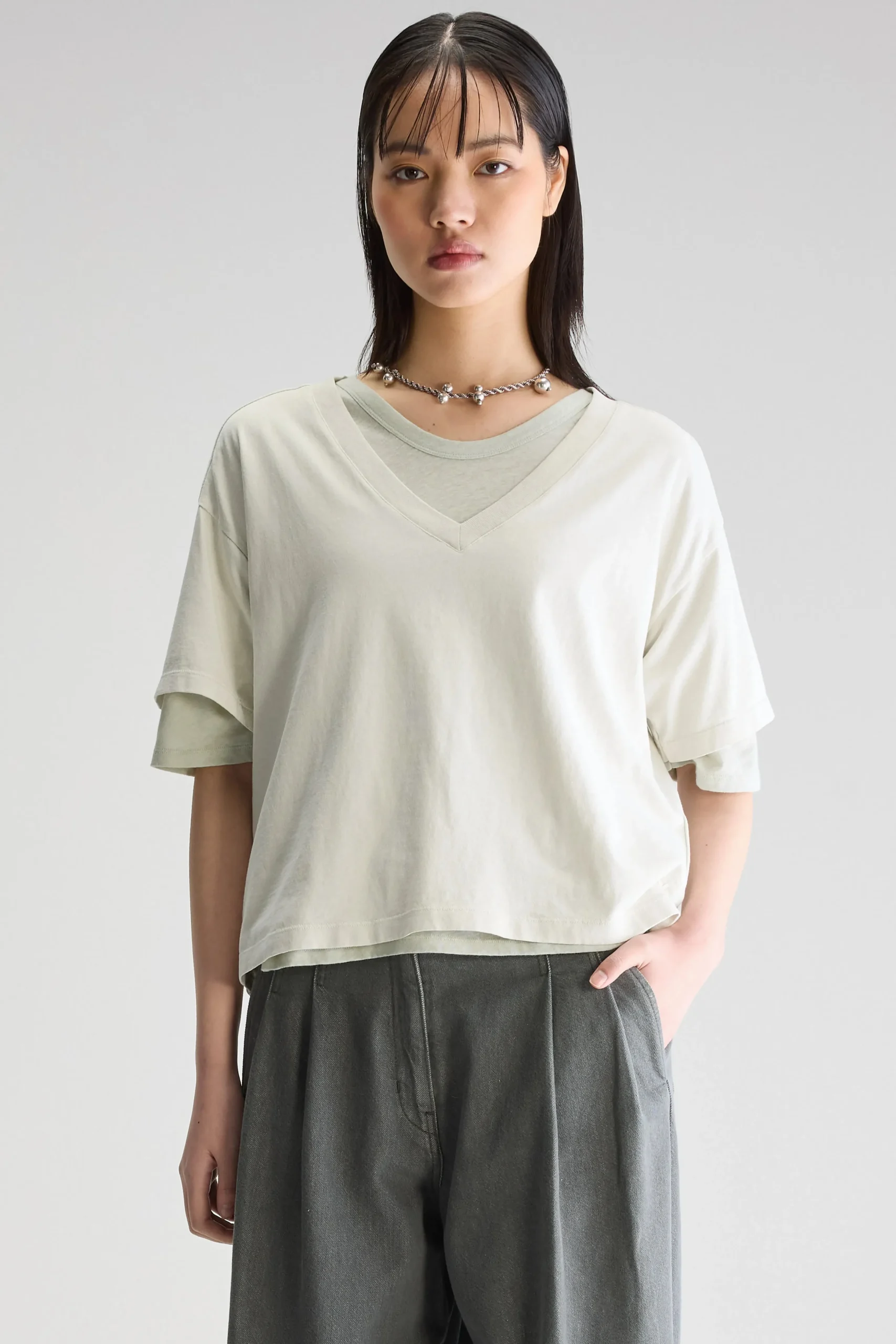 Regular fit t-shirt met korte mouwen en een V-hals, gemaakt van katoenjersey in middengrijs.Regular pasvorm Korte mouwen…