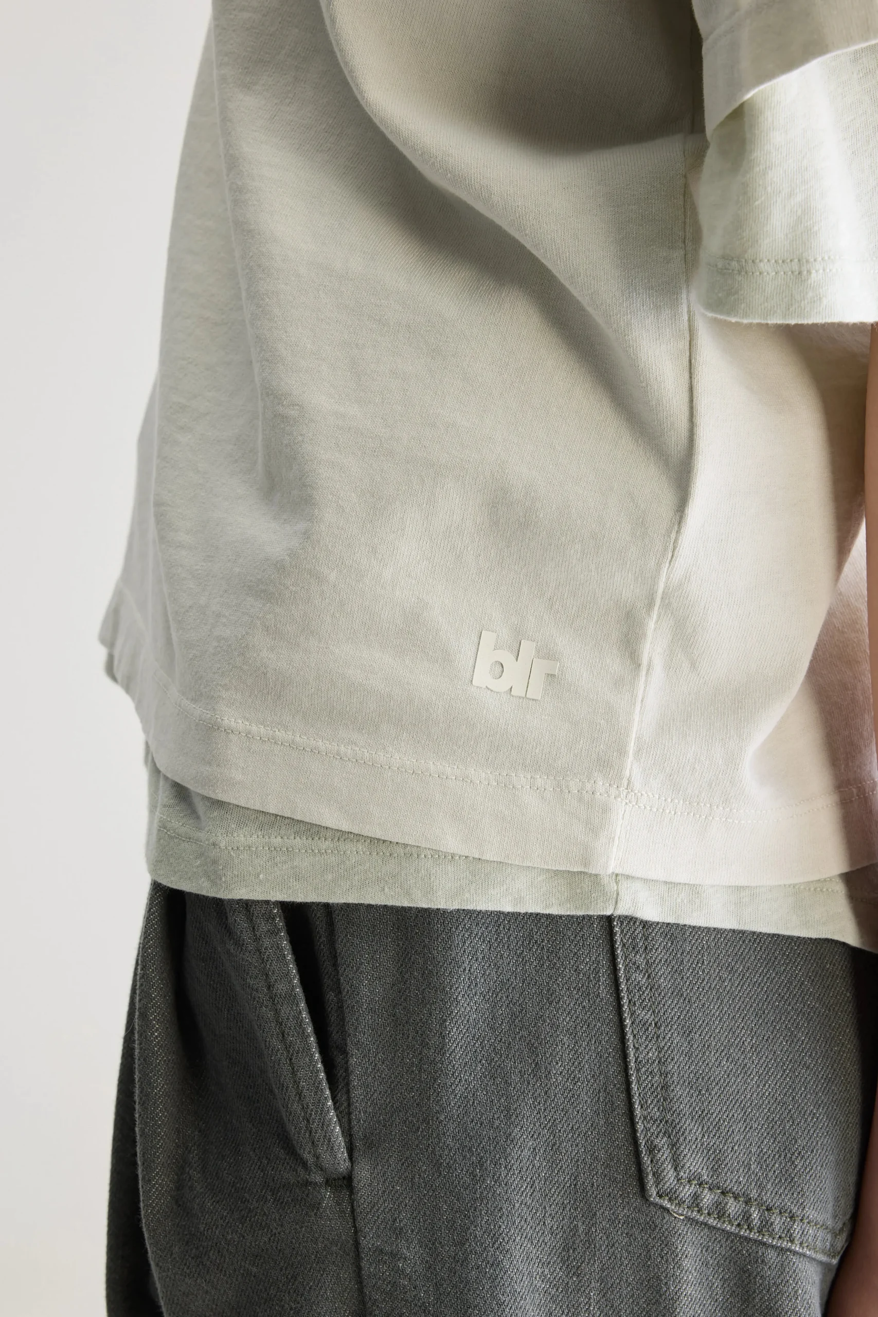 Regular fit t-shirt met korte mouwen en een V-hals, gemaakt van katoenjersey in middengrijs.Regular pasvorm Korte mouwen V-halsRustieke middelzware jersey stof”blr” opdruk linksonder