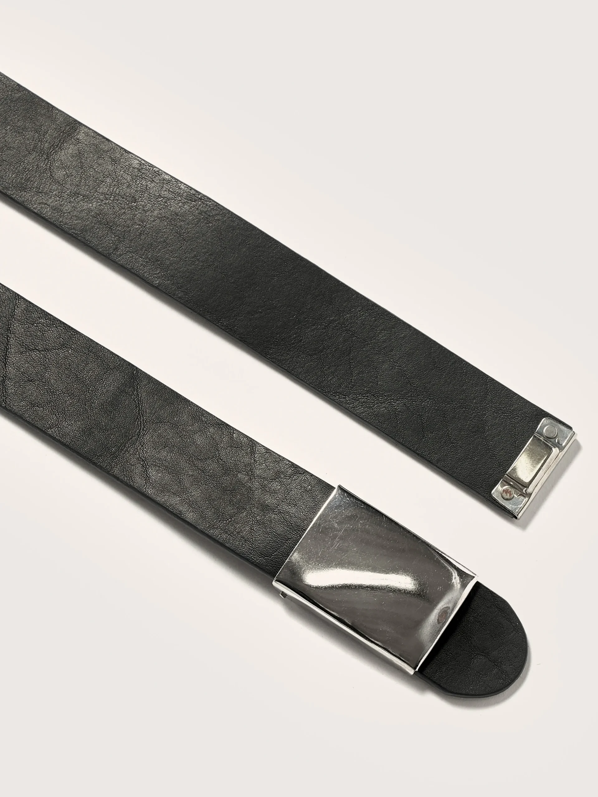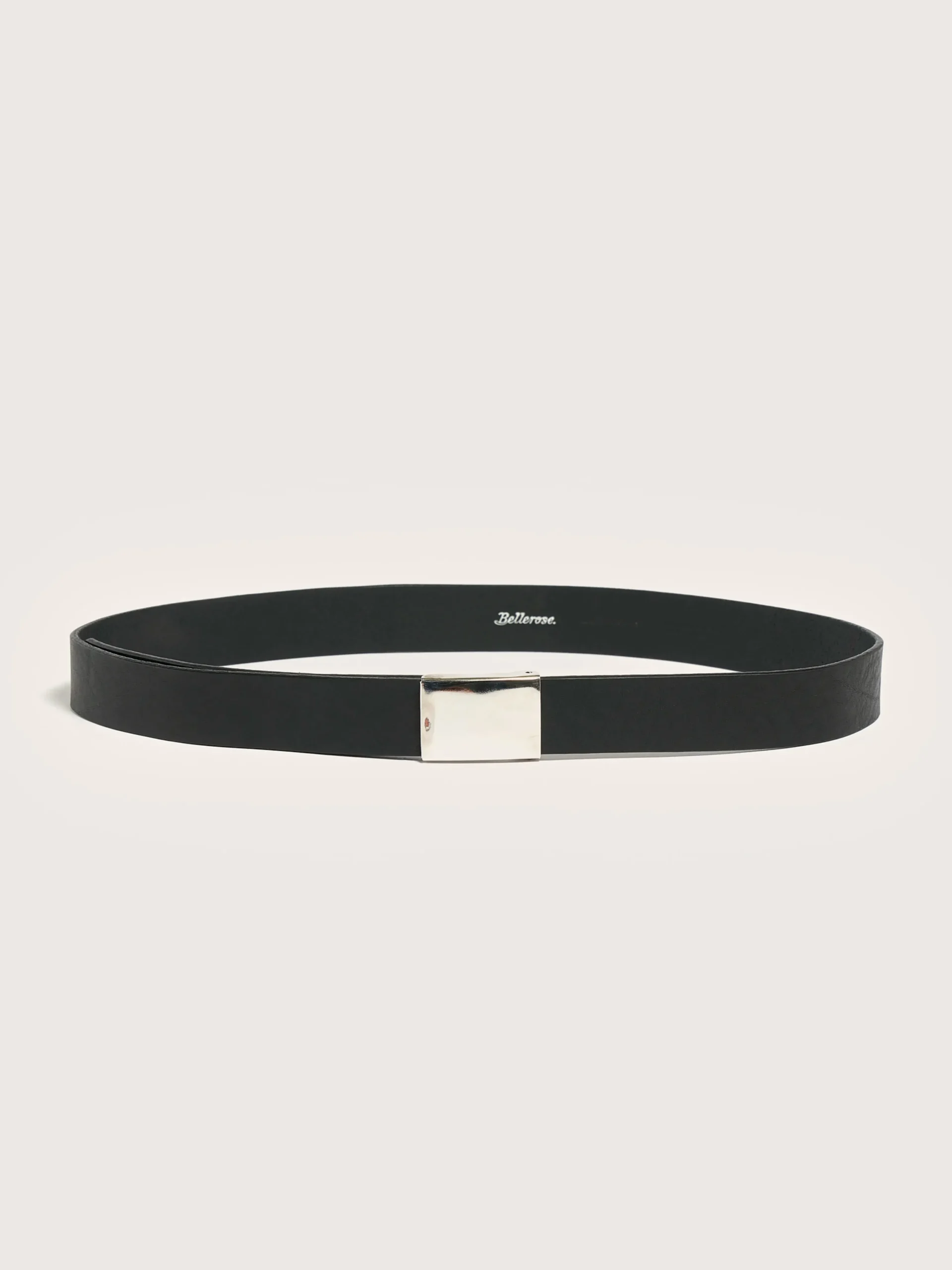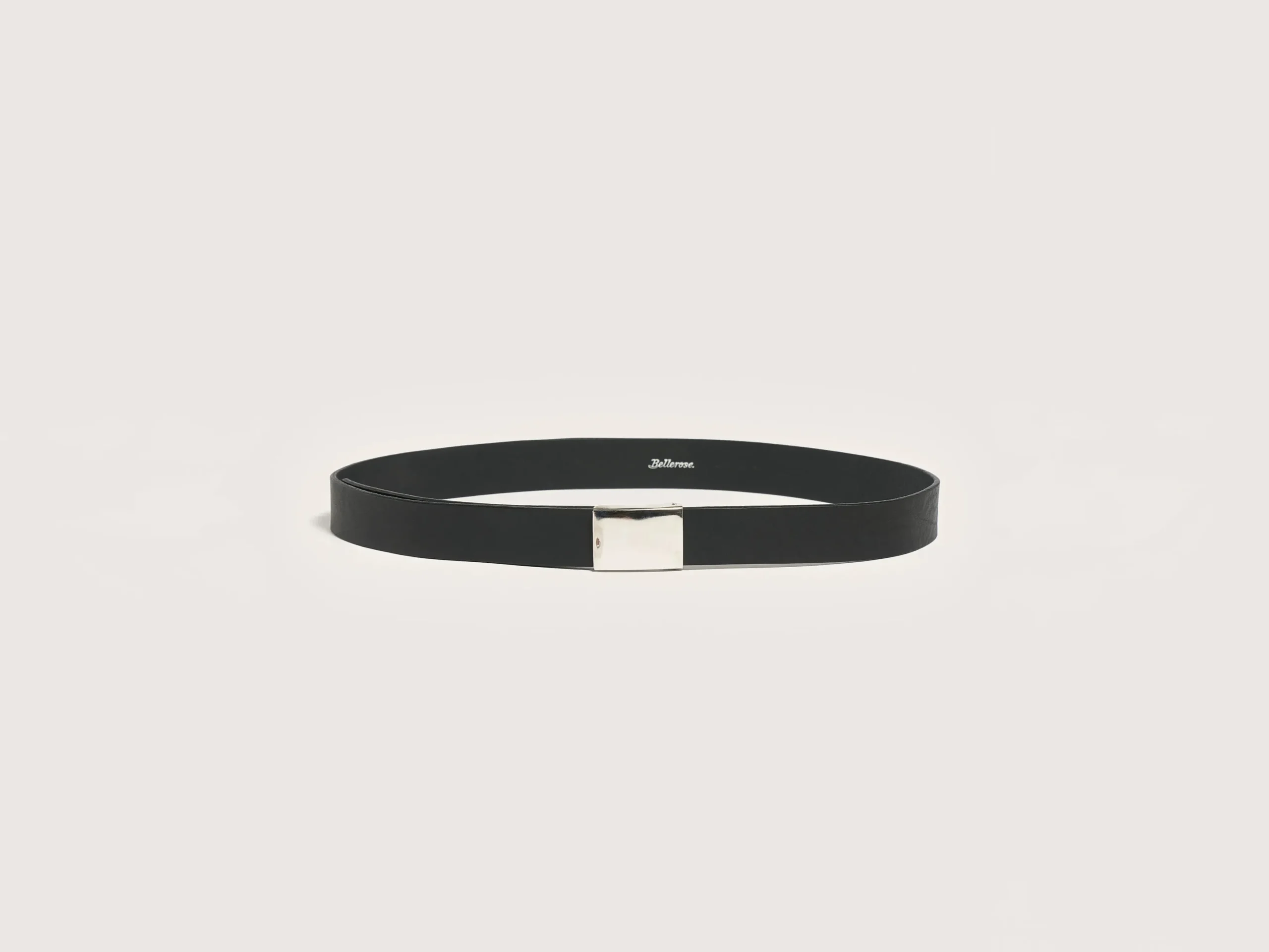 De SUNJI riem, gemaakt van volnerfleer met een gepolijste, goudkleurige rechthoekige gesp en een verstelbare sluiting zo…