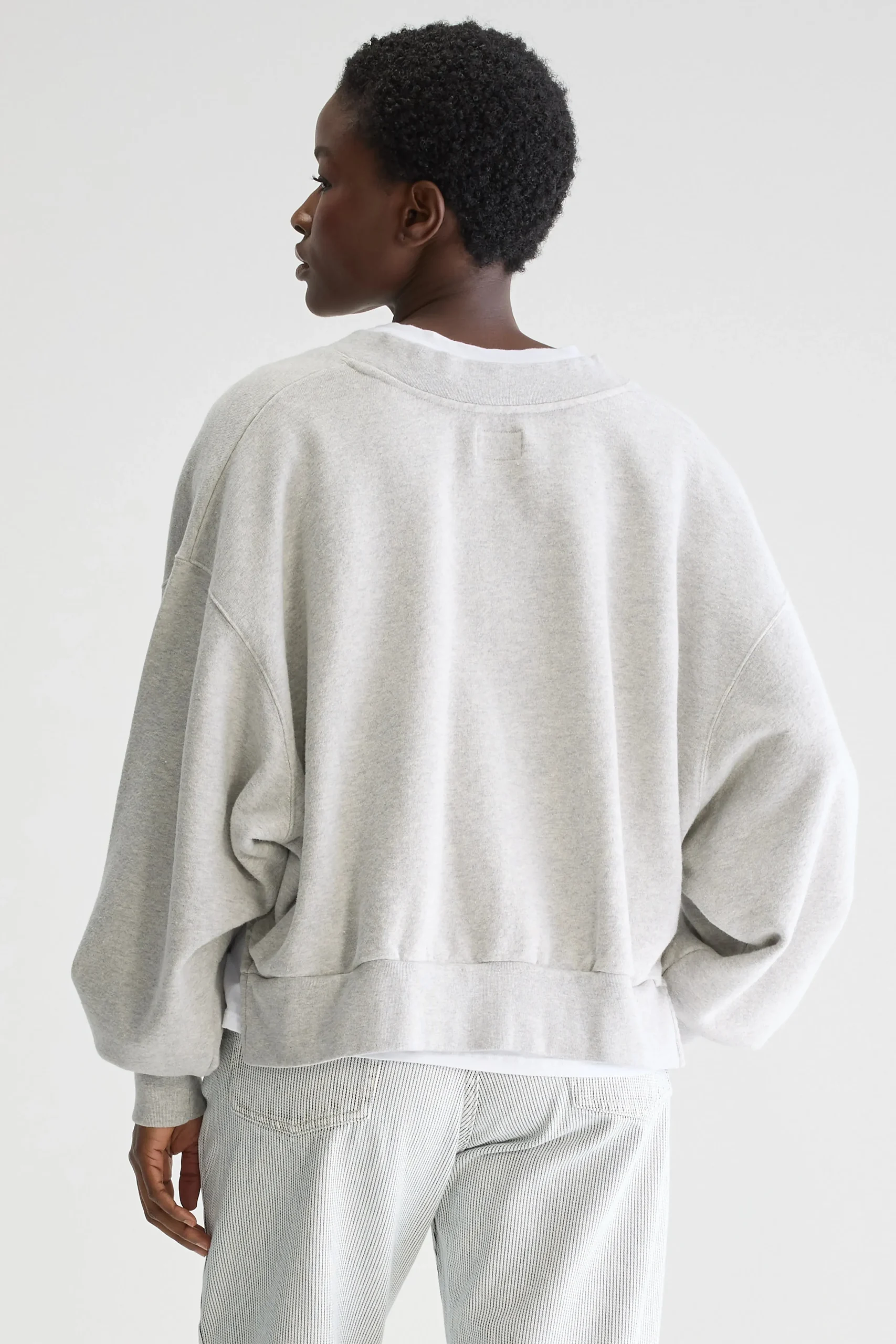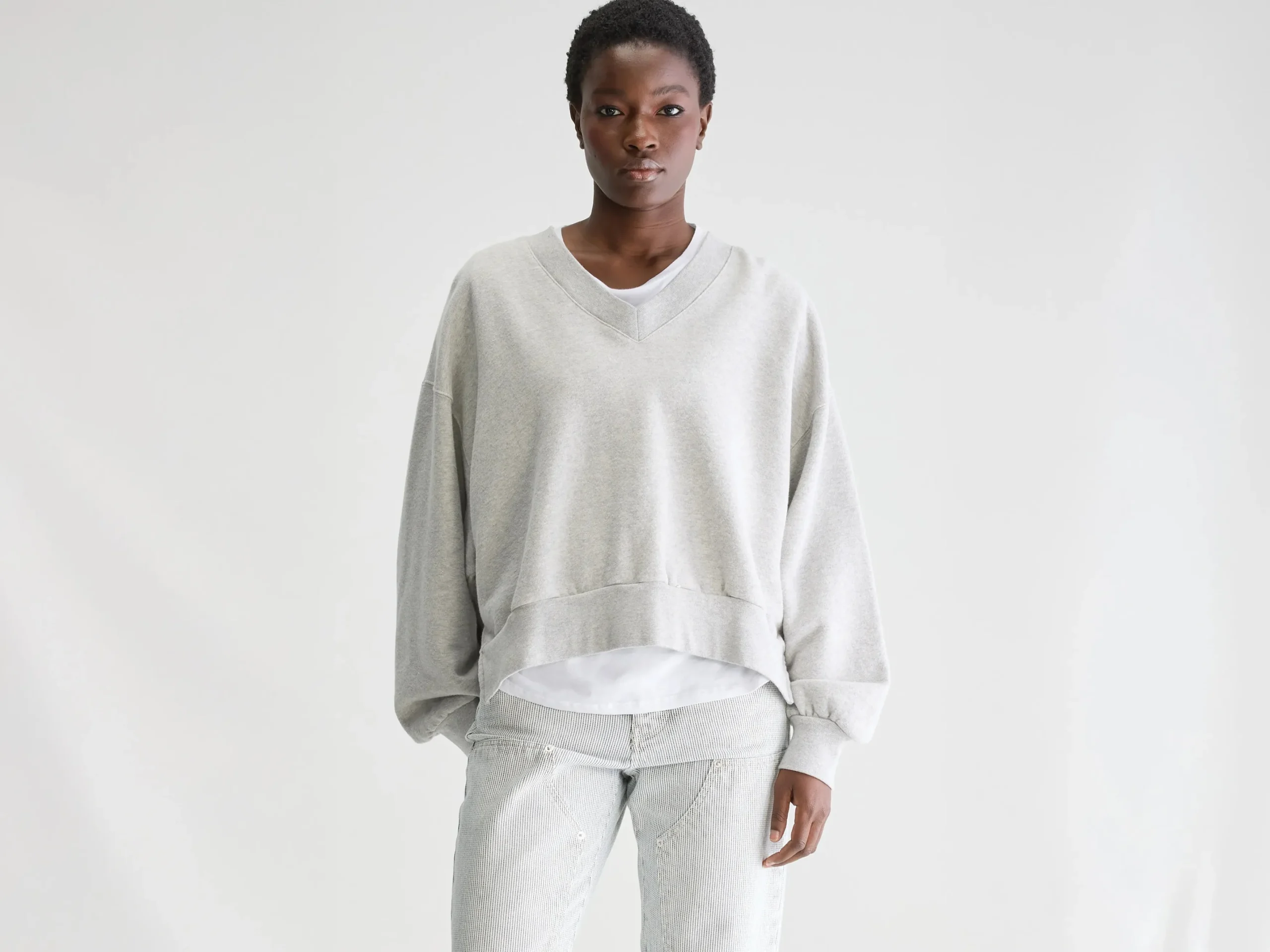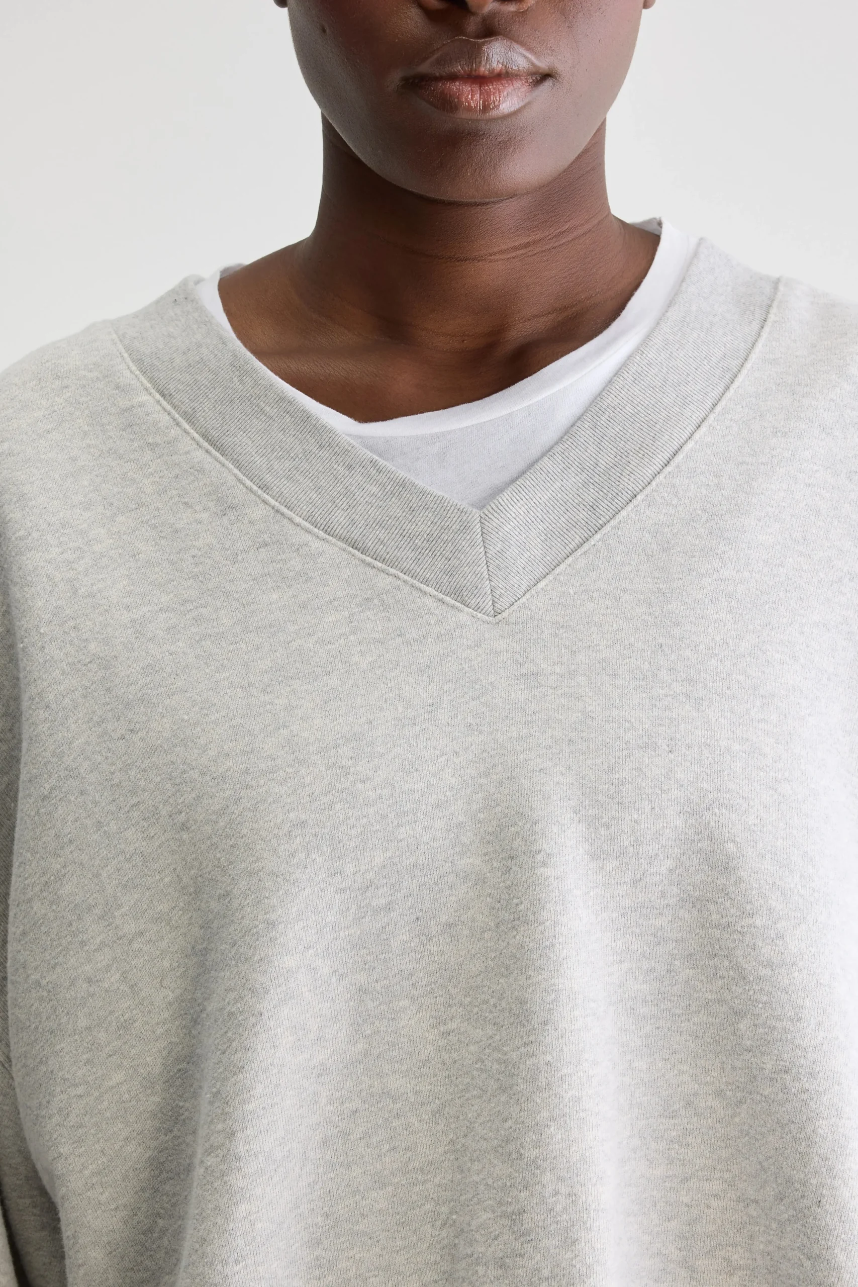 Oversized cropped sweatshirt met een V-hals, pofmouwen en zijsplitten, gemaakt van katoenen jersey in heidegrijs.Oversiz…