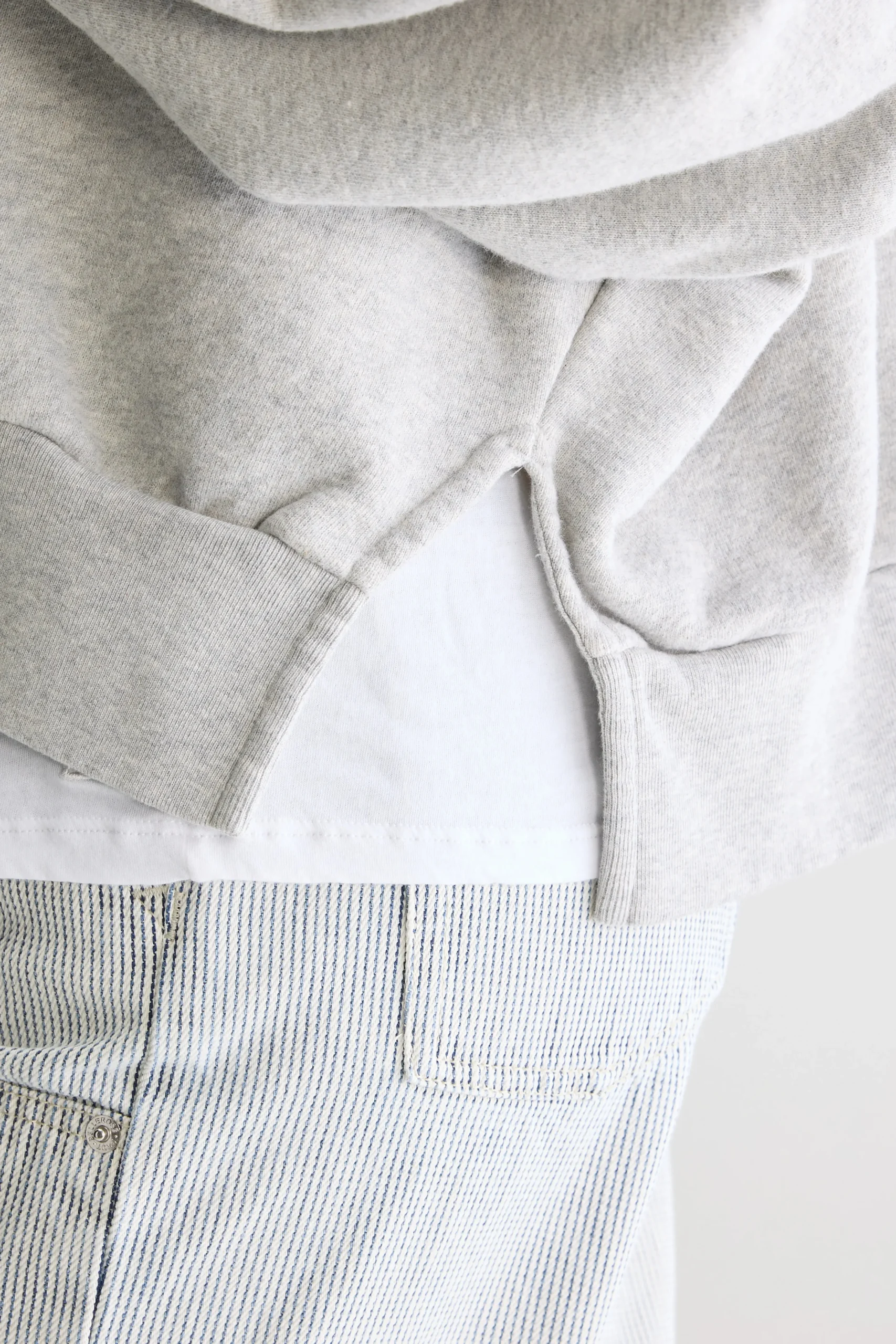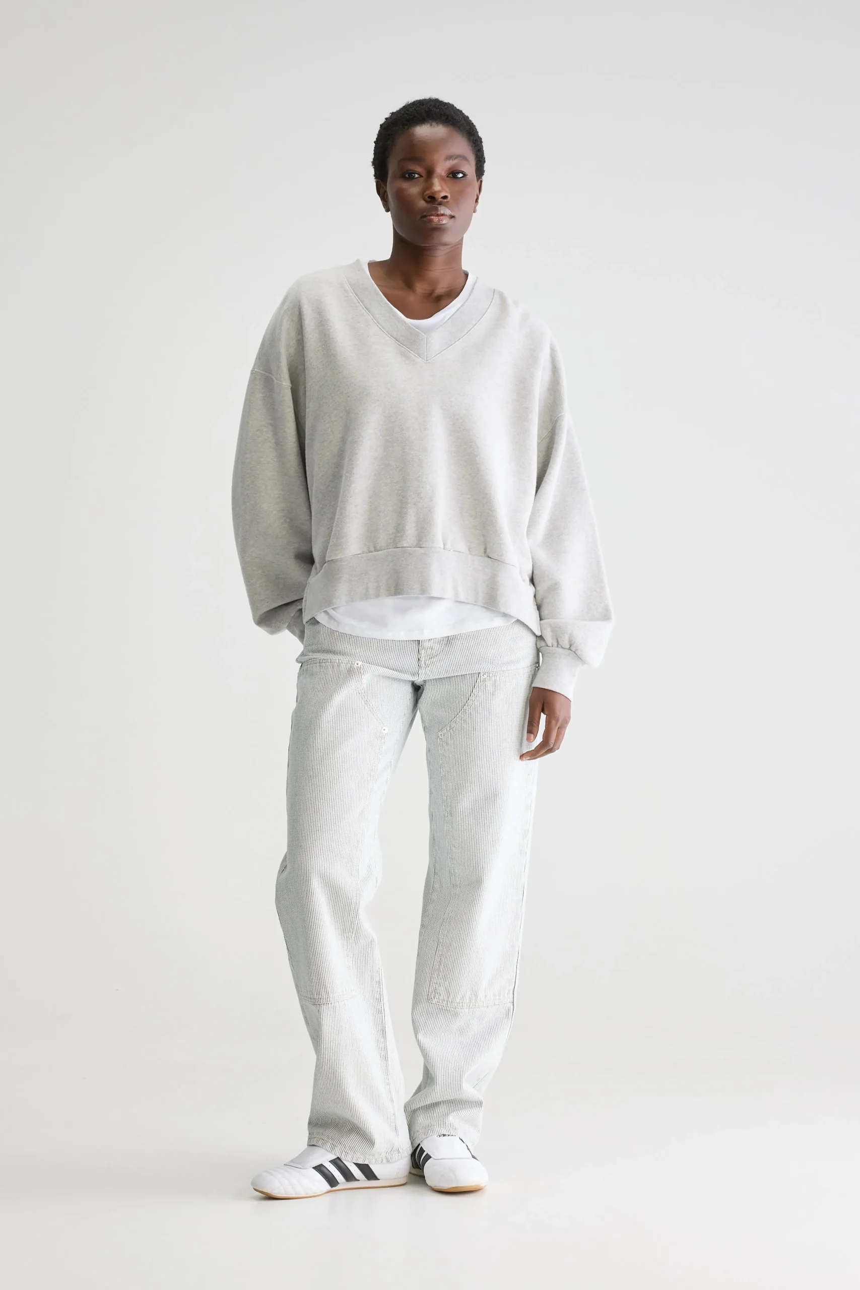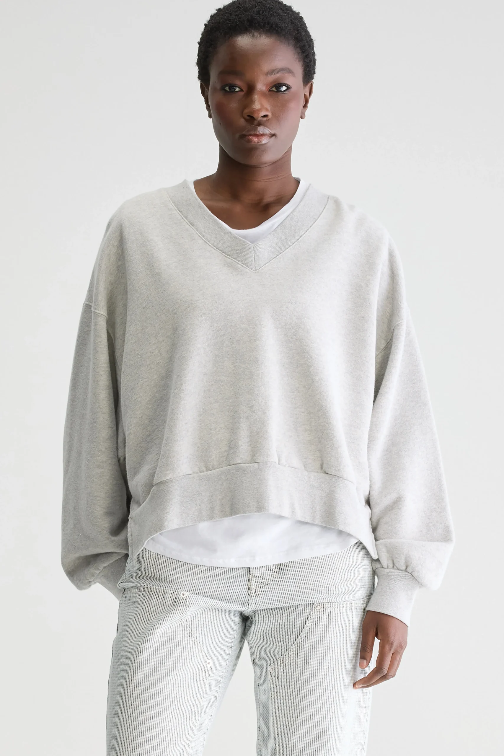 Oversized cropped sweatshirt met een V-hals, pofmouwen en zijsplitten, gemaakt van katoenen jersey in heidegrijs.Oversiz…