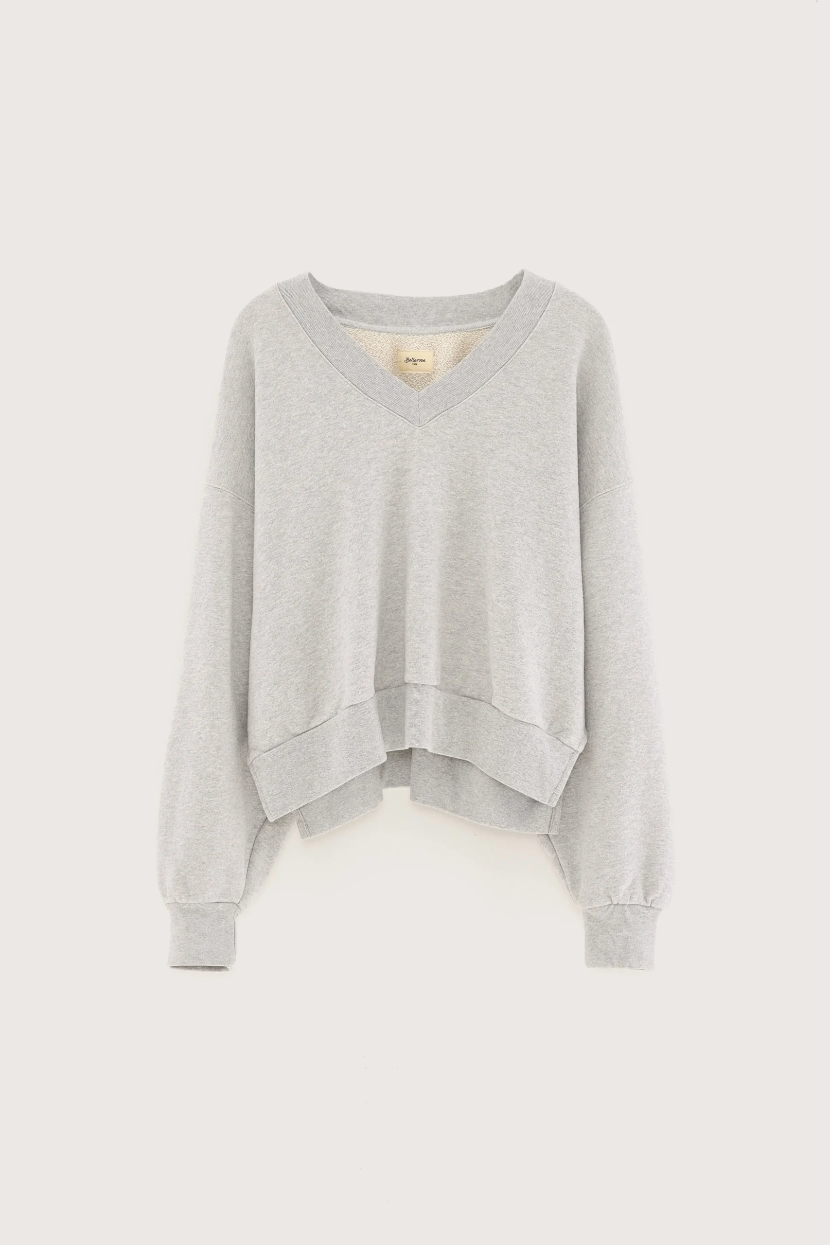 Oversized cropped sweatshirt met een V-hals, pofmouwen en zijsplitten, gemaakt van katoenen jersey in heidegrijs.Oversized cropped pasvorm : Kies