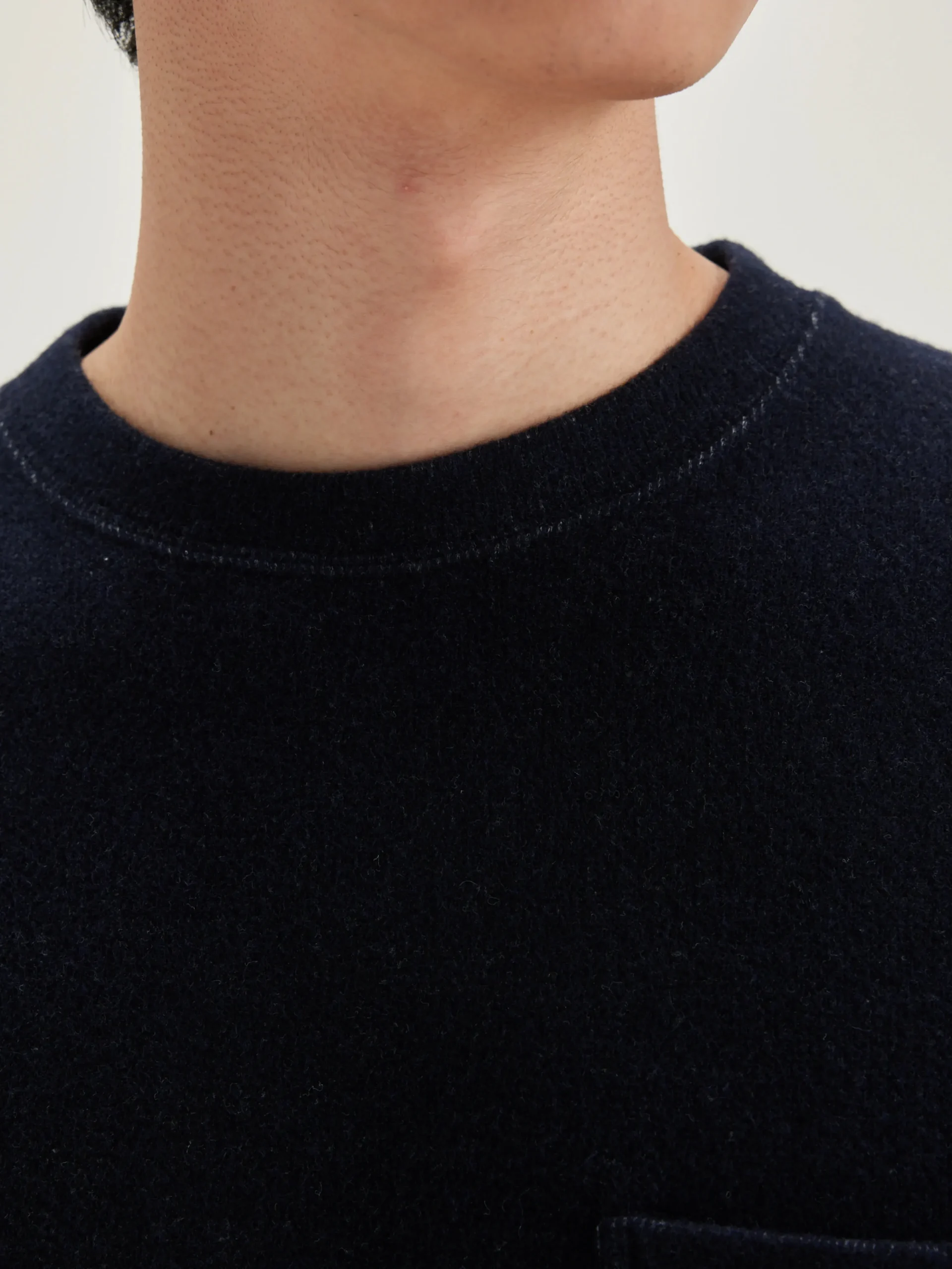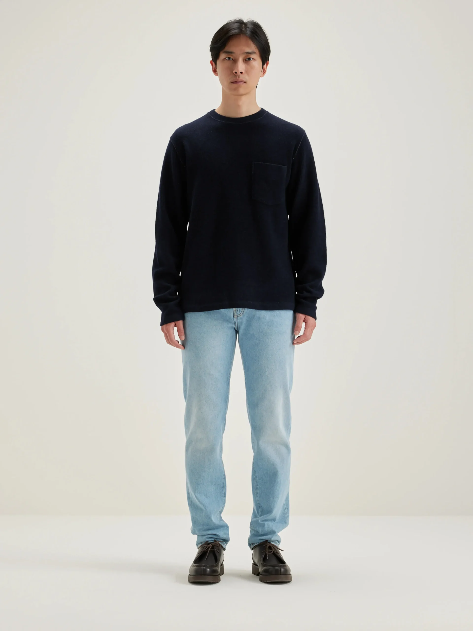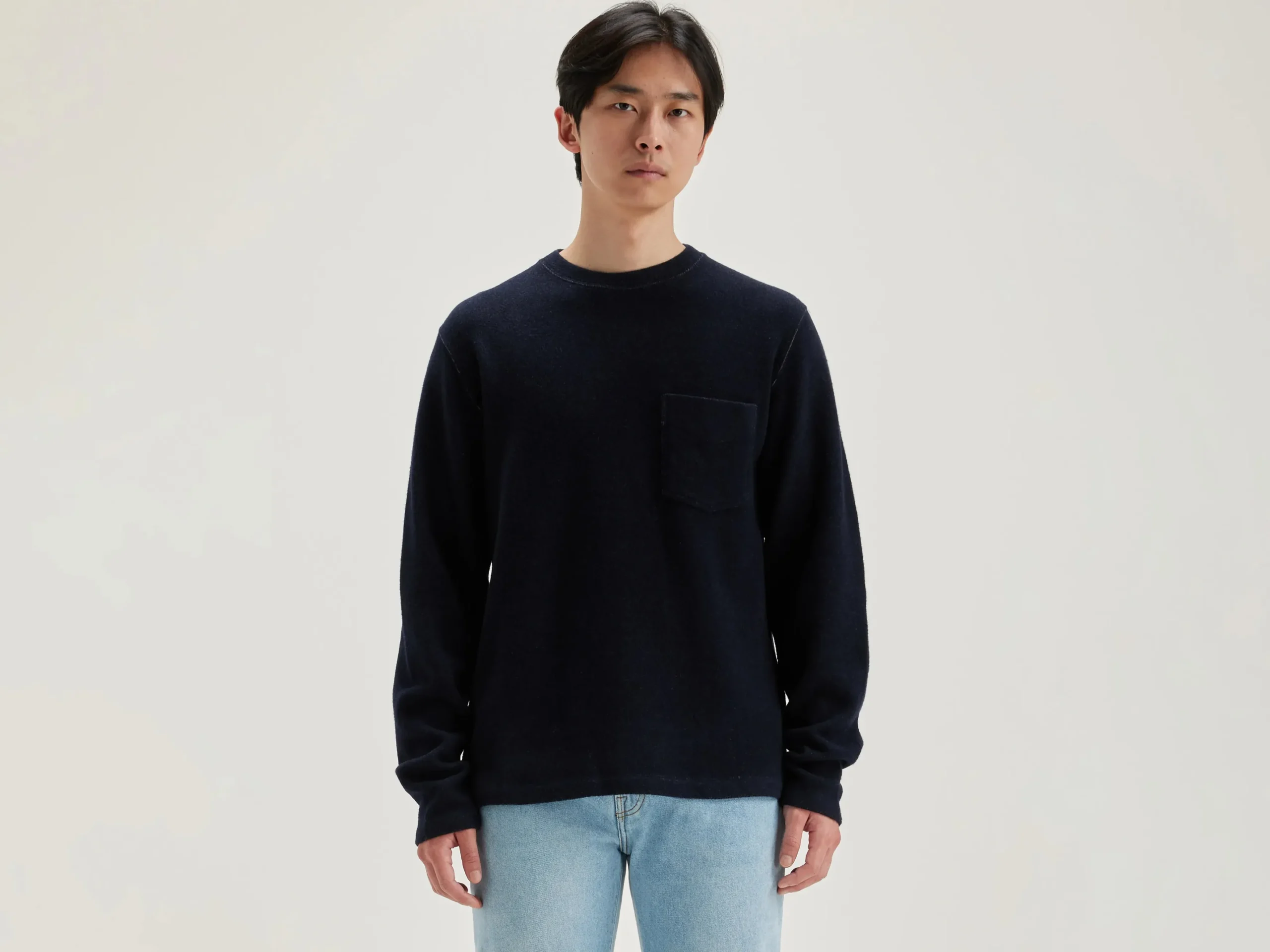 Klassieke rechte crewneck sweatshirt van marineblauwe, geborstelde katoen en wol jersey.rKlassieke rechte pasvormrRond…
