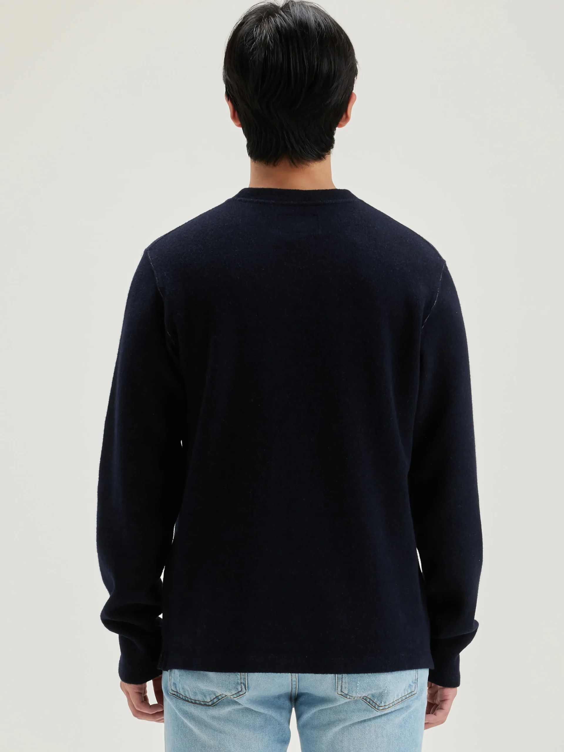 Klassieke rechte crewneck sweatshirt van marineblauwe, geborstelde katoen en wol jersey.r
