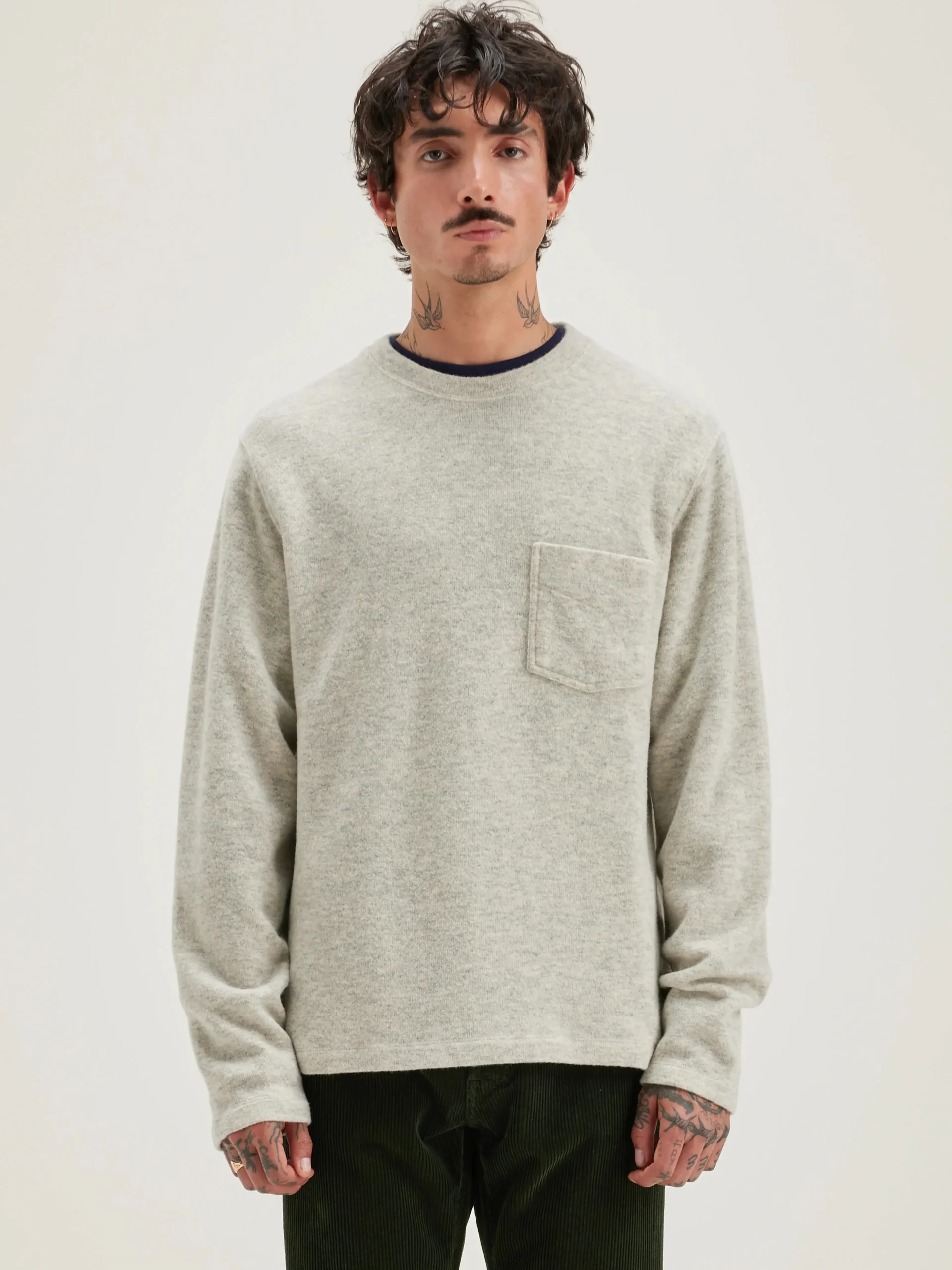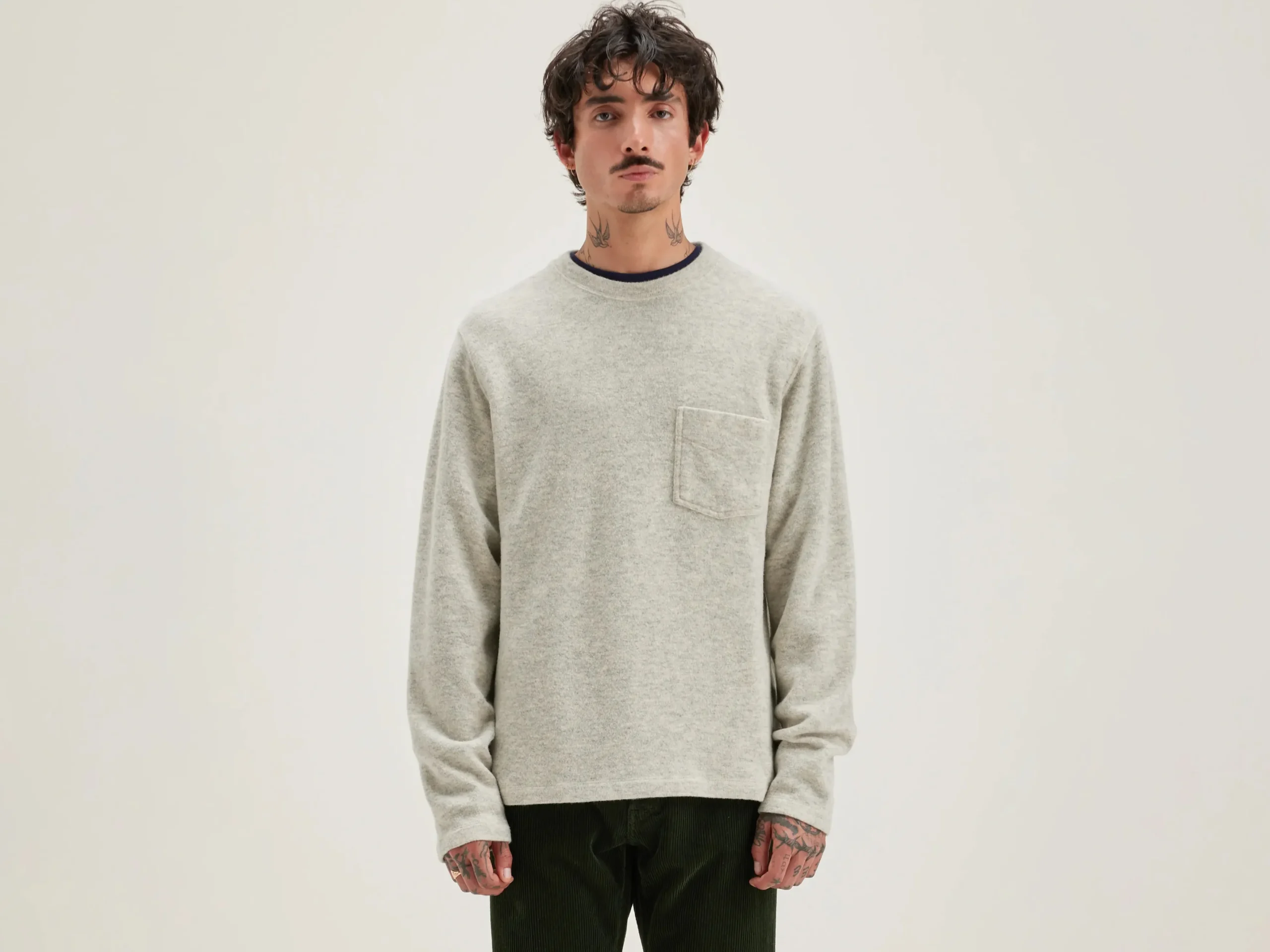Klassieke rechte crewneck sweatshirt van heidegrijze, geborstelde katoen en wol jersey.r