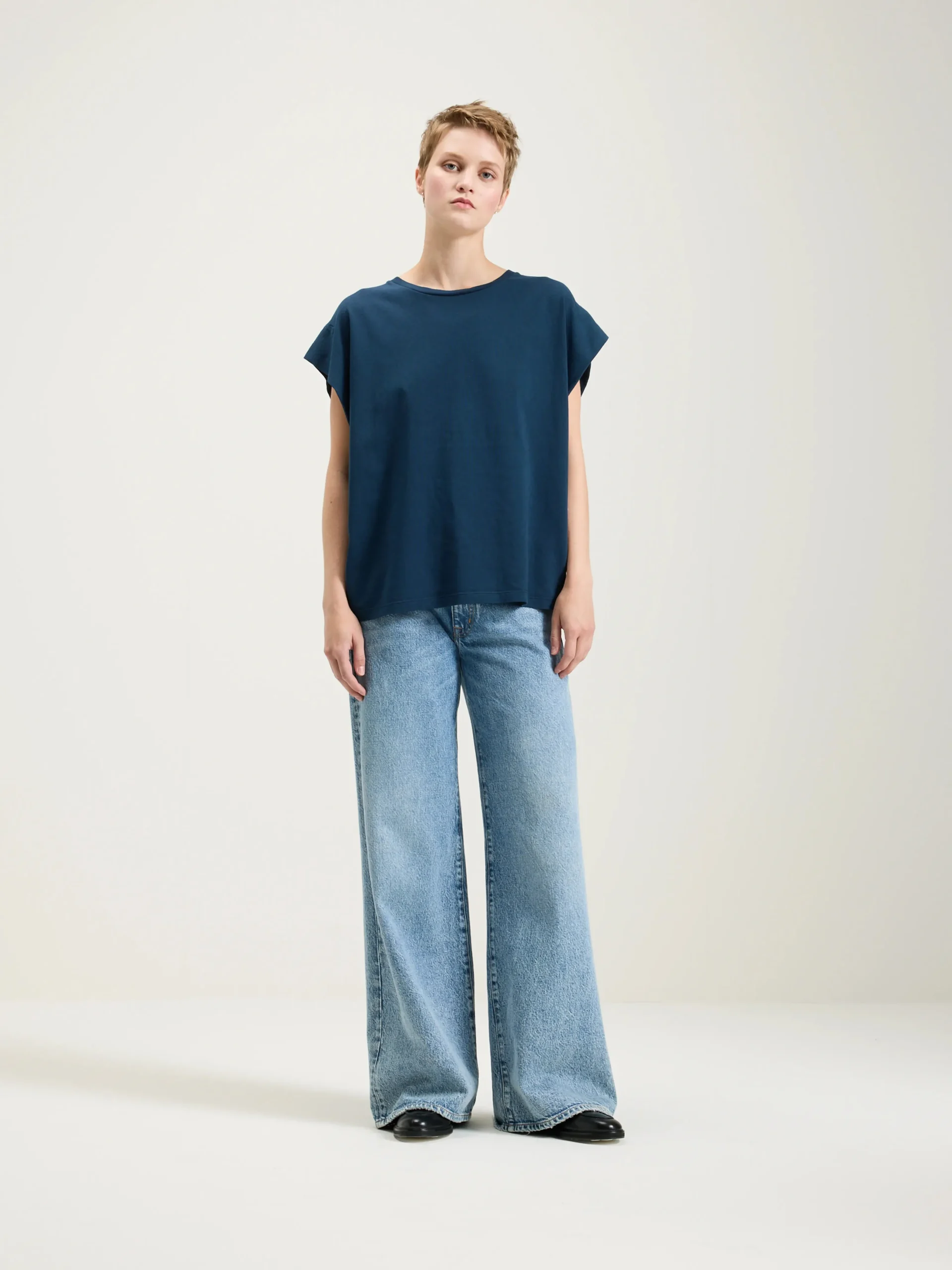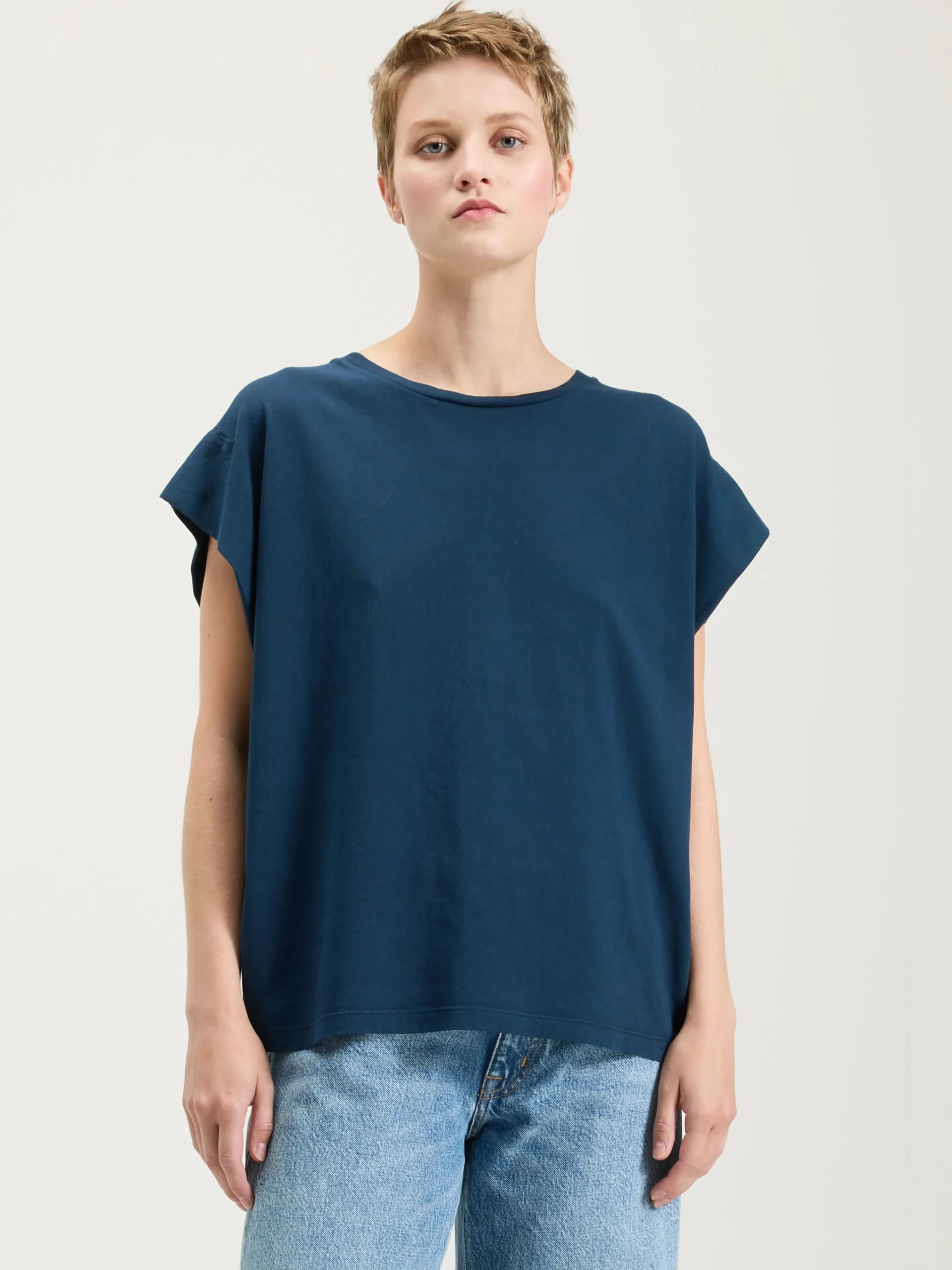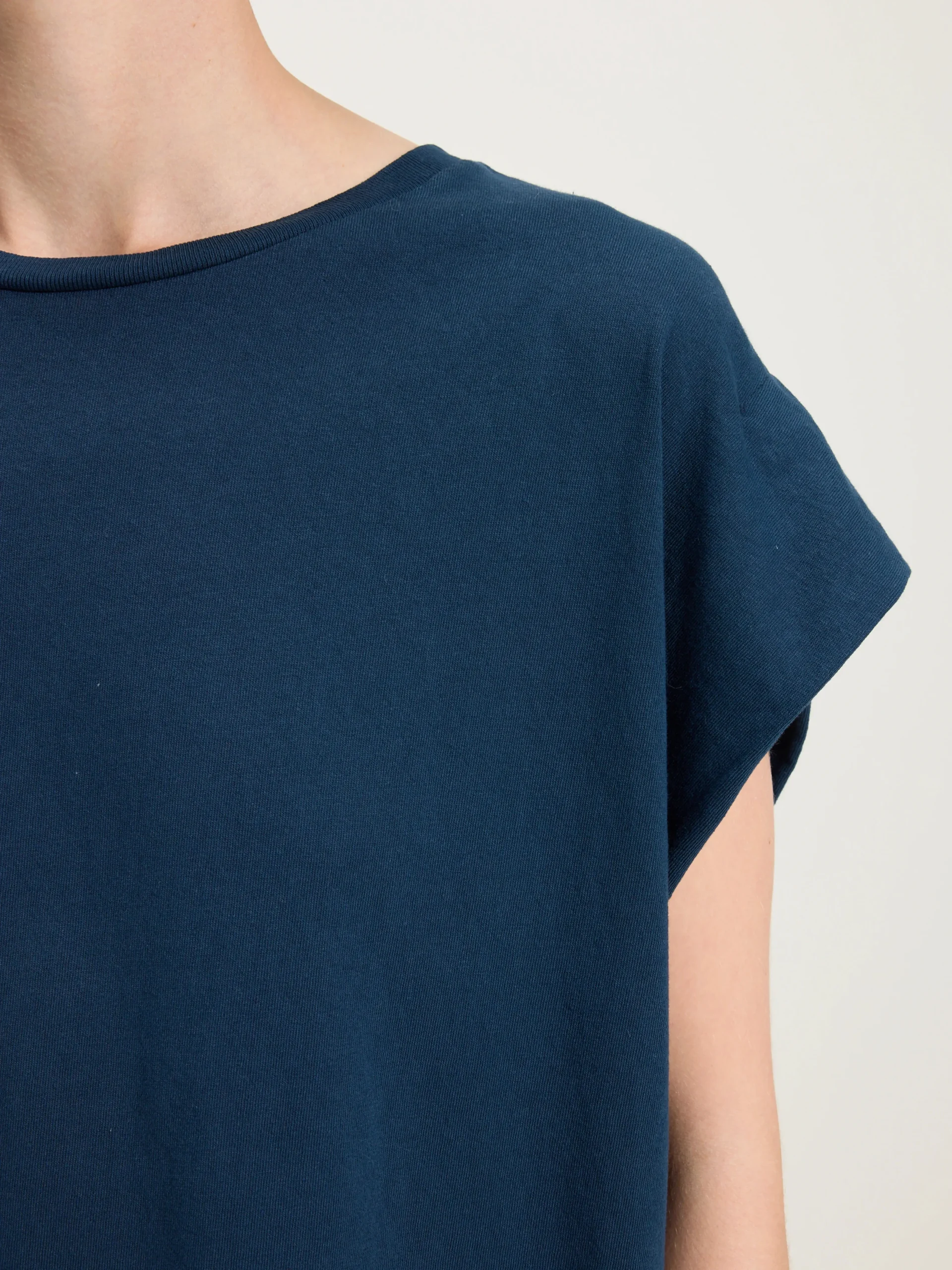 Muscle t-shirt met gevouwen schouders en ronde hals in inktblauwe katoenjersey.rRegular modelrGeribde ronde halsrBree…