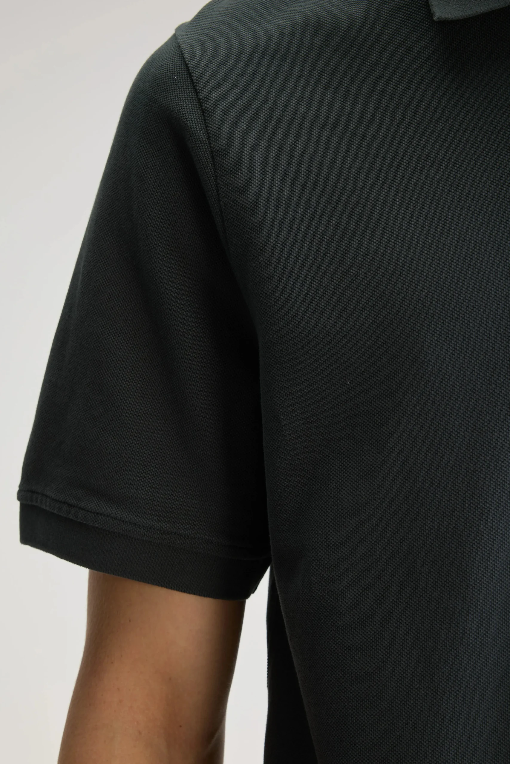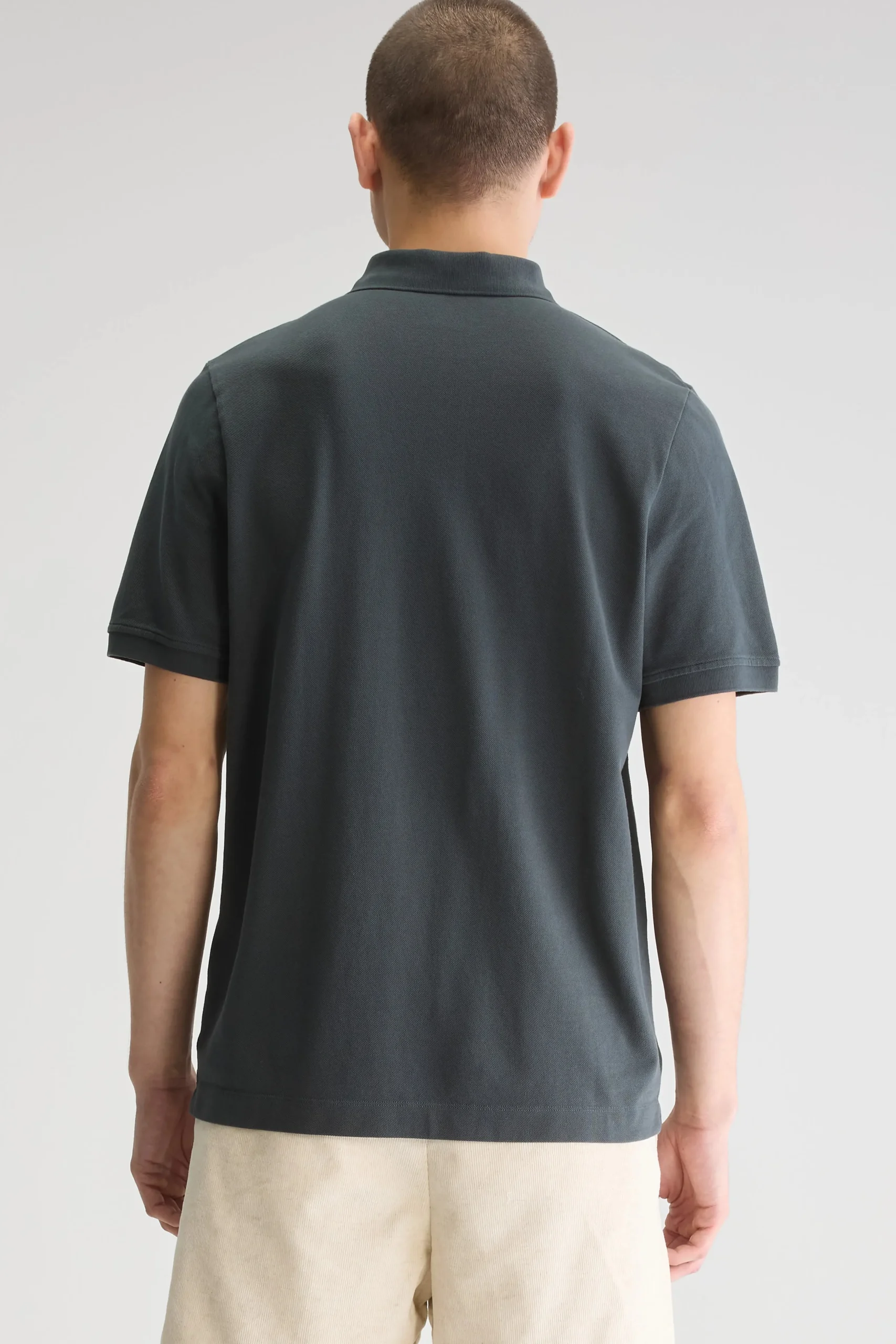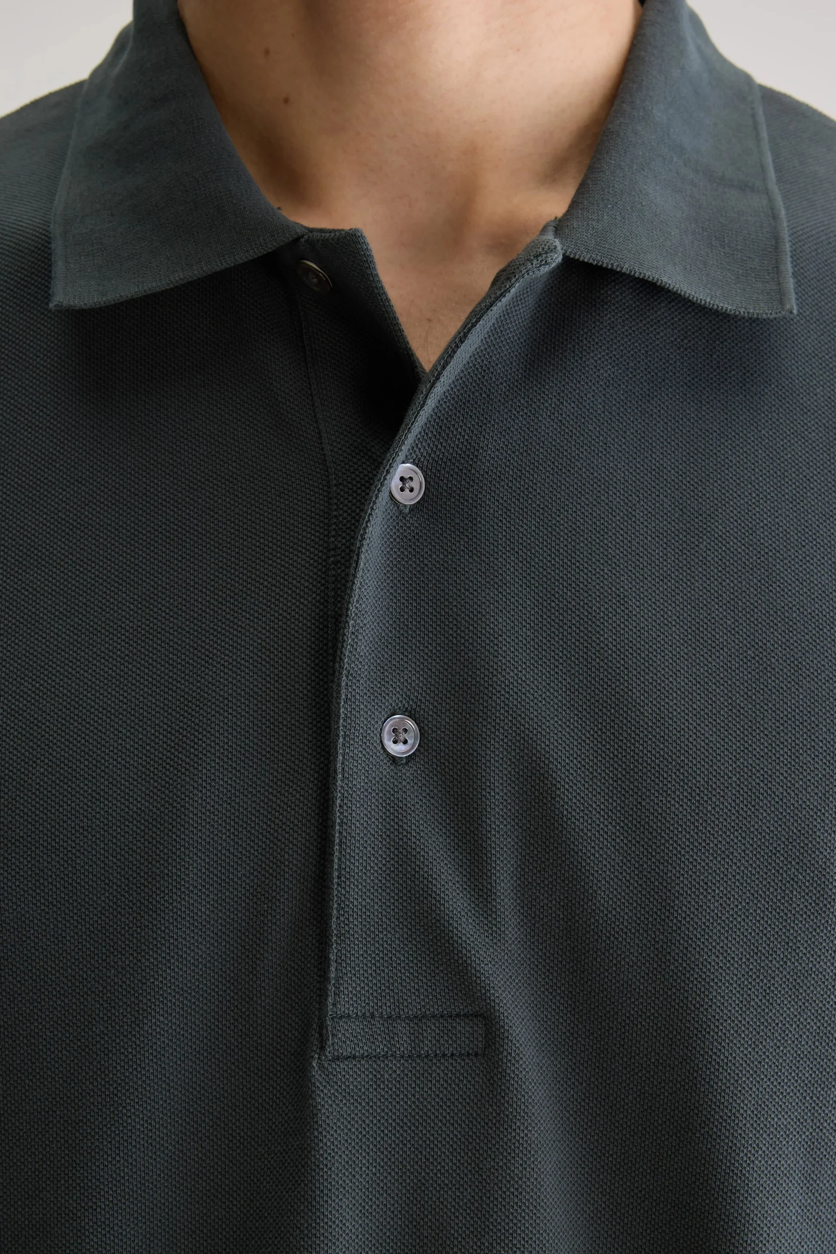Losse polo met geribde boorden en buttonkraag, gemaakt van klassiek donkergrijs piqué katoen.Losse pasvorm Geribde kraagKorte mouwen met geribde boordenPiqué katoen
