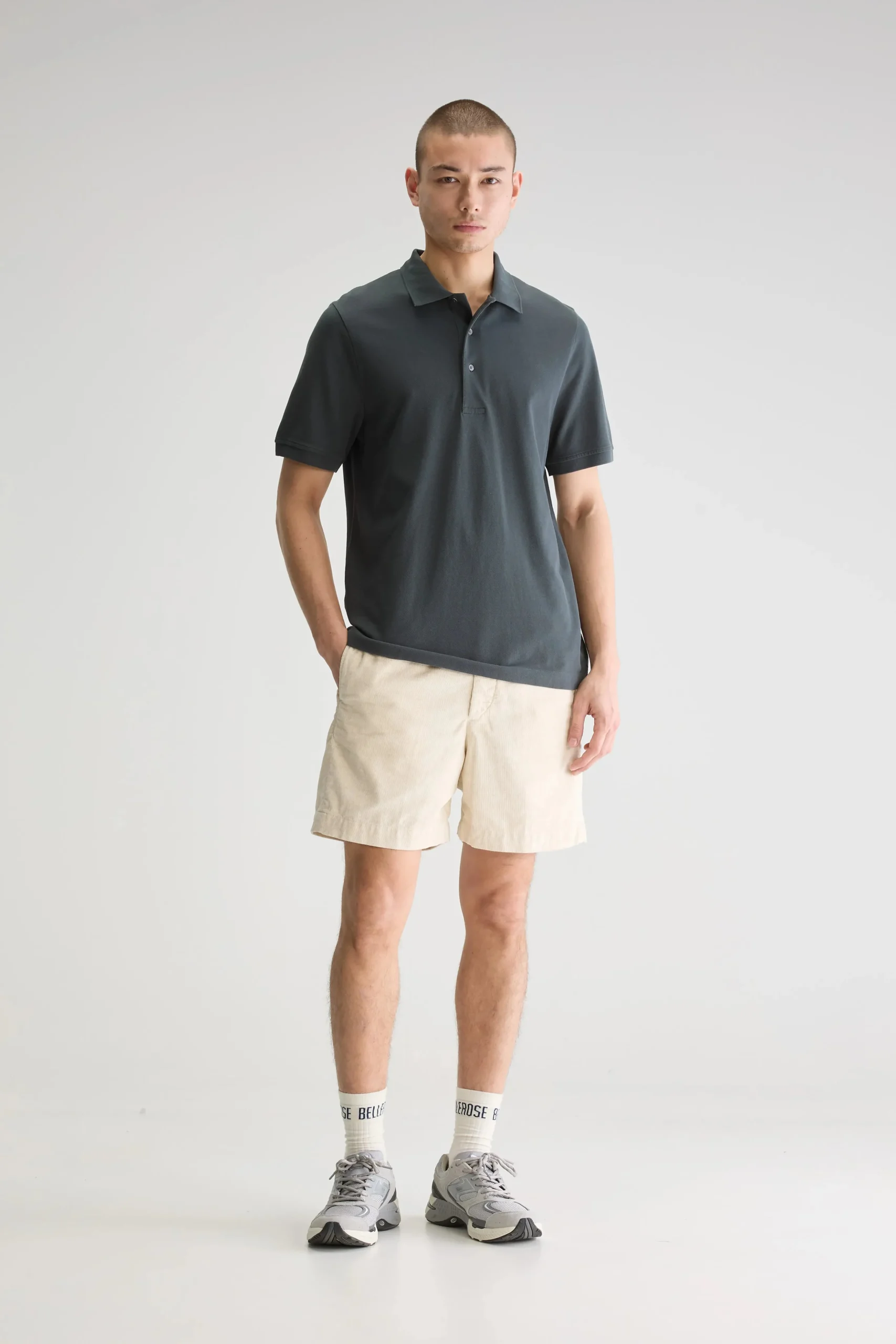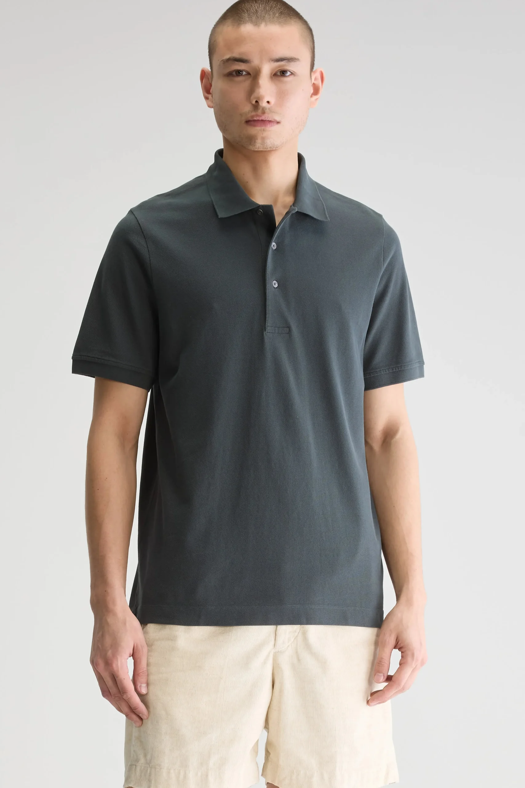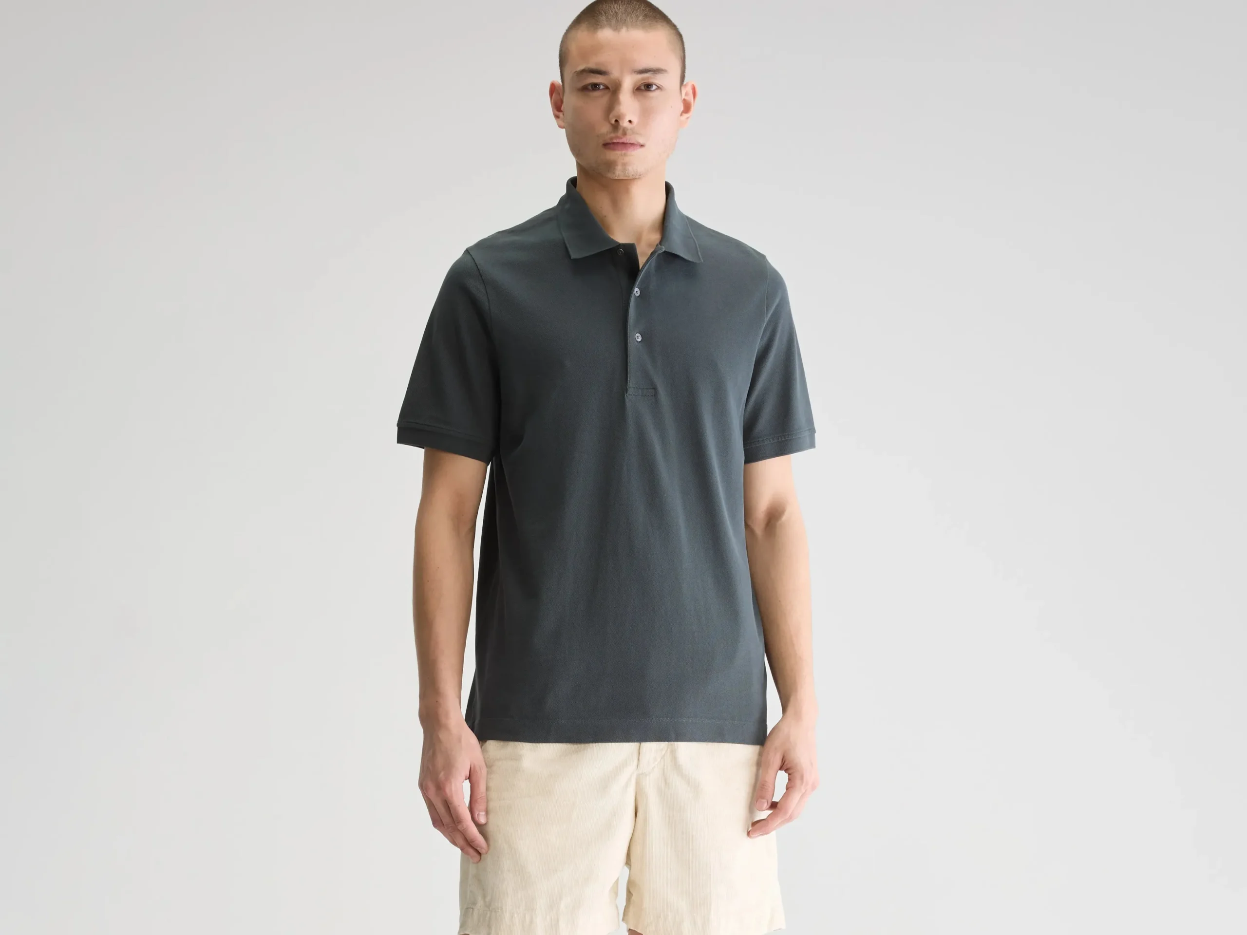 Losse polo met geribde boorden en buttonkraag, gemaakt van klassiek donkergrijs piqué katoen.Losse pasvorm Geribde kraagKorte mouwen met geribde boordenPiqué katoen