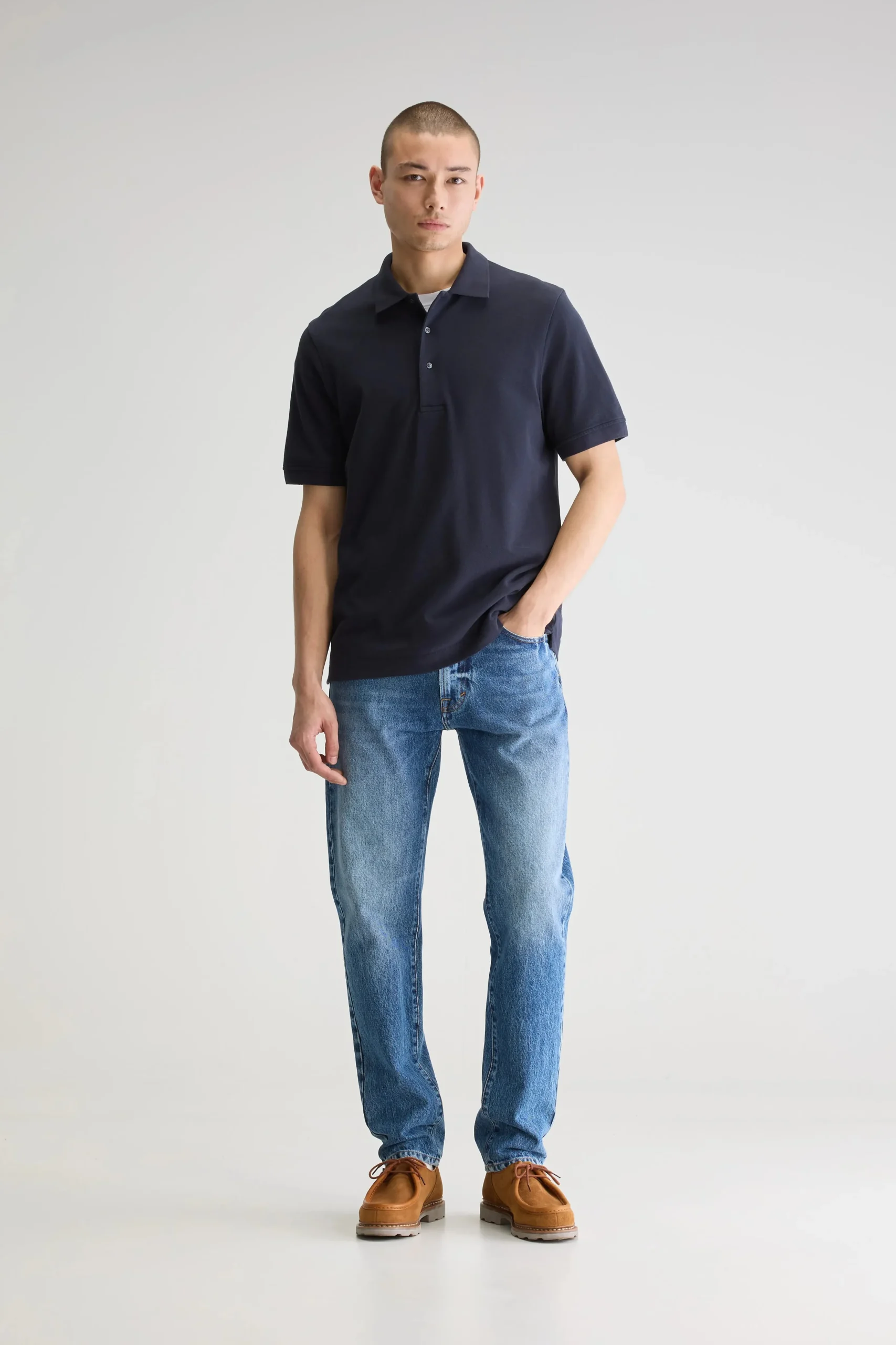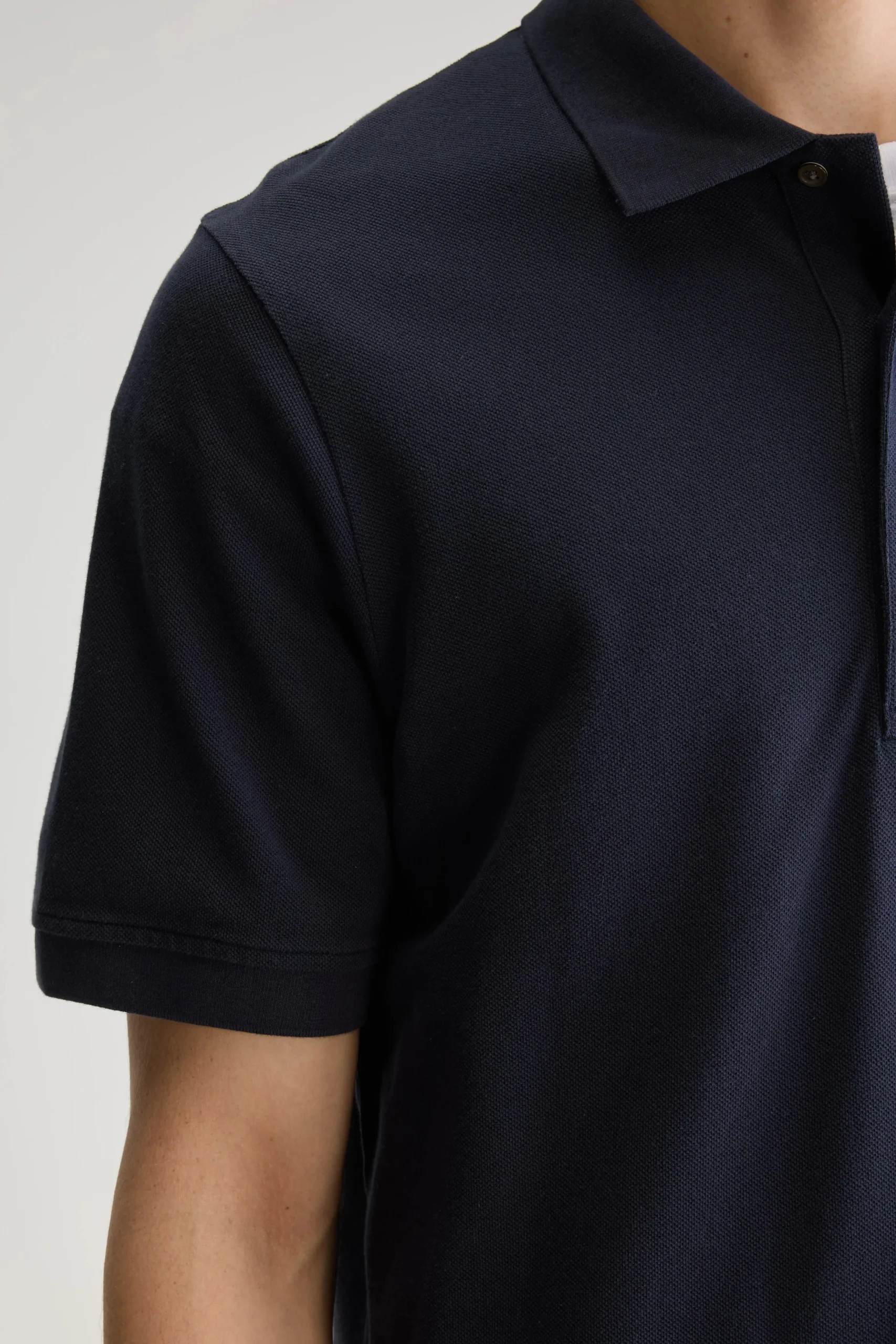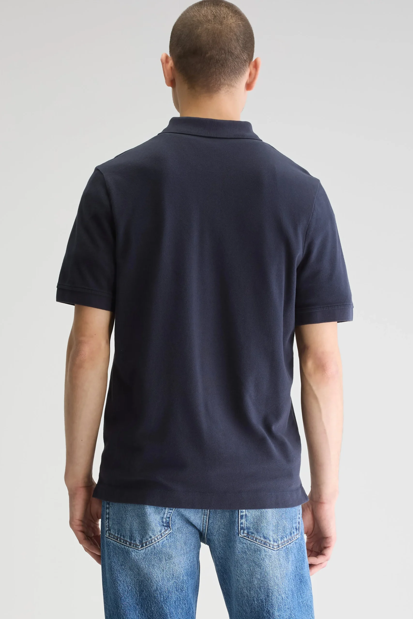 Losse polo met geribde boorden en kraag met knoopsluiting, gemaakt van klassiek marineblauw piqué katoen.Losse pasvorm Geribde kraagKorte mouwen met geribde boordenPiqué katoen