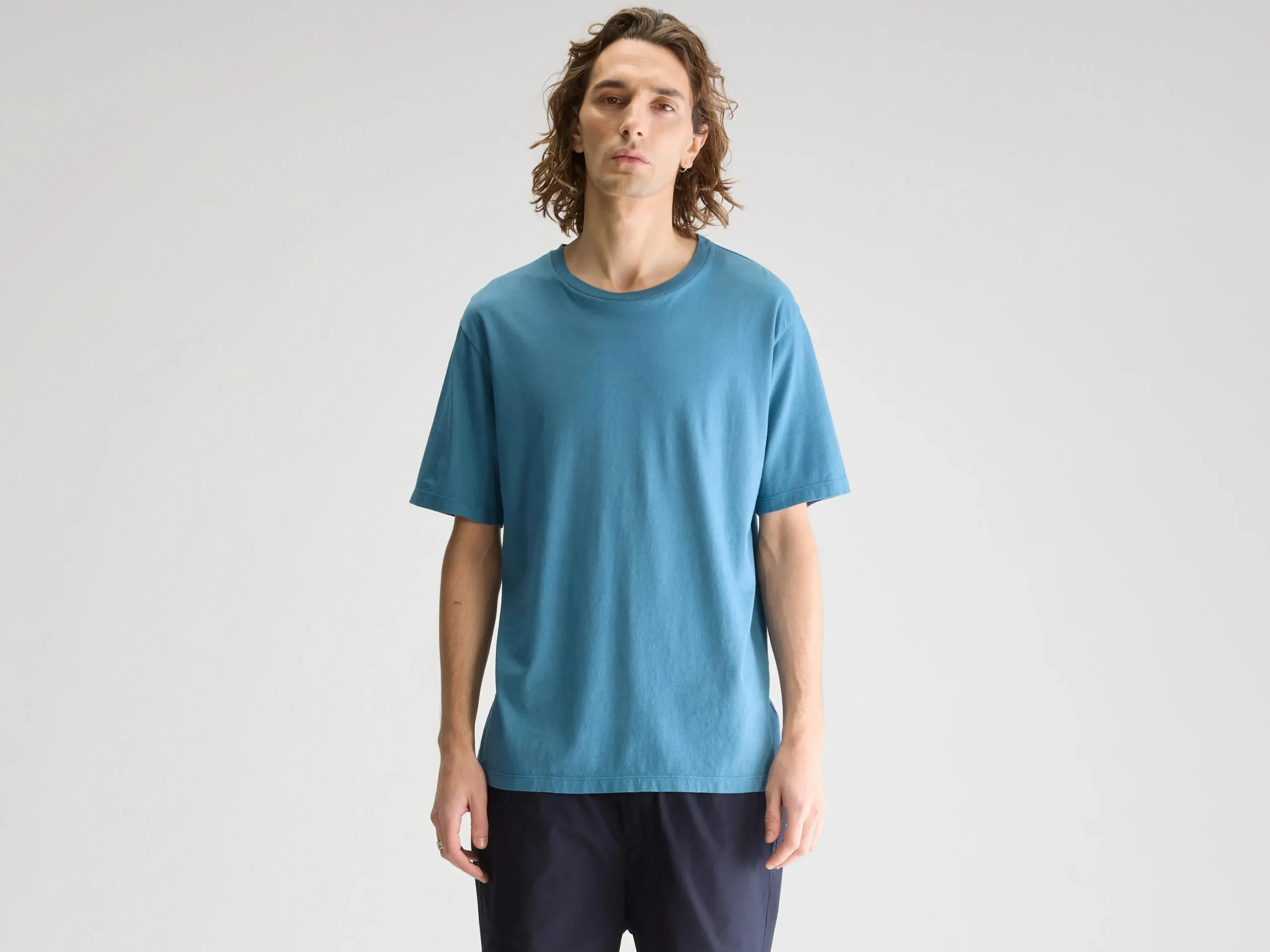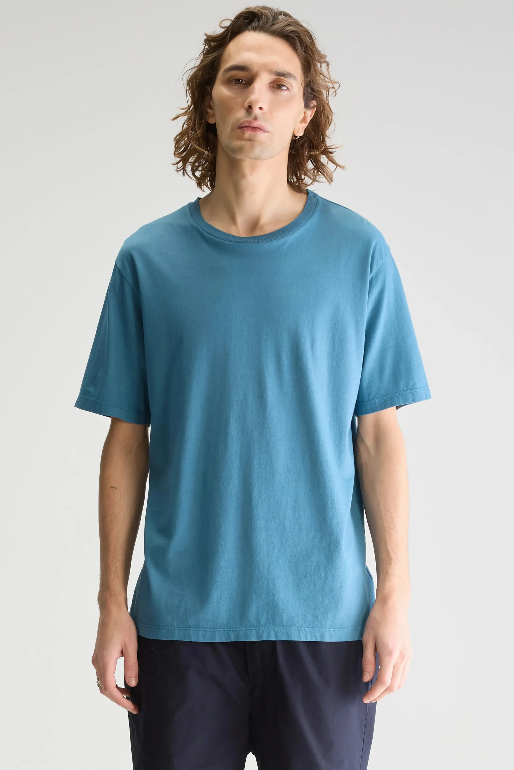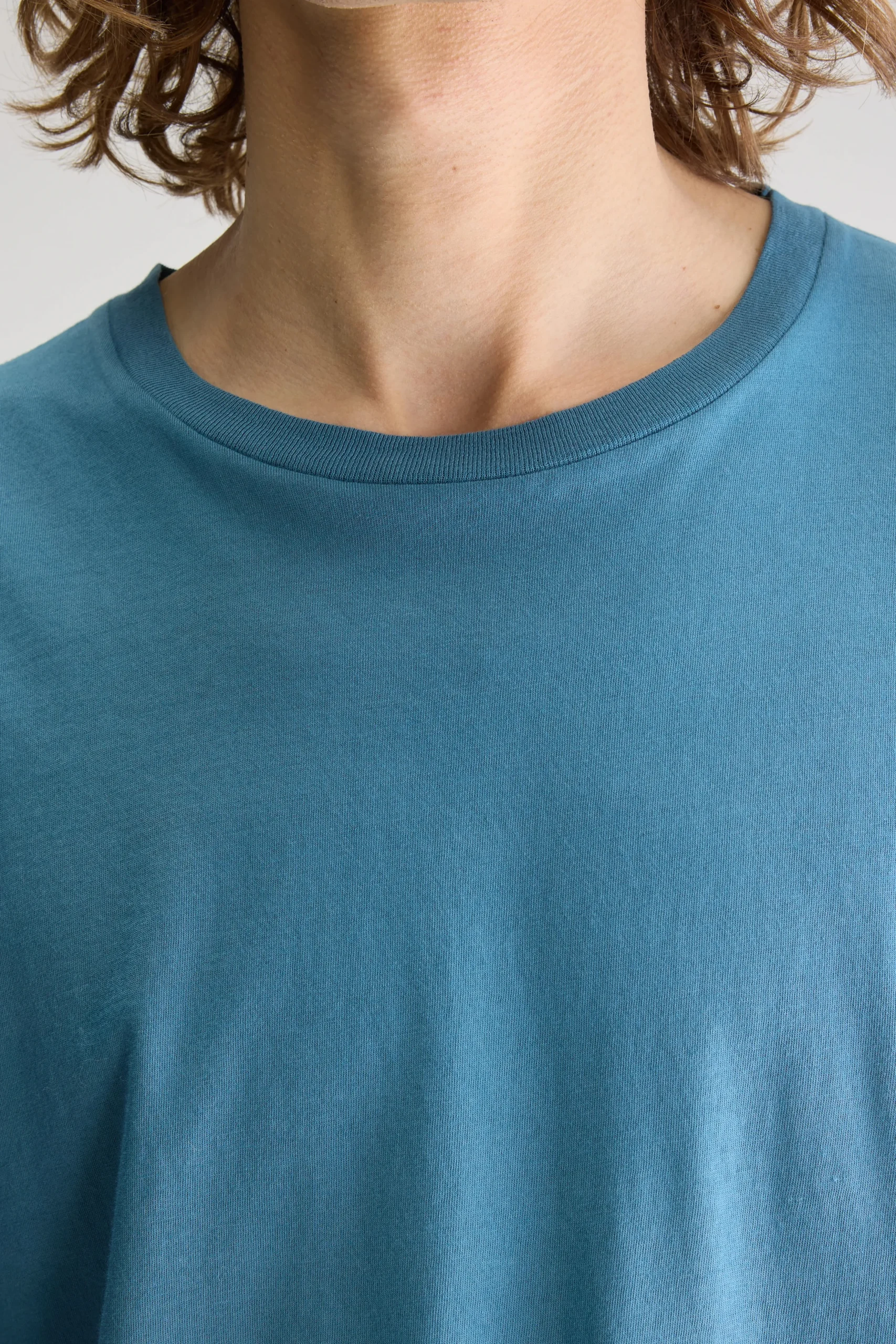 Regular T-shirt met ronde hals en korte mouwen, gemaakt van licht, blauw katoenjersey.Regular pasvorm Geribde ronde hals Korte mouwen Licht katoenjersey