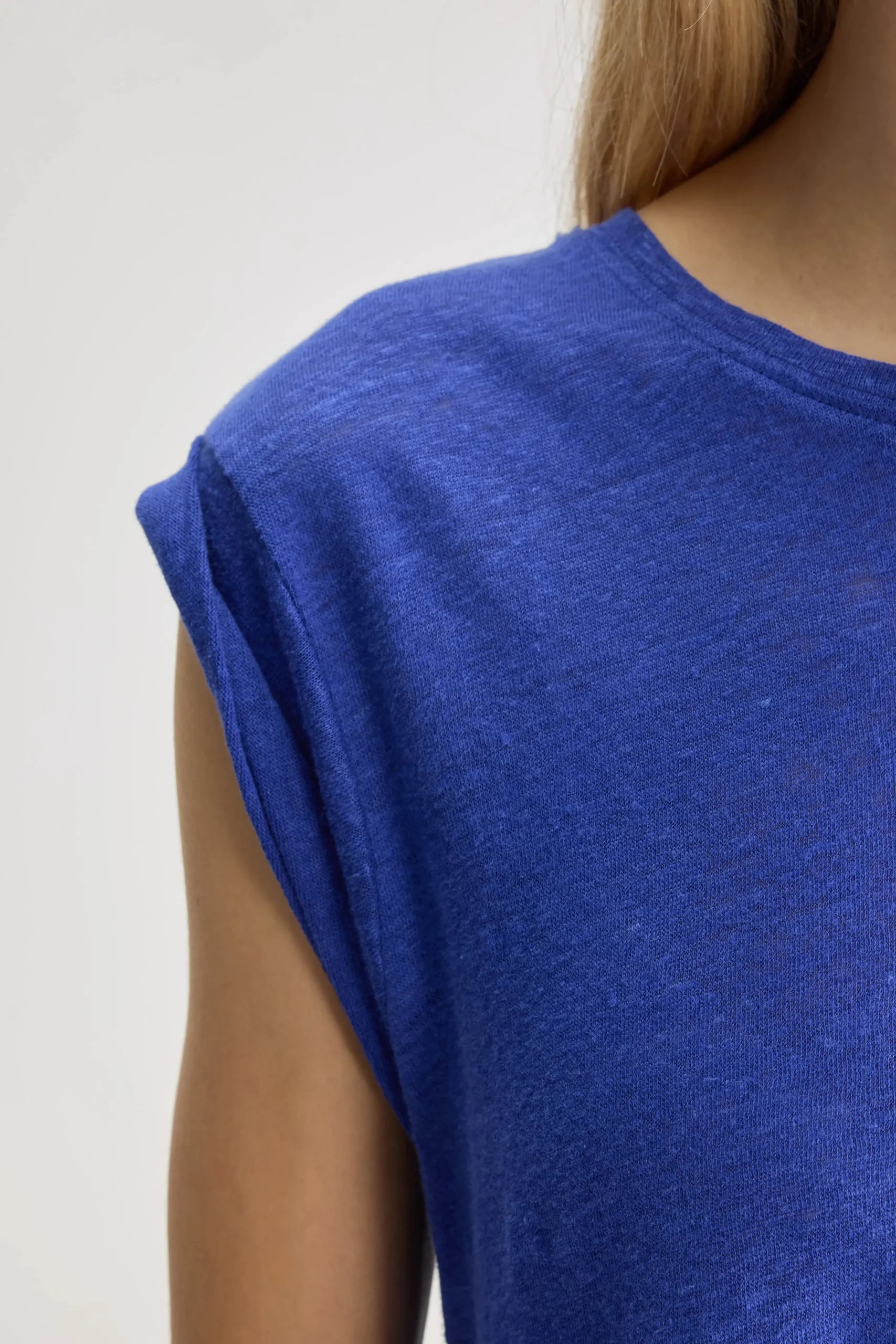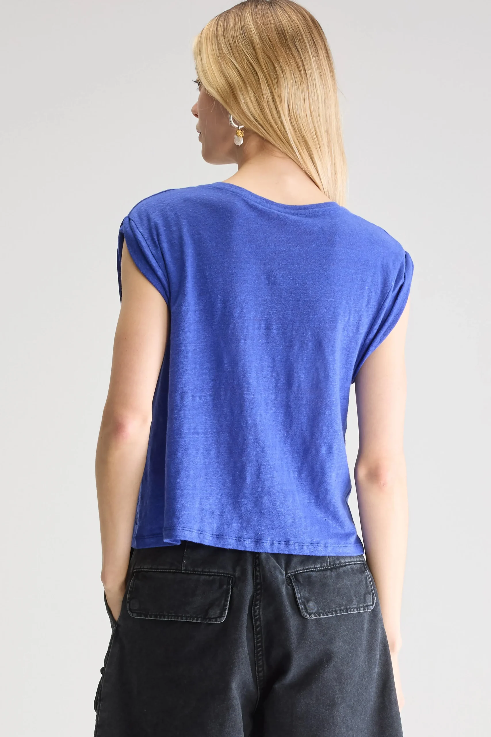 Klassiek T-shirt met ronde hals, omgeslagen schouders en schuine zijnaden, gemaakt van middelzwaar, blauw katoenjersey i…