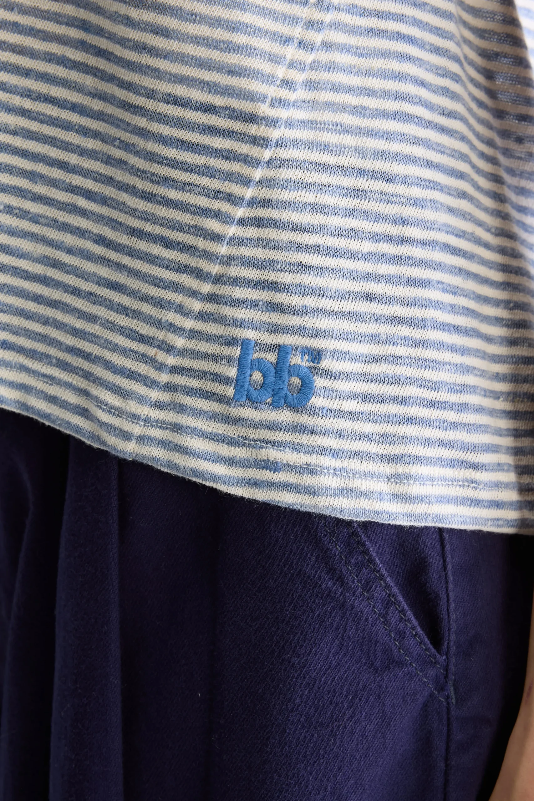 Klassiek T-shirt met ronde hals, omgeslagen schouders en schuine zijnaden, gemaakt van licht katoenjersey met blauwe en witte strepen. Klassieke pasvorm Ronde hals Omgeslagen schouders Schuine zijnadenLicht katoenjersey