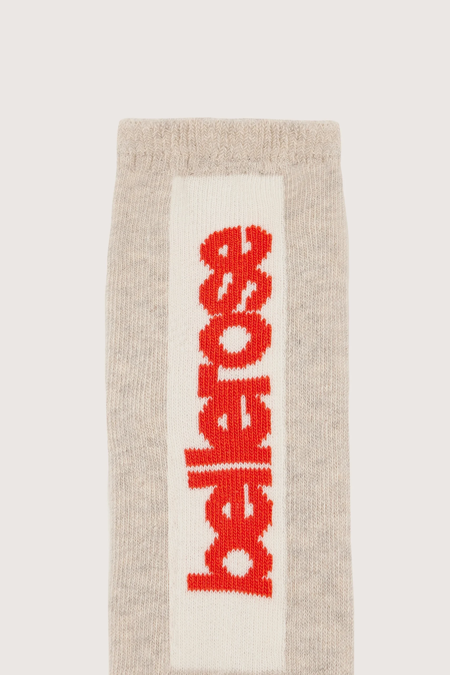 Heidebeige crew sokken van een ribgebreide katoenmix met contrasterend Bellerose logo op de hiel.Crew lengteRibtricot Bellerose-logo op de hiel