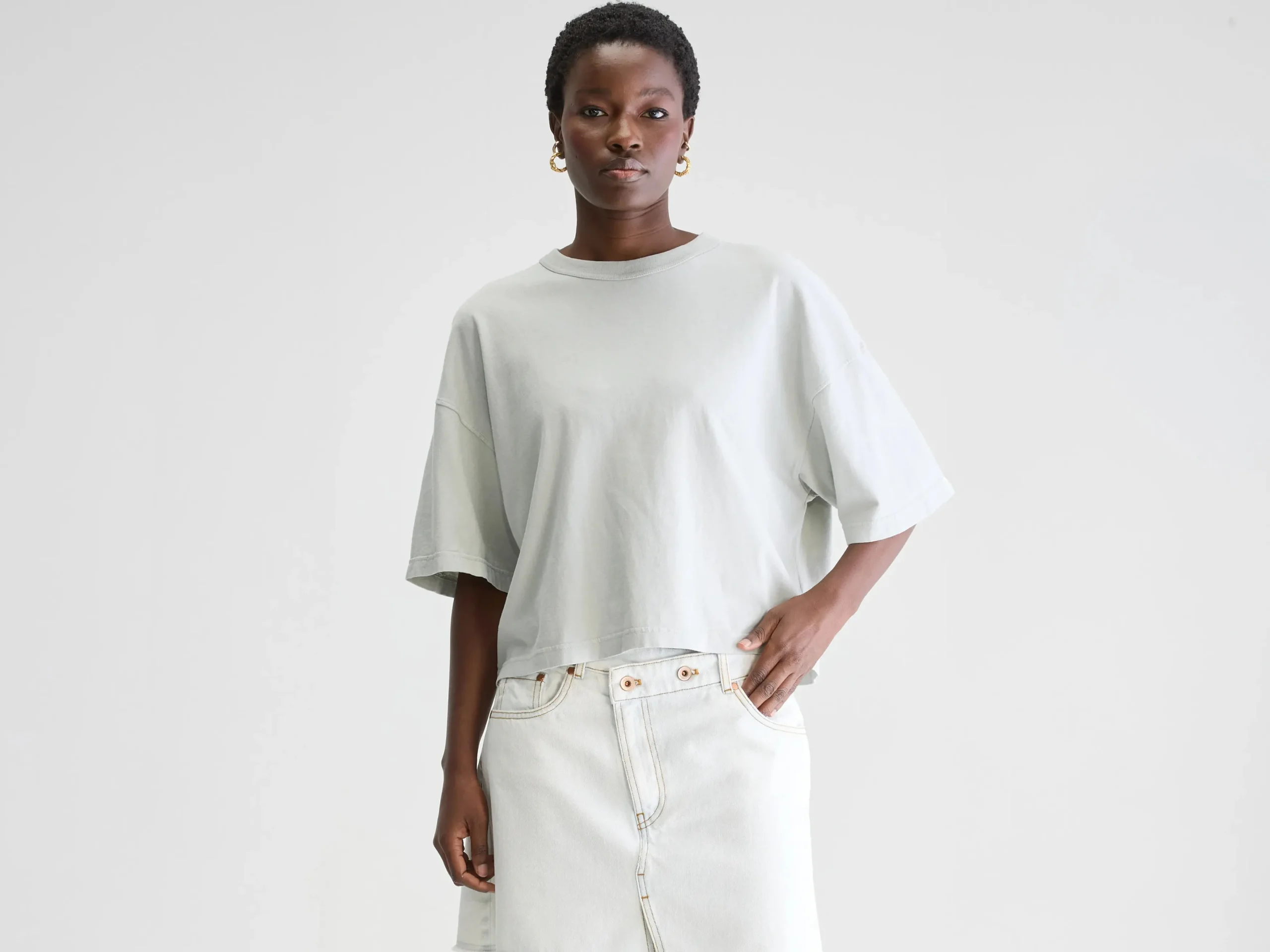 Relaxed t-shirt met korte mouwen en een ronde hals, gemaakt van licht-saliegroene katoenjersey.Relaxte pasvorm Korte mouwenRonde halsMiddelzware jersey stof