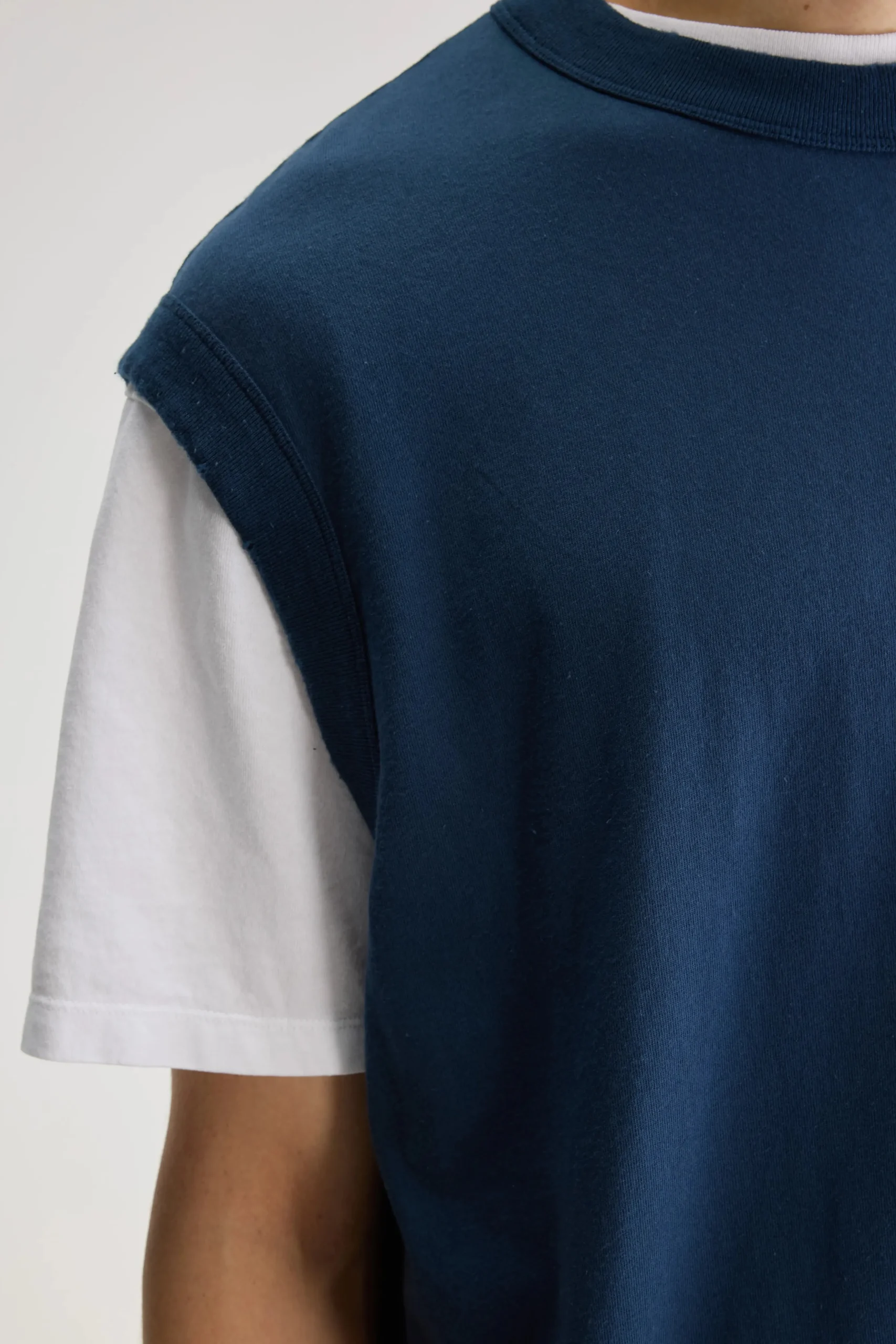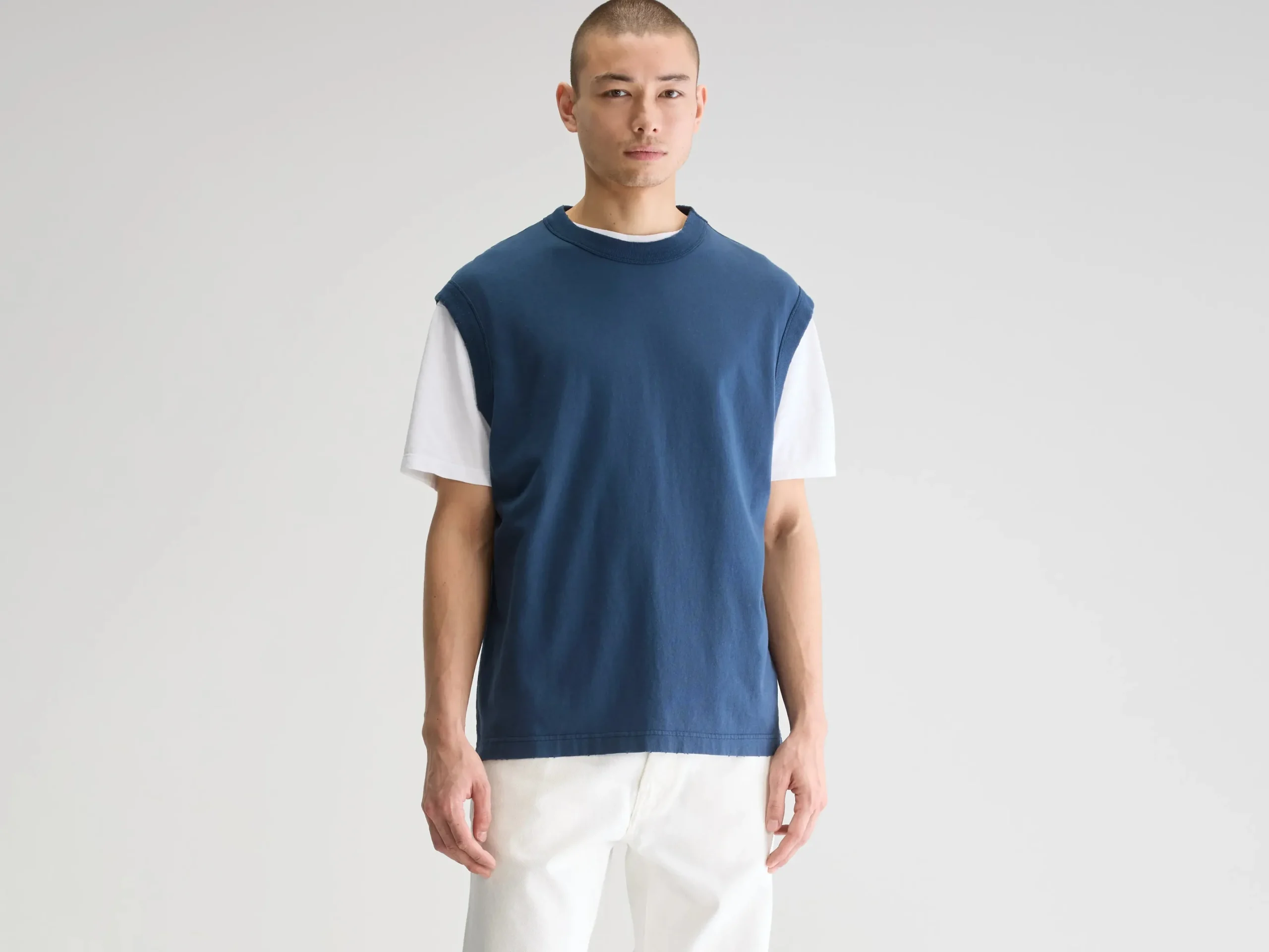 Losse tanktop met ronde hals en geribde boorden, gemaakt van inktblauw, middengewicht katoenjersey.Losse pasvorm Geribde boordenRustiek, middengewicht jersey
