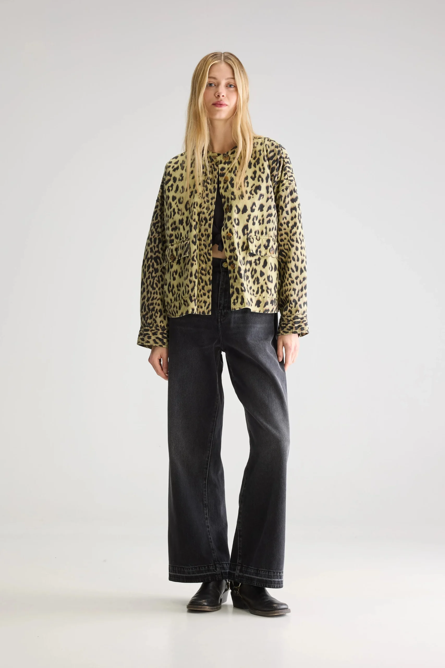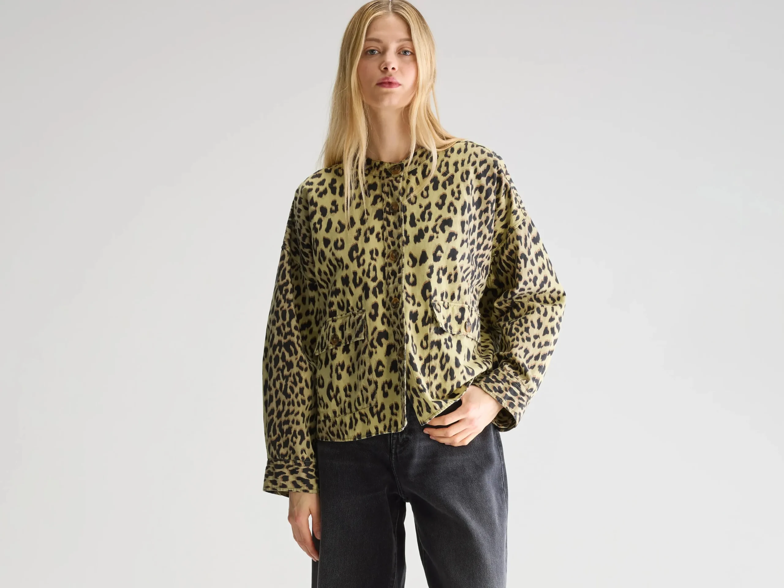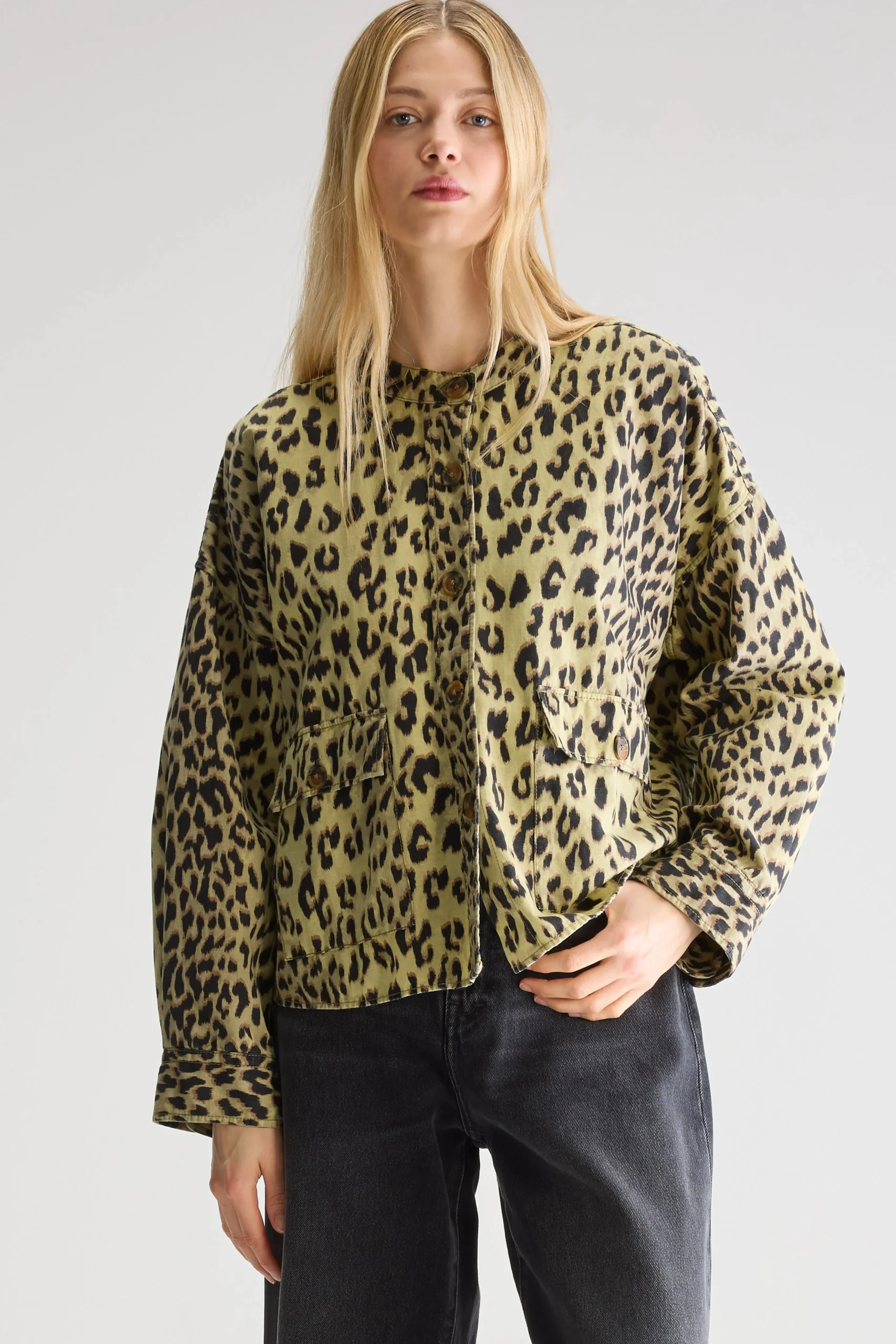 Oversized overhemd met luipaardprint, knoopsluiting aan de voorkant en zakken in utility-stijl.Oversized pasvorm : Kies