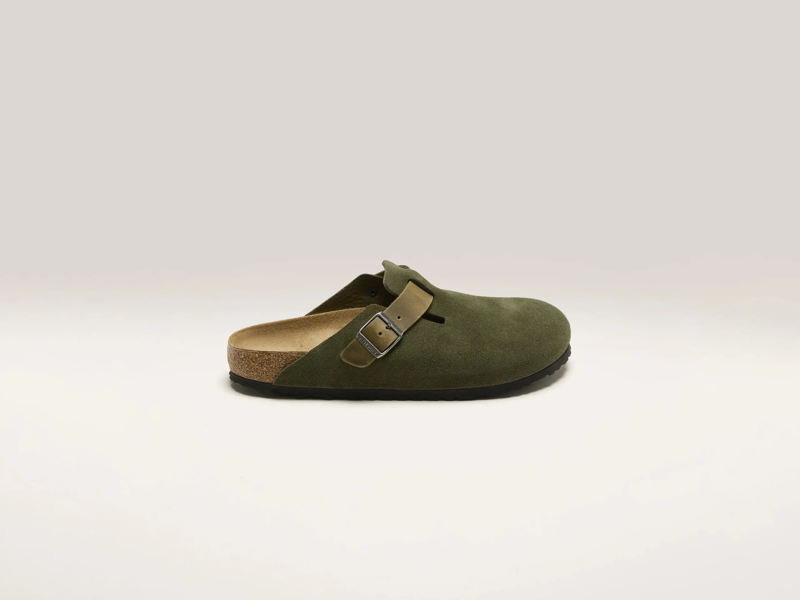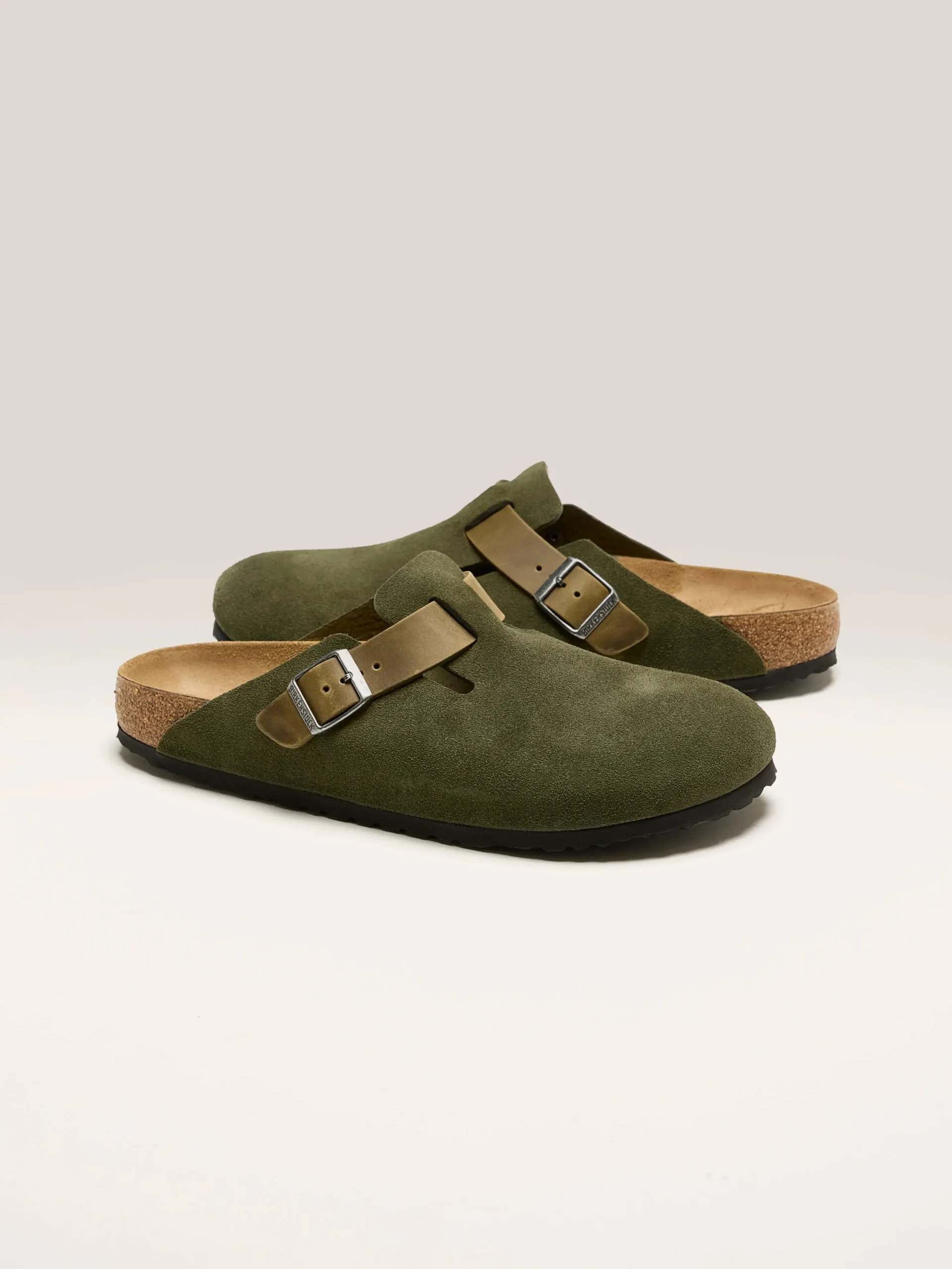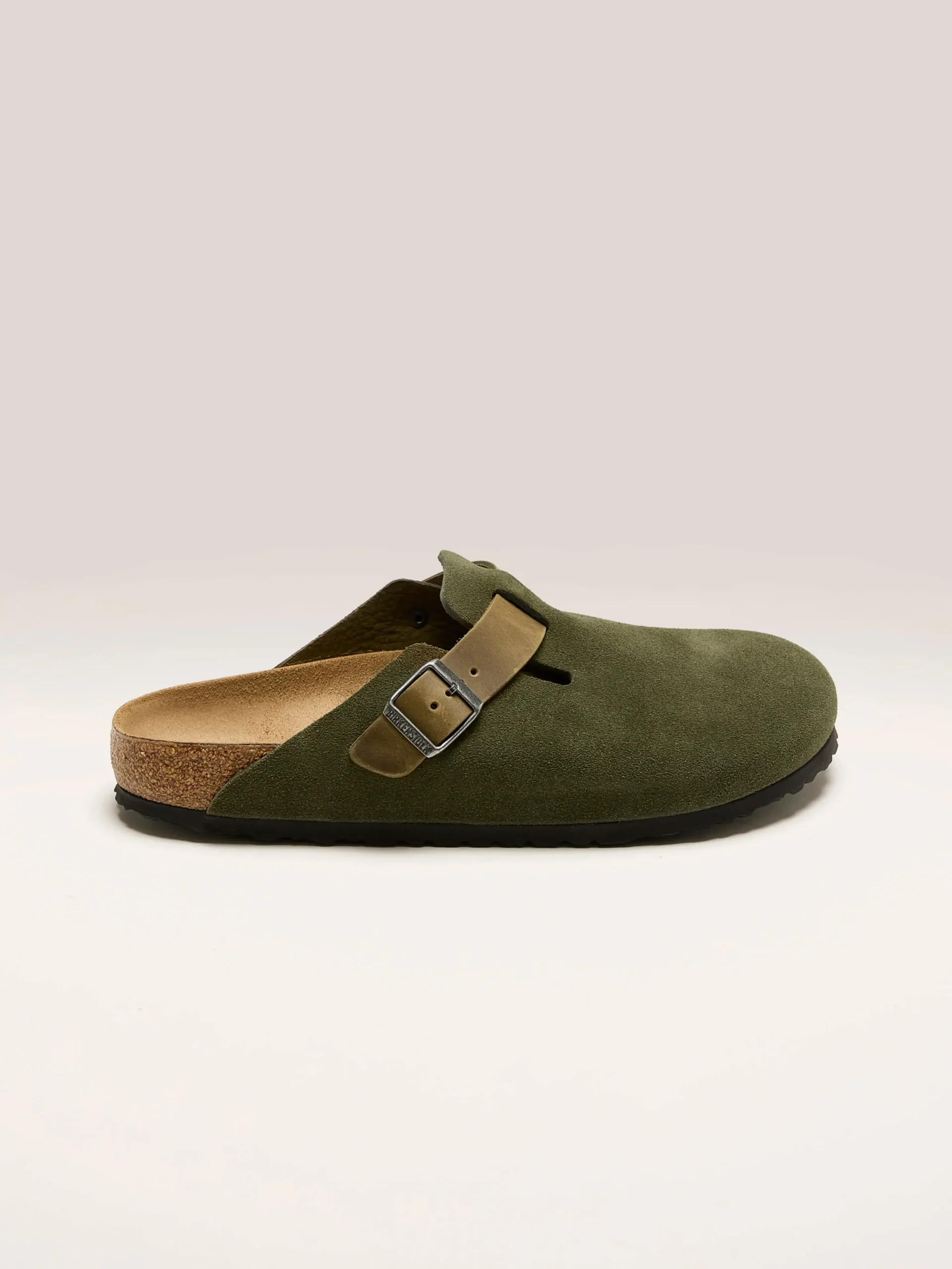 De Birkenstock Boston Gemengd Leder klompen hebben een zacht suède bovenwerk met een geolied lederen verstelbaar riempj…