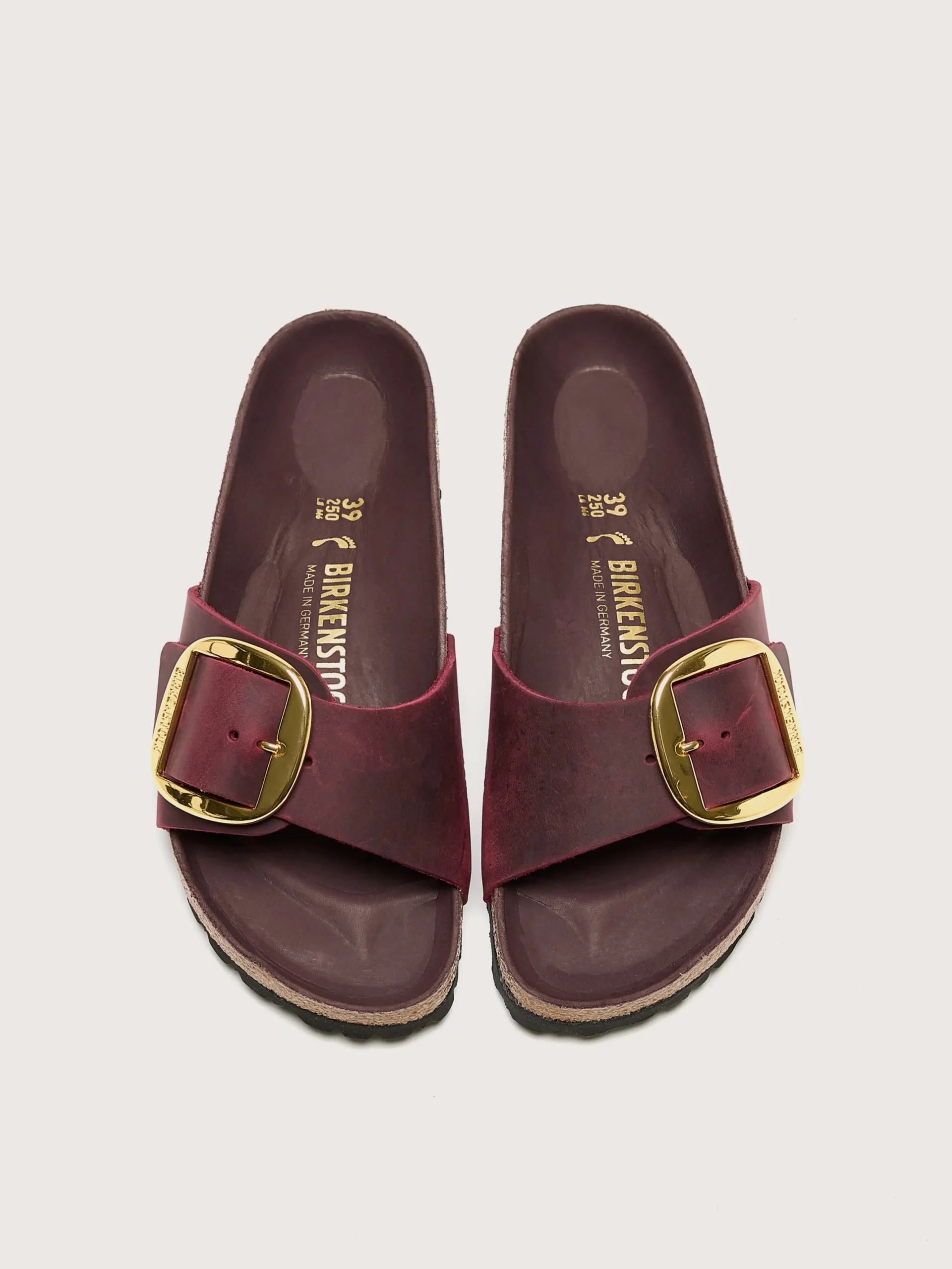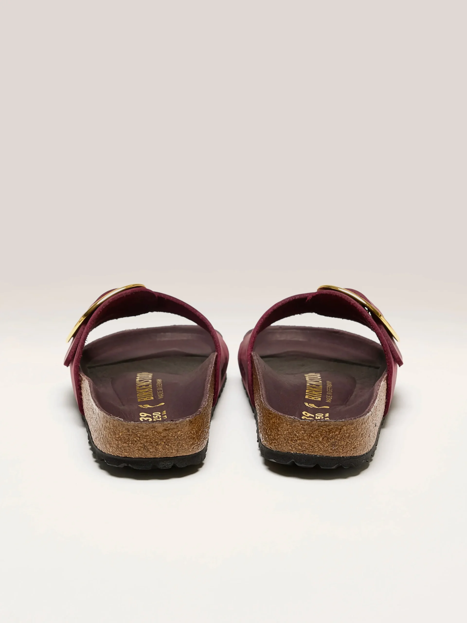 De Birkenstock Madrid Big Buckle sandalen hebben een grote metalen gesp, een zachte lederen voering en een dik bovenwerk van geolied nubuckleder met onafgewerkte randen. Stijl: 1028031Kleur: Zinfandel
