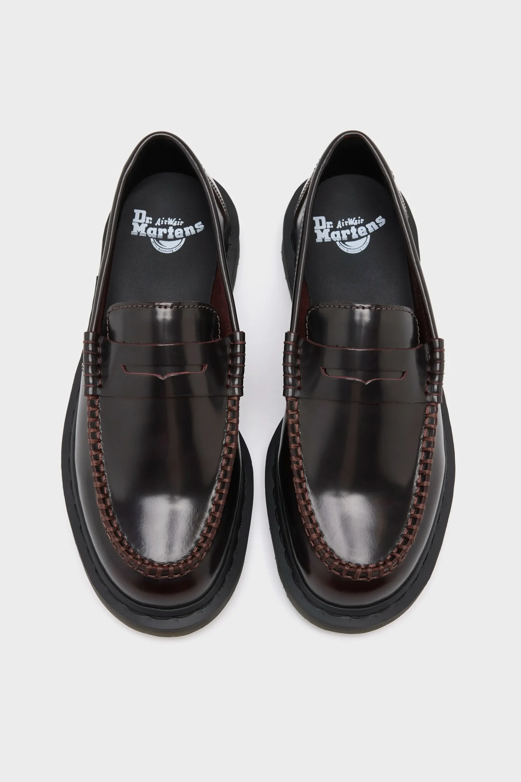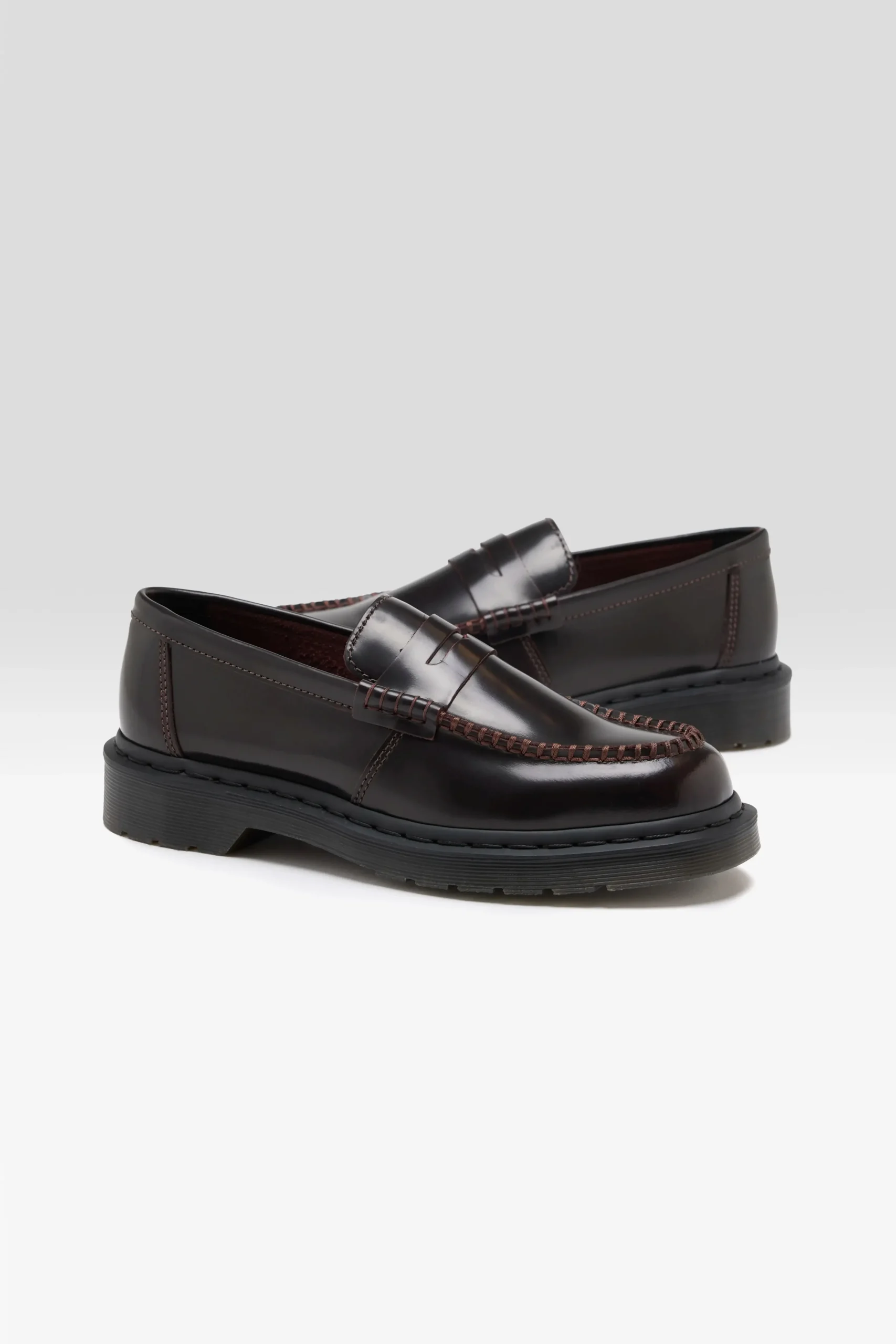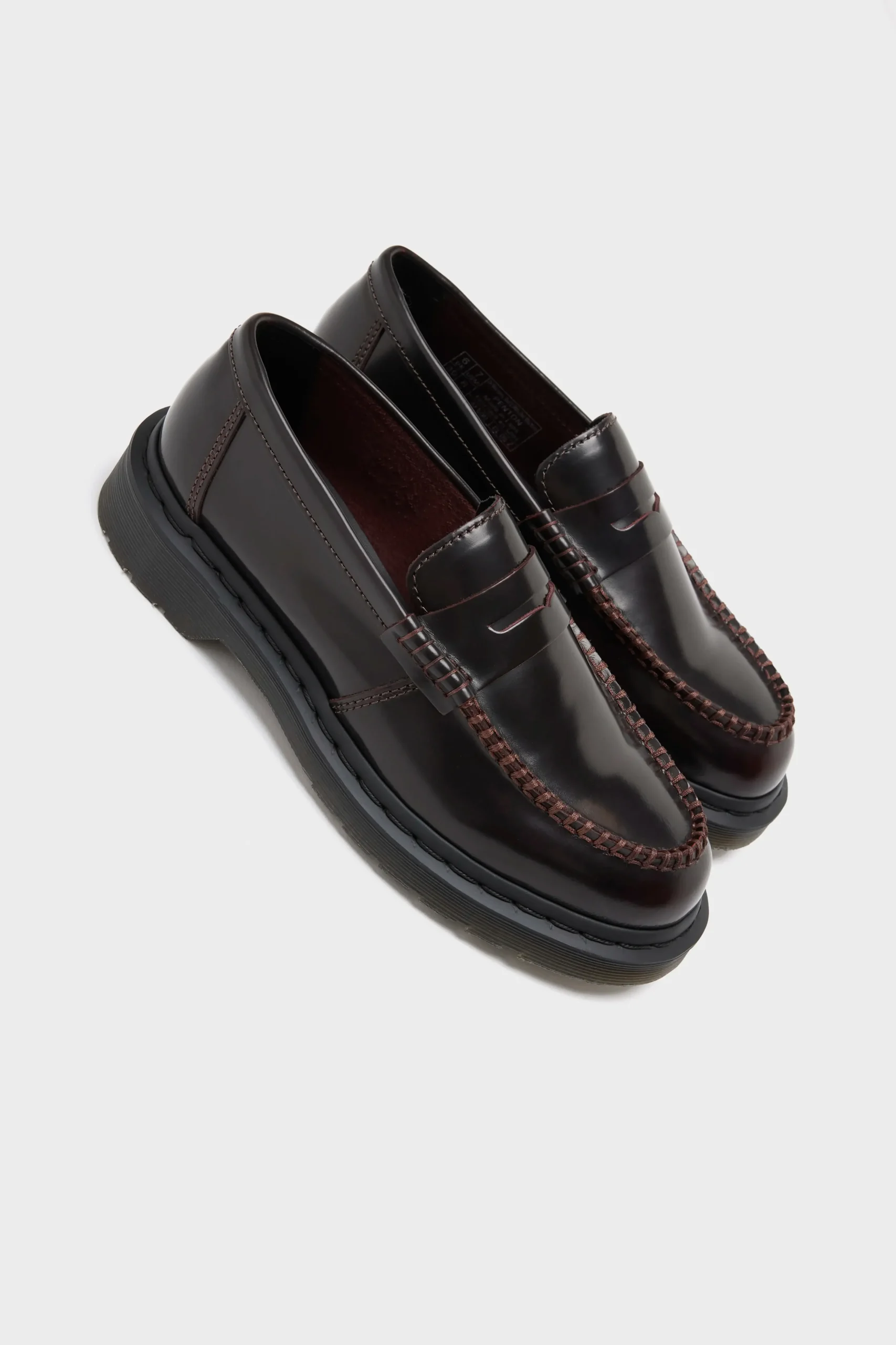 The Dr. Martens Penton Cherry Red Leather Loafers feature a high-shine leather upper with a base dye and contrasting top coat, revealing the underlying colour with wear.