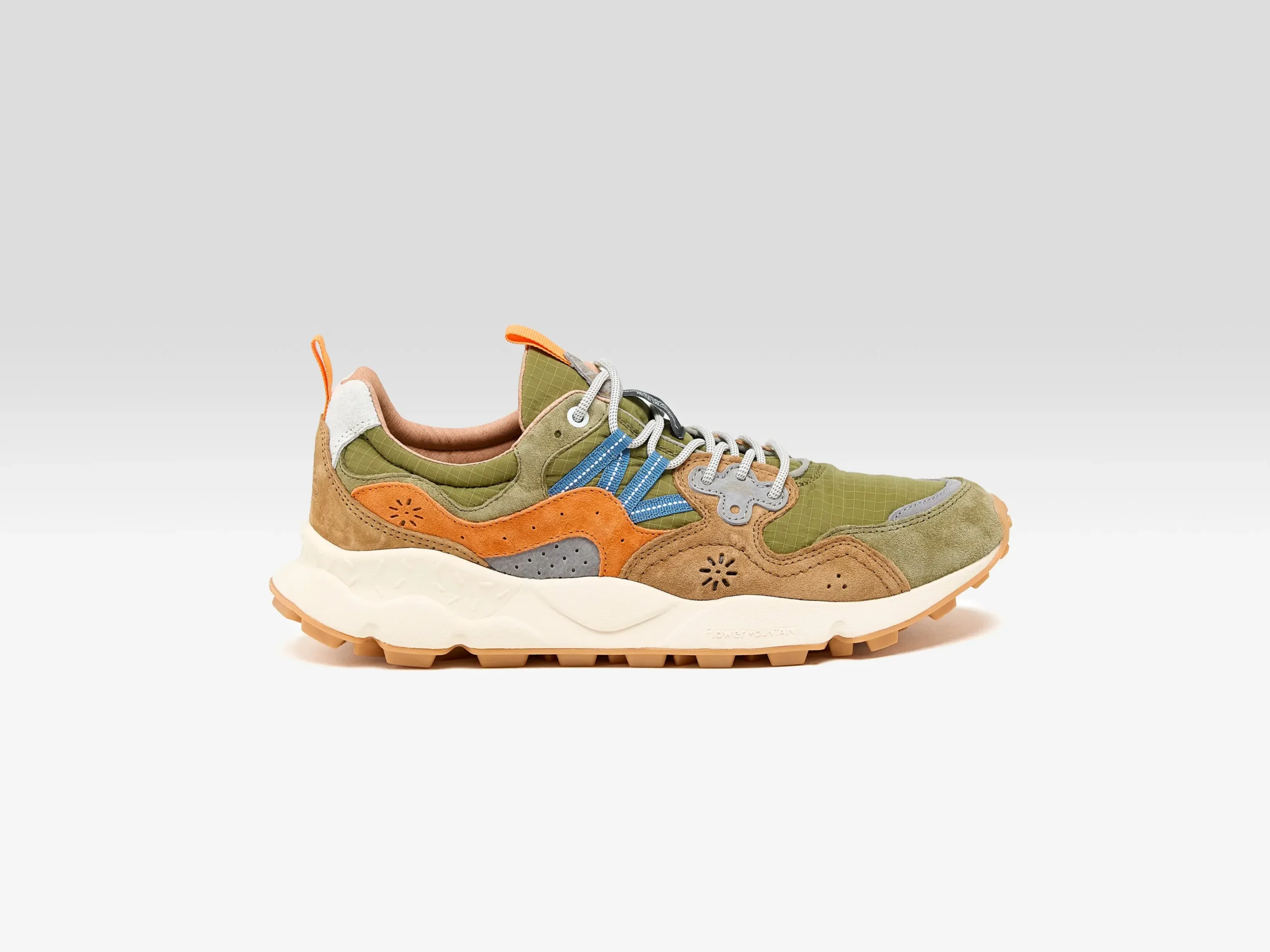 The Flower Mountain YAMANO 3 hiking shoe features a technical suede and mesh nylon ripstop upper, hiking laces, and an ultra-lightweight rubber sole.
