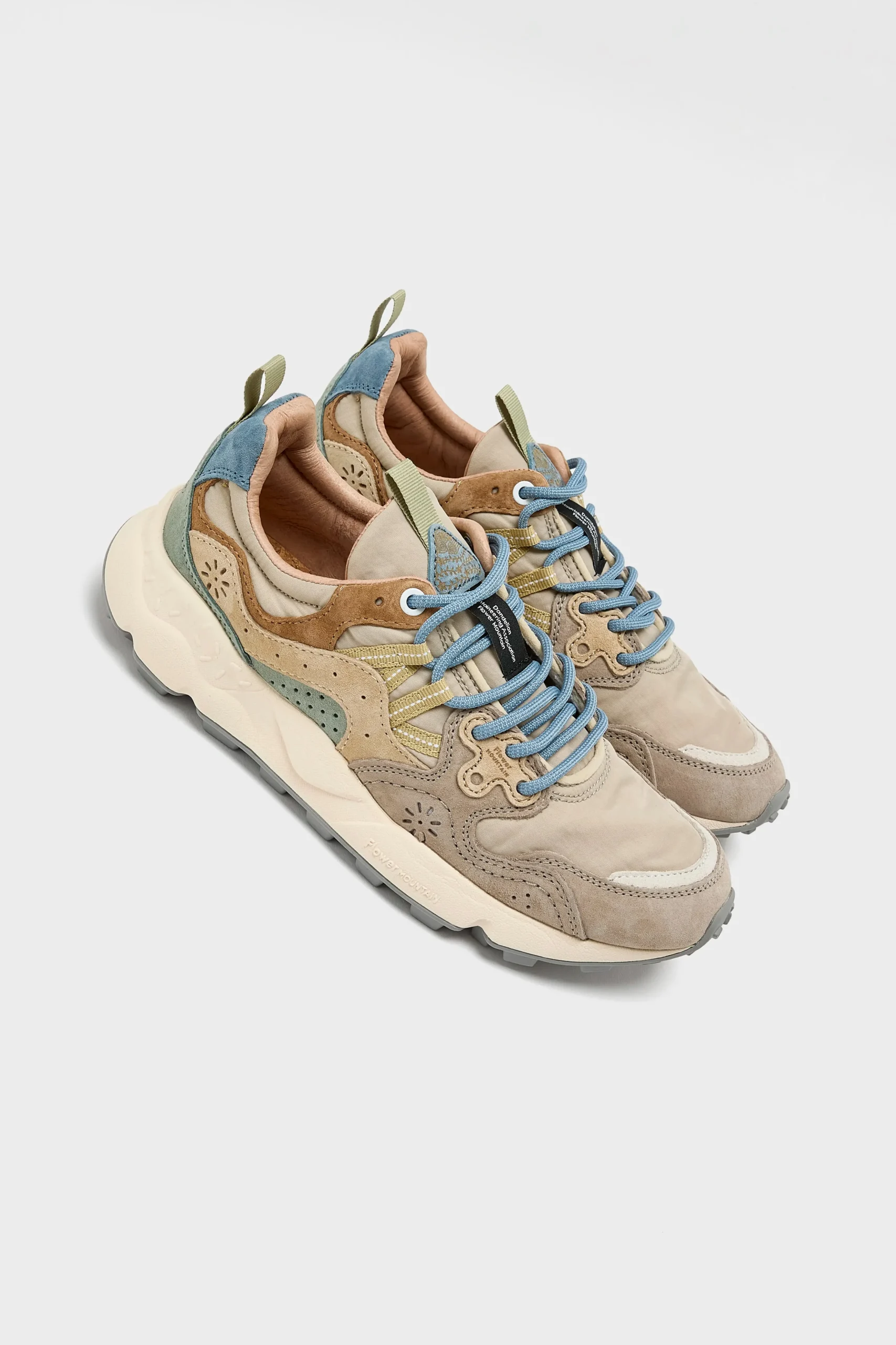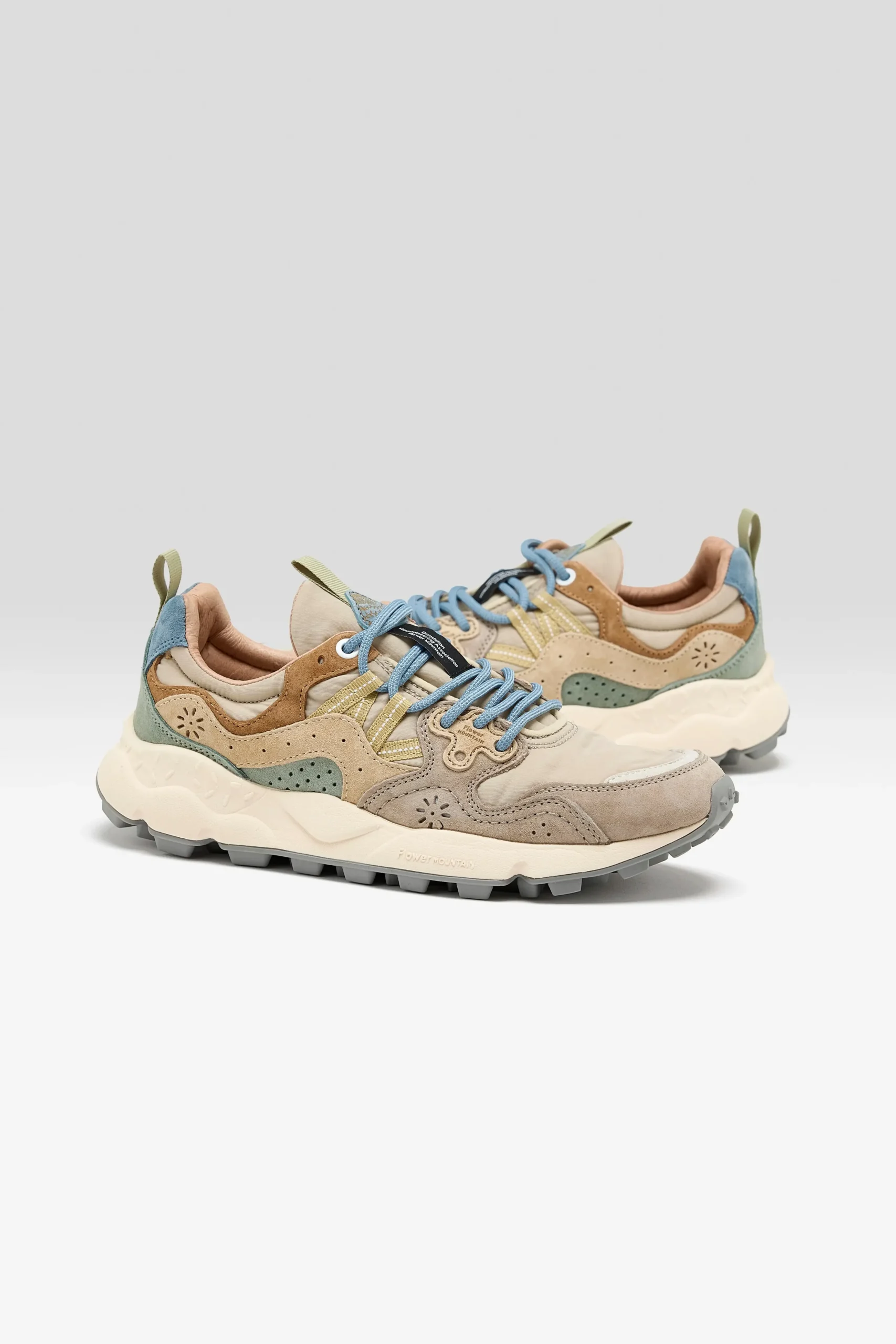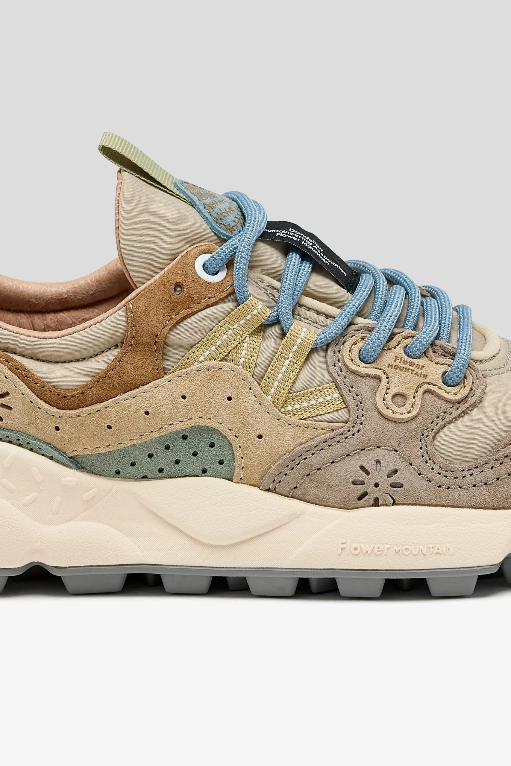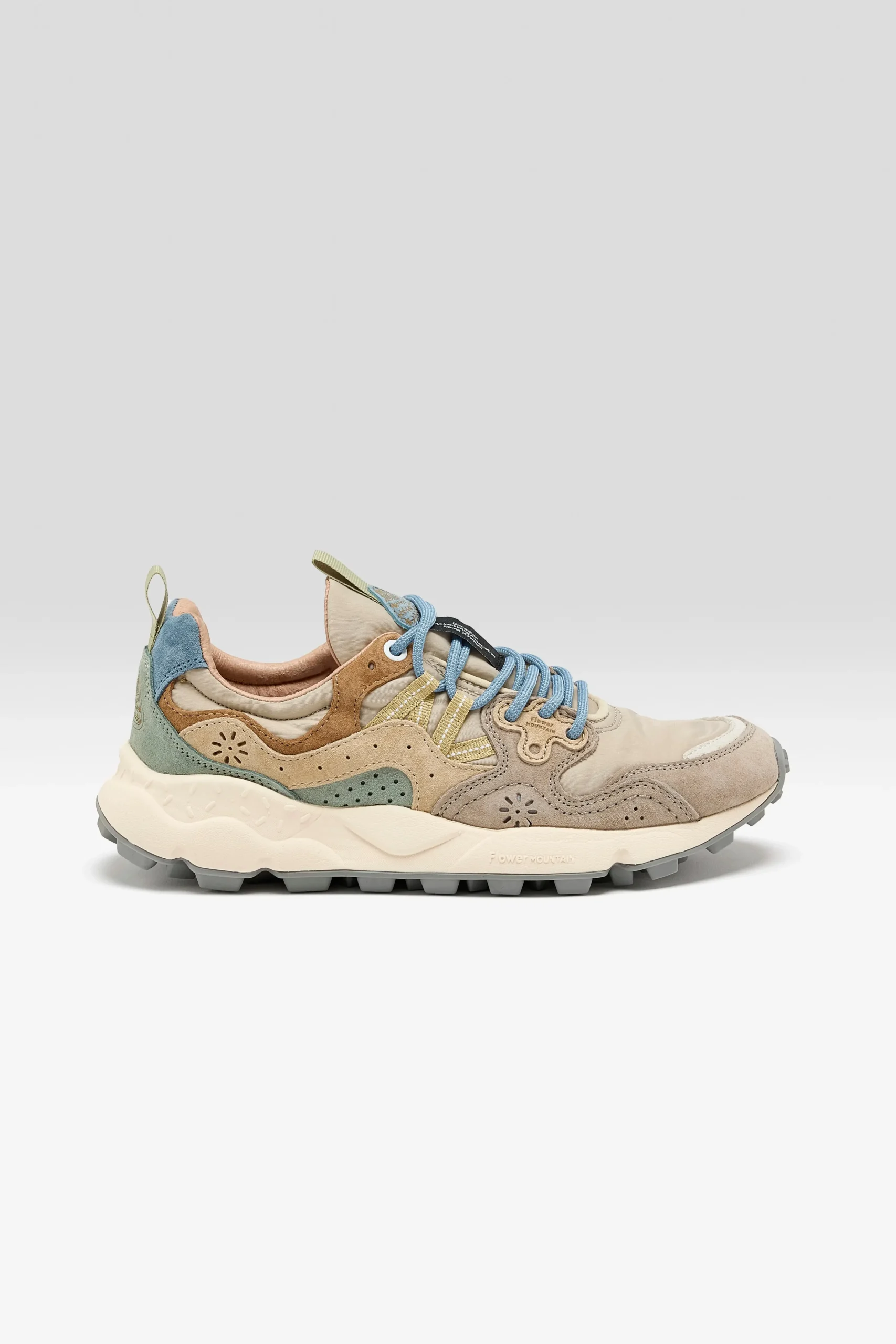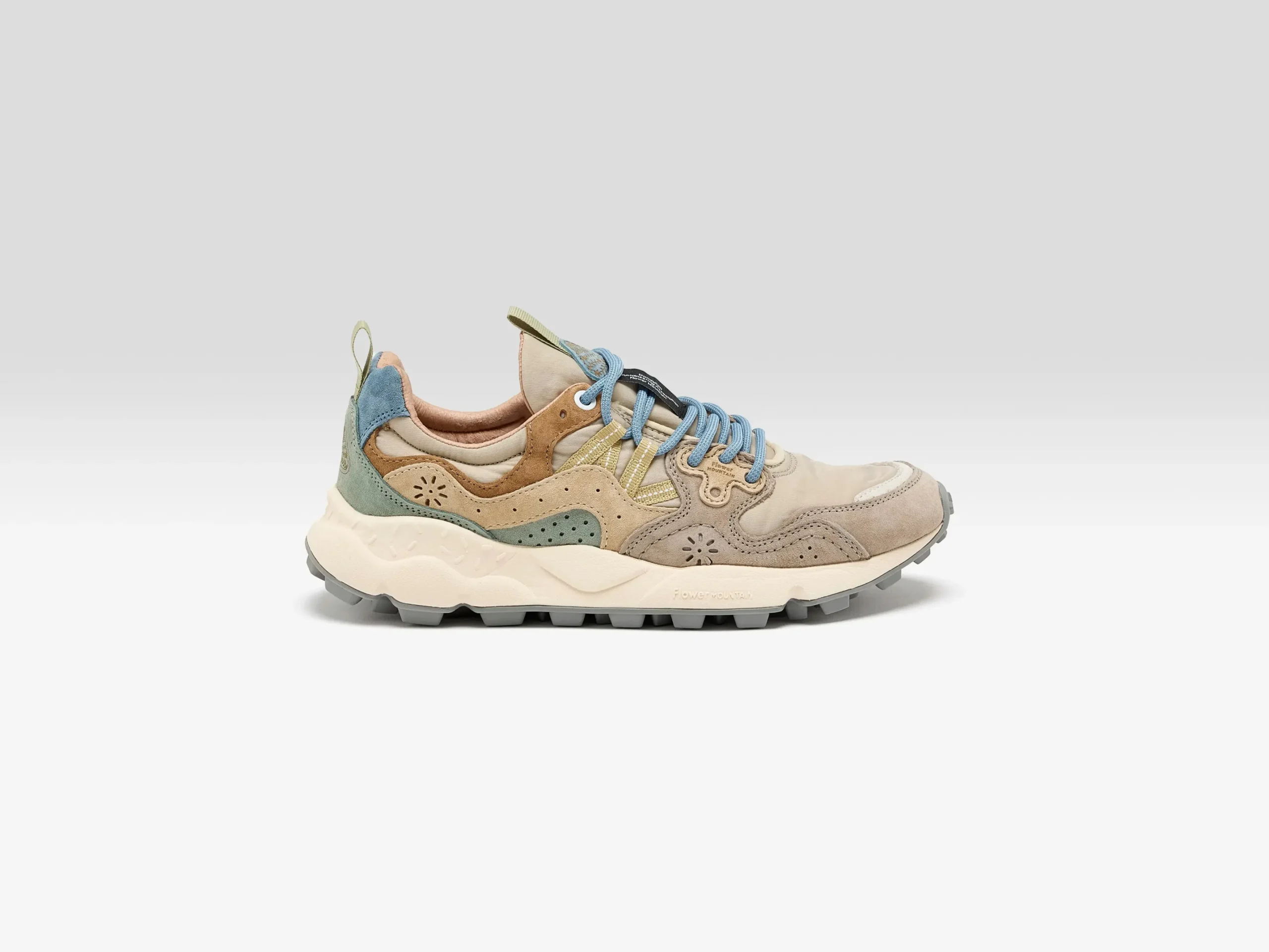 The Flower Mountain YAMANO 3 hiking shoe features a technical suede and nylon upper, hiking laces, and an ultra-lightweight rubber sole.