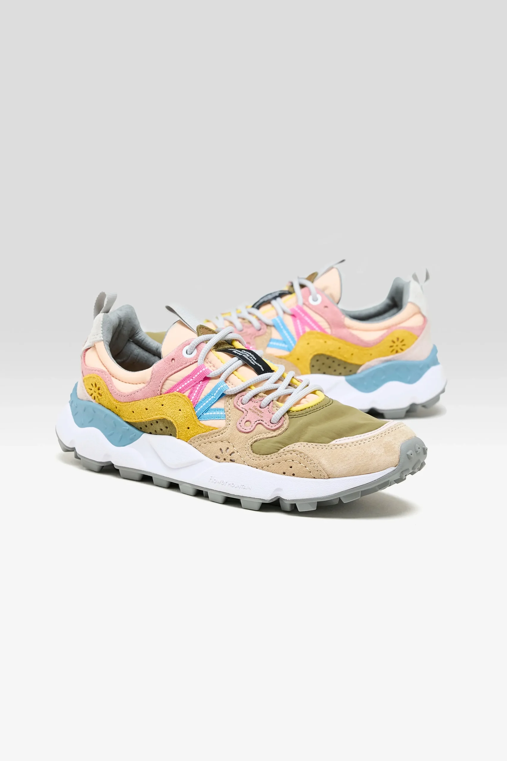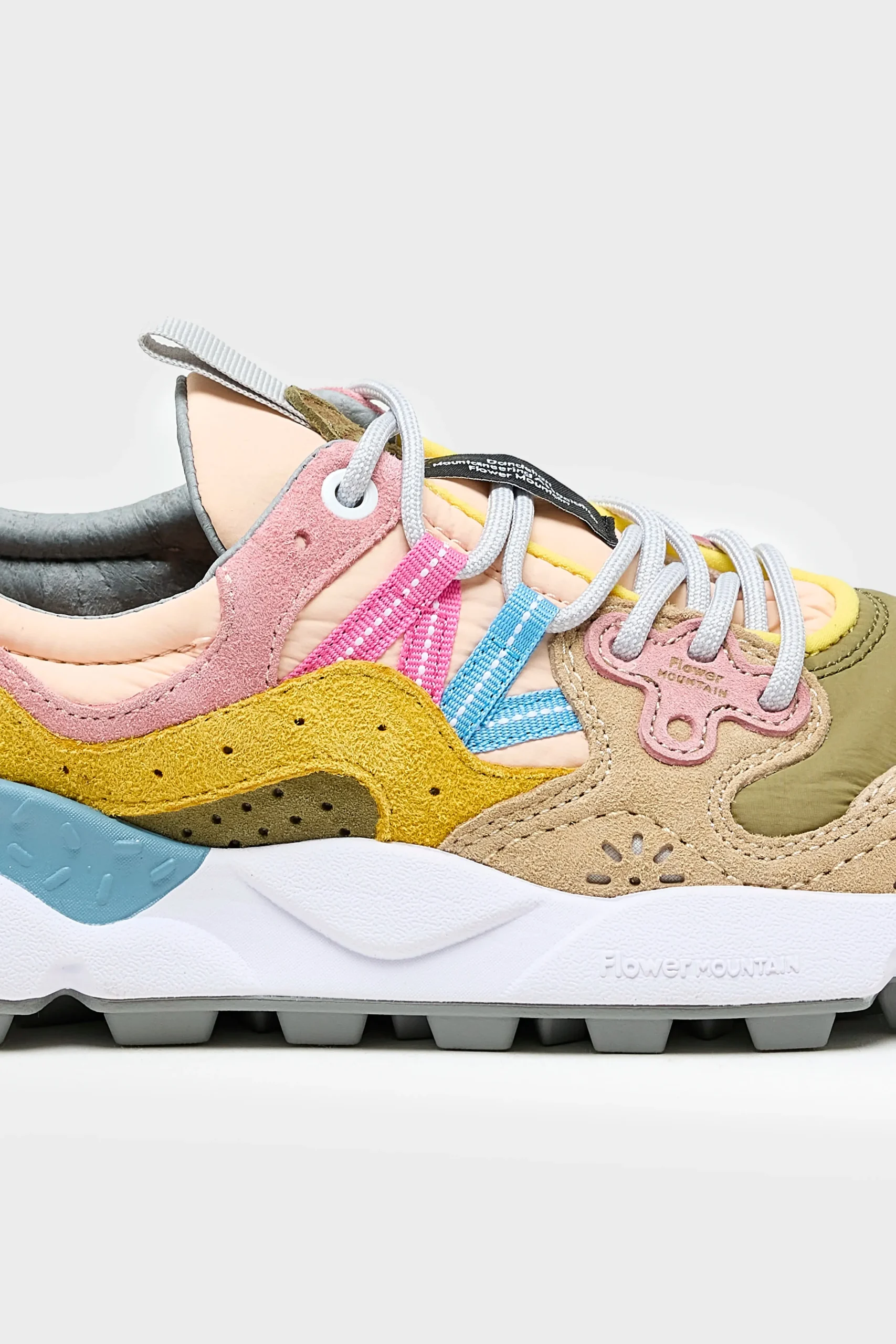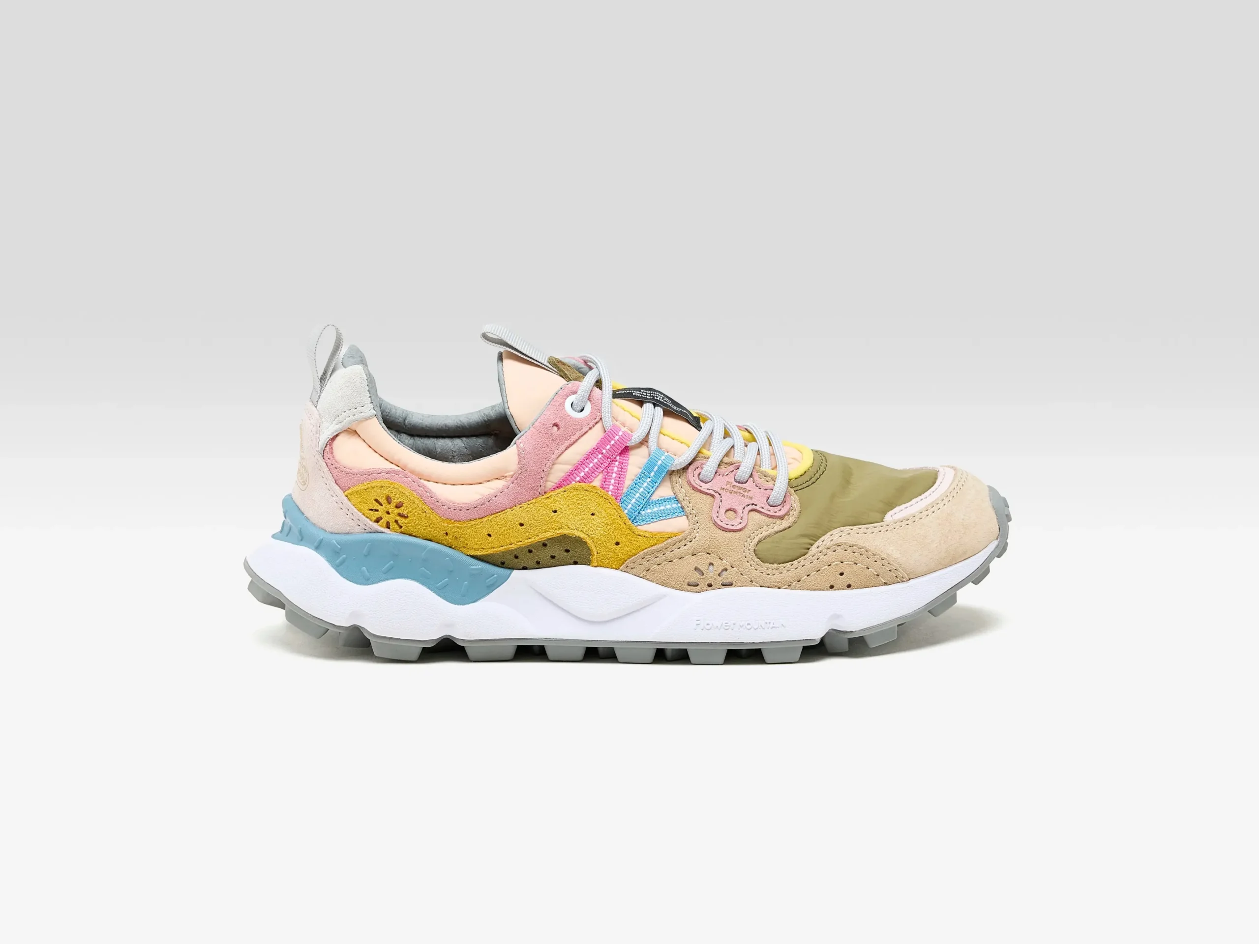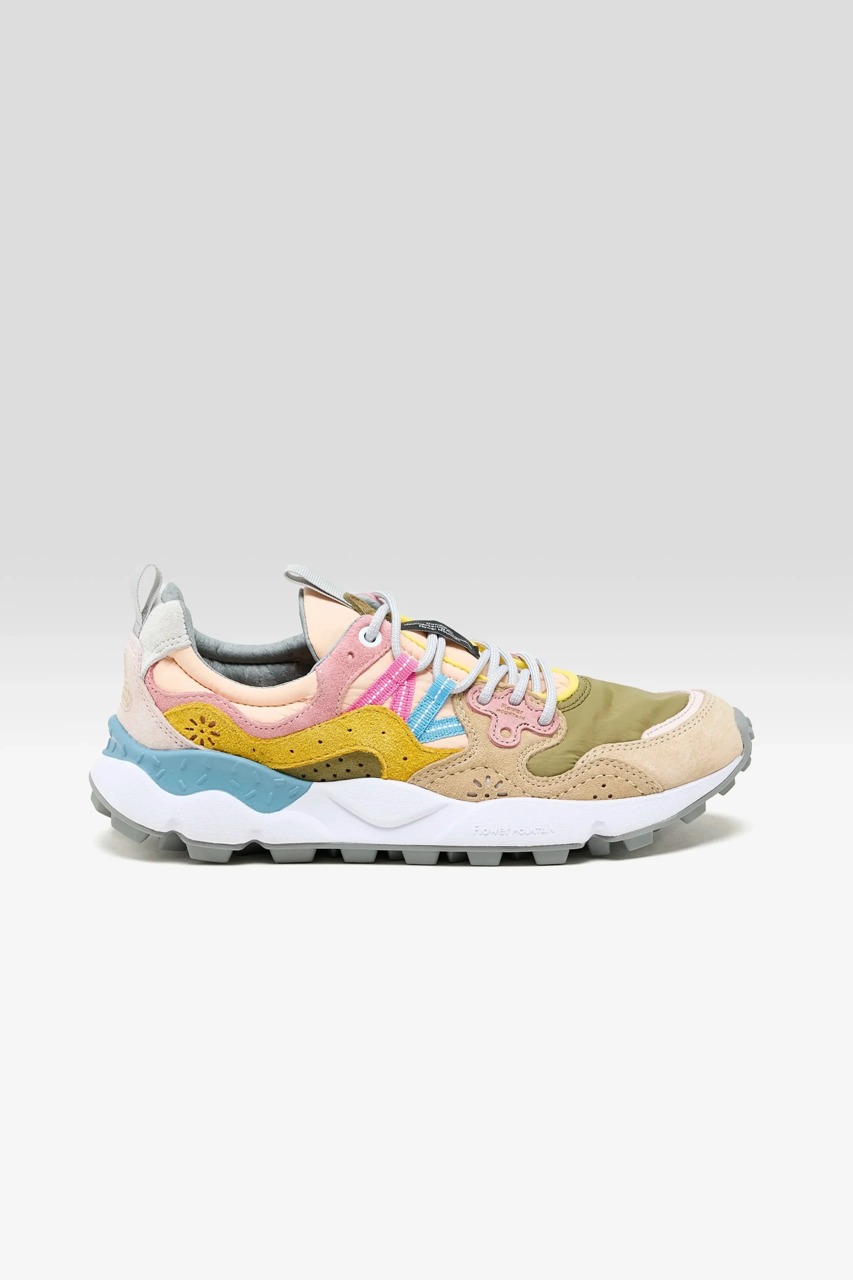 The Flower Mountain YAMANO 3 hiking shoe features a technical suede and mesh upper, hiking laces, and an ultra-lightweight rubber sole.