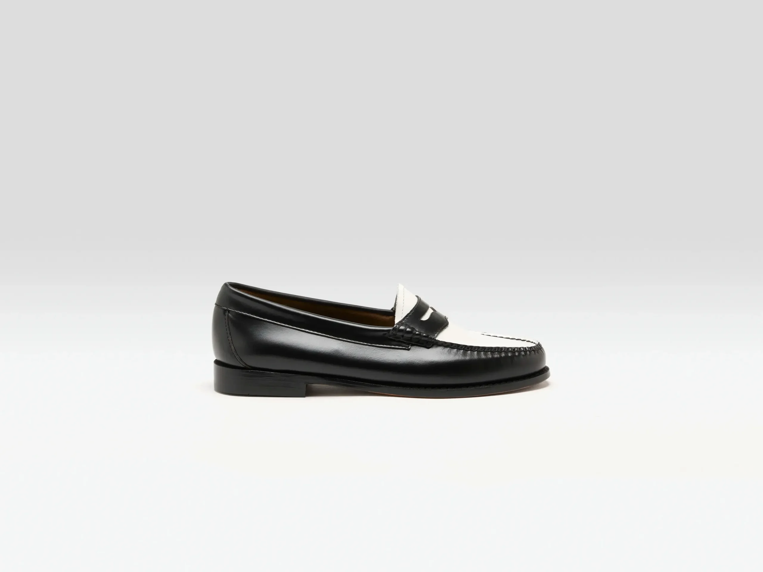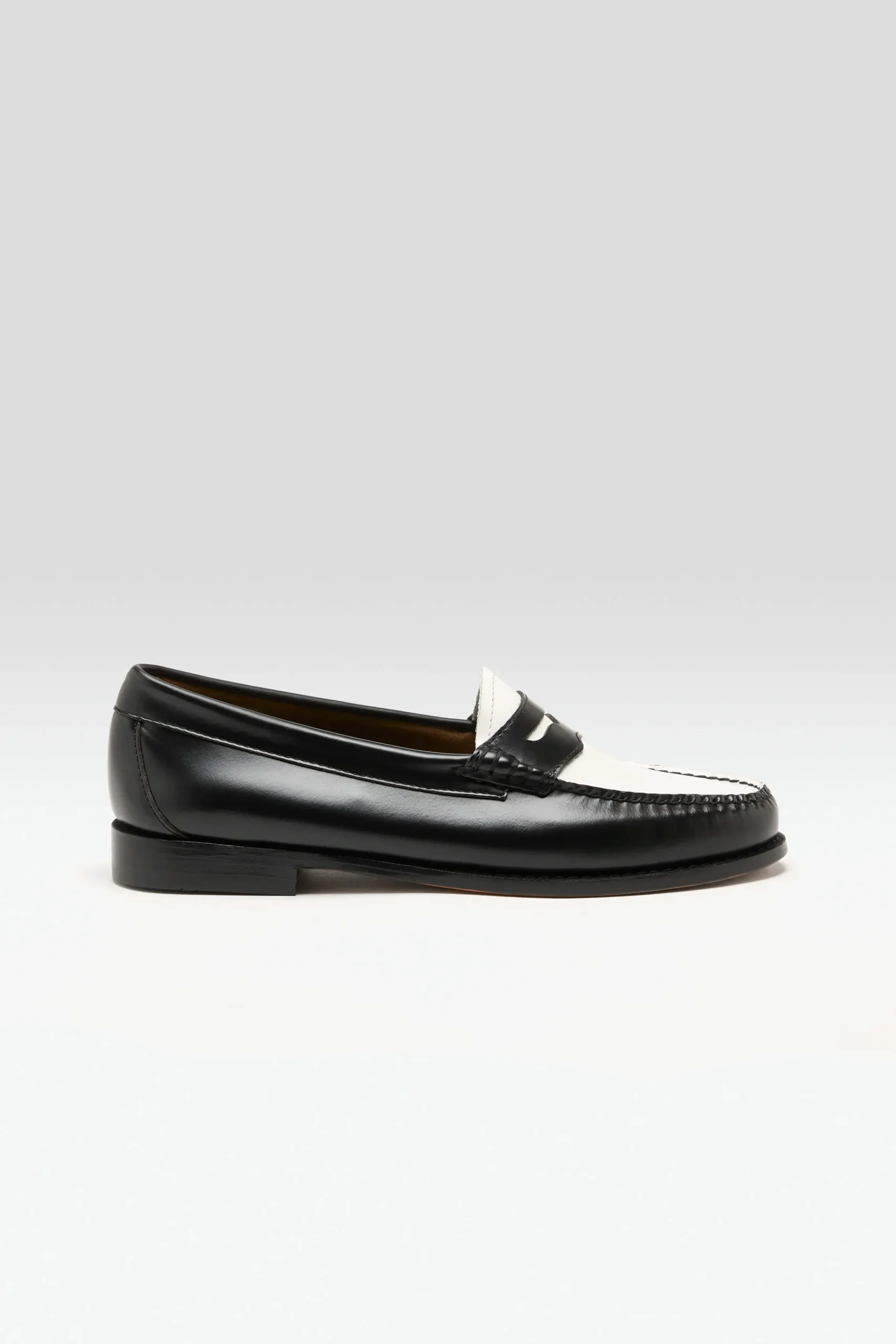 The G. H. Bass Weejuns Penny loafers feature a polished black and white leather upper with hand-stitched seams in tonal …