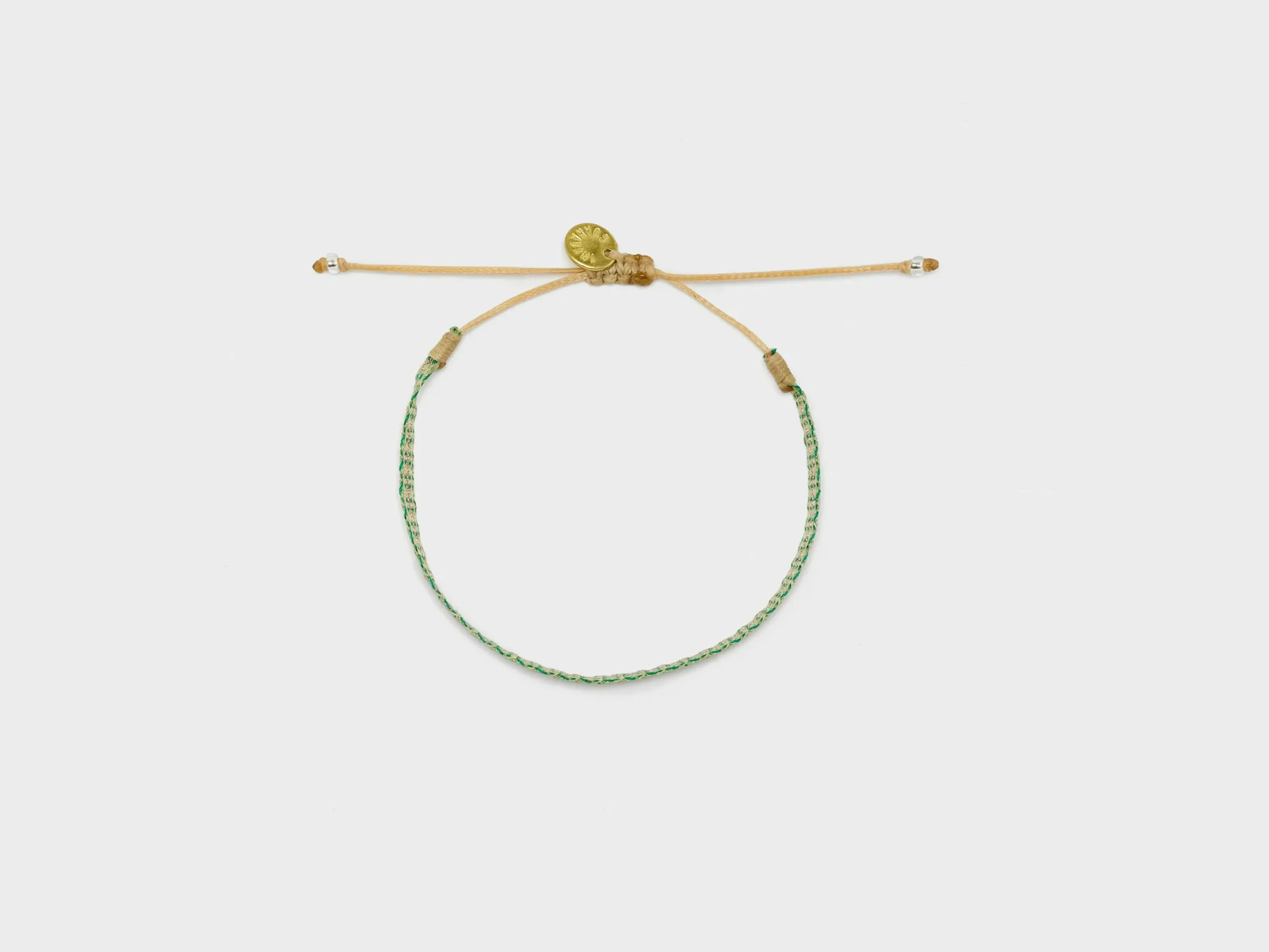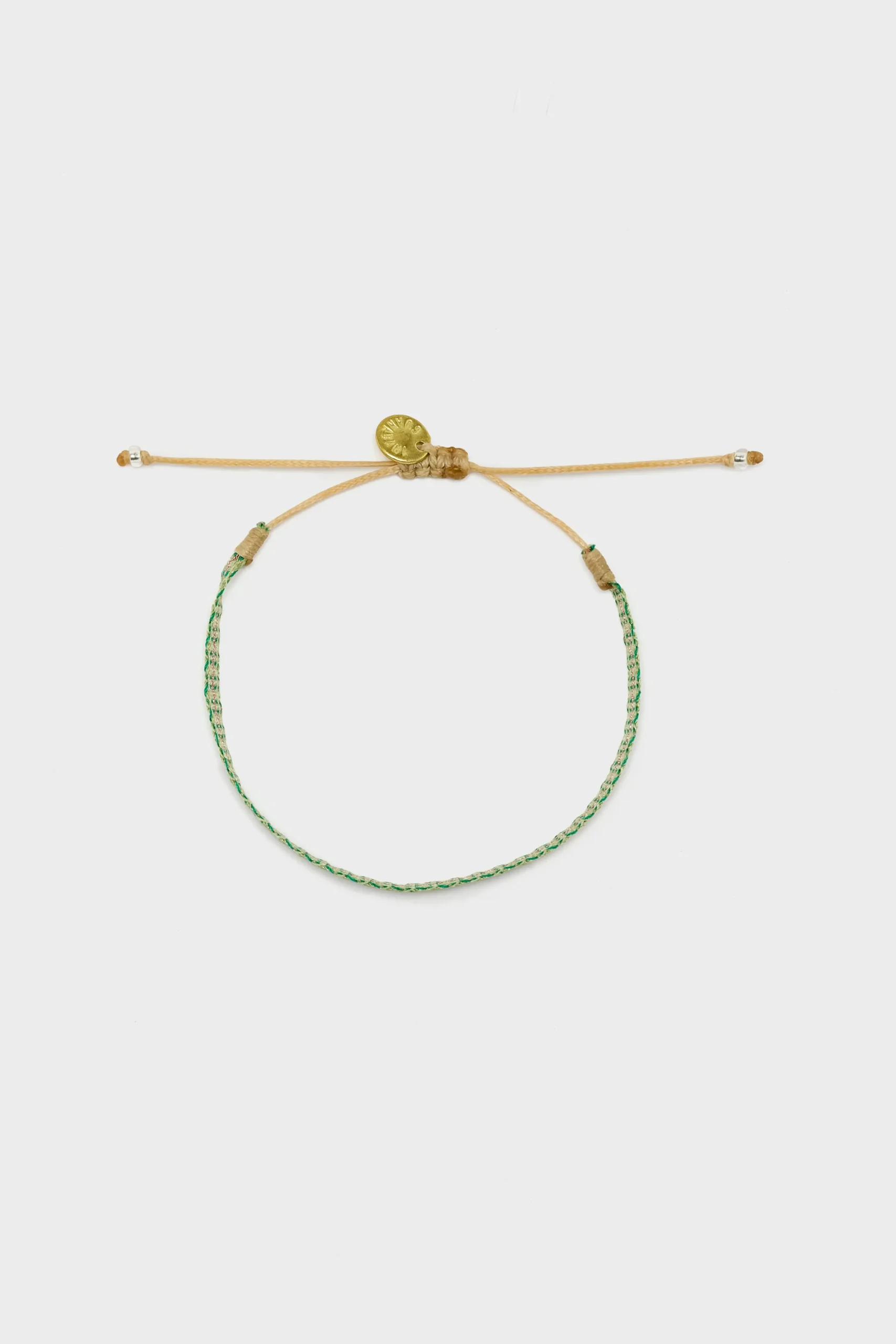 The handwoven Guanabana Argantina 40 Bracelet is an intricate weave of 40 acrylic threads with an adjustable opening.