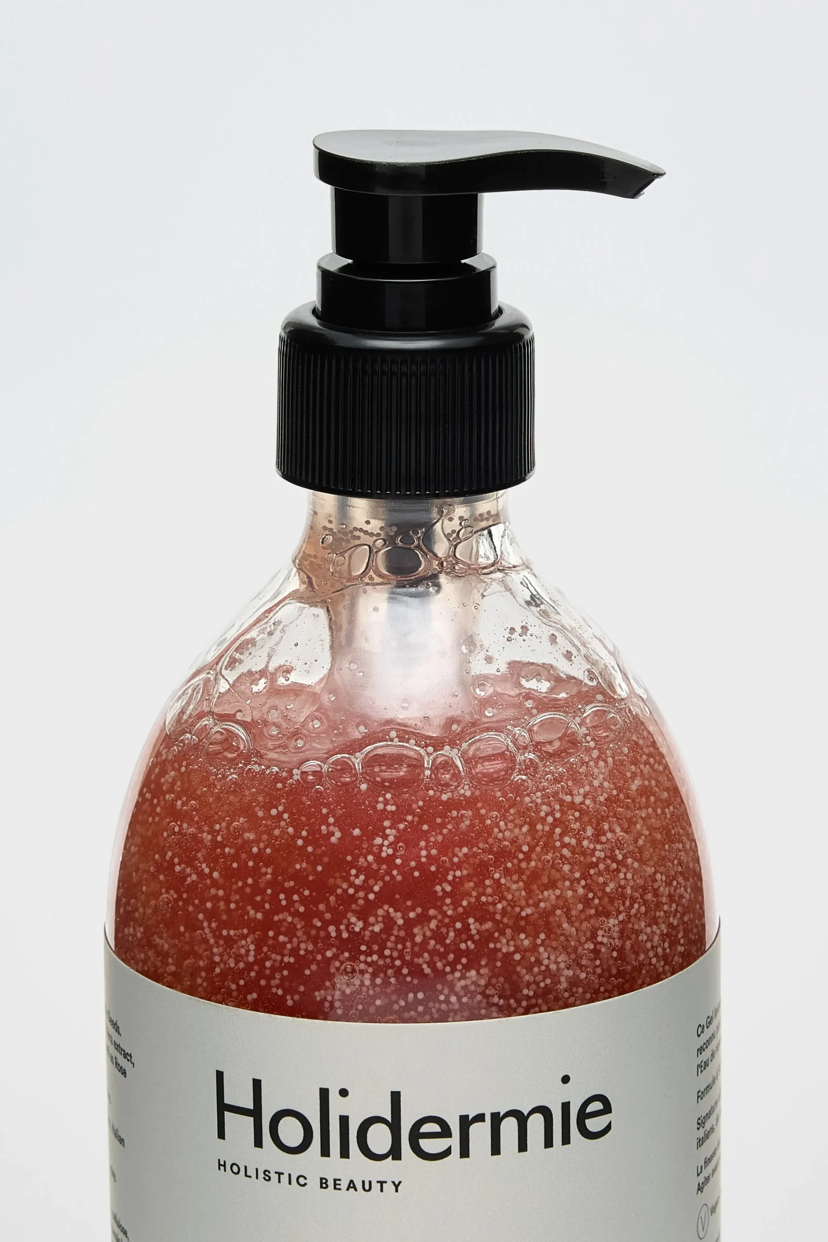 The Holidermie Exfoliating handwash gel gently cleanses and exfoliates with Aloe Vera extract for hydration and Rosewater to soothe and refresh your skin. Primary ingredients: Aloe vera, Rosewater, and cellulose grainsScent: Holidermie’s signature fragrance of magnolia, Bulgarian rose, and Italian lemons on a woody-amber background. Application: Wet your hands, then dispense one gel pump into your palms. Massage for at least 15 seconds to gently cleanse and exfoliate your hands before rinsing with warm water.It can be used several times a day.Shake before use if necessary. Avoid contact with the eyes.External use onlyStore in a cool environment away from light.Use within three months after openingMaterials: Glass bottle with pump