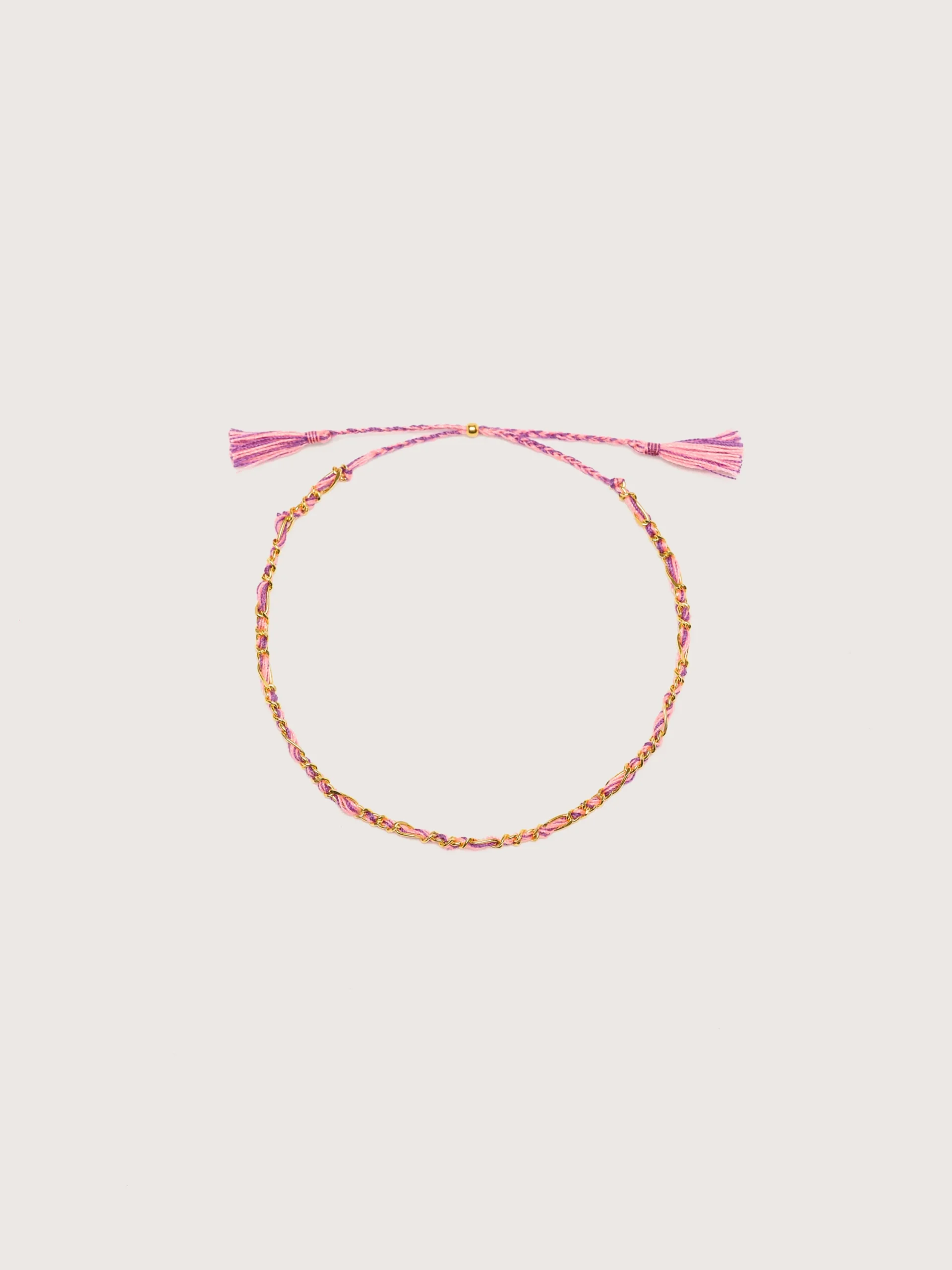 De Borderline verstelbare armband is handgemaakte met gevlochten zilver en koord. Verstelbare lengte: 22 cmStijl: Borderline ArmbandKleur: Roze