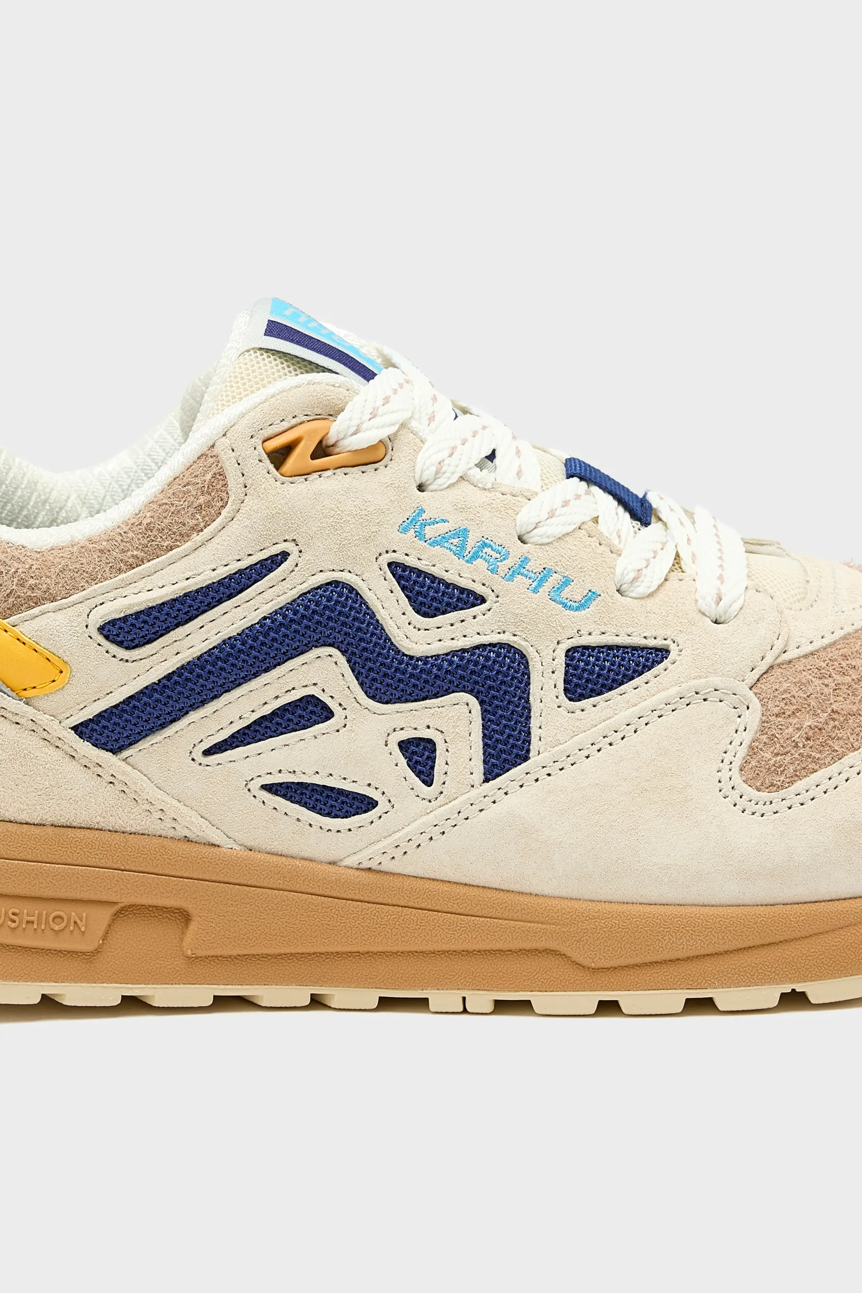 The Karhu Legacy 96 sneakers feature suede overlays, hairy suede underlays, and mesh panels.