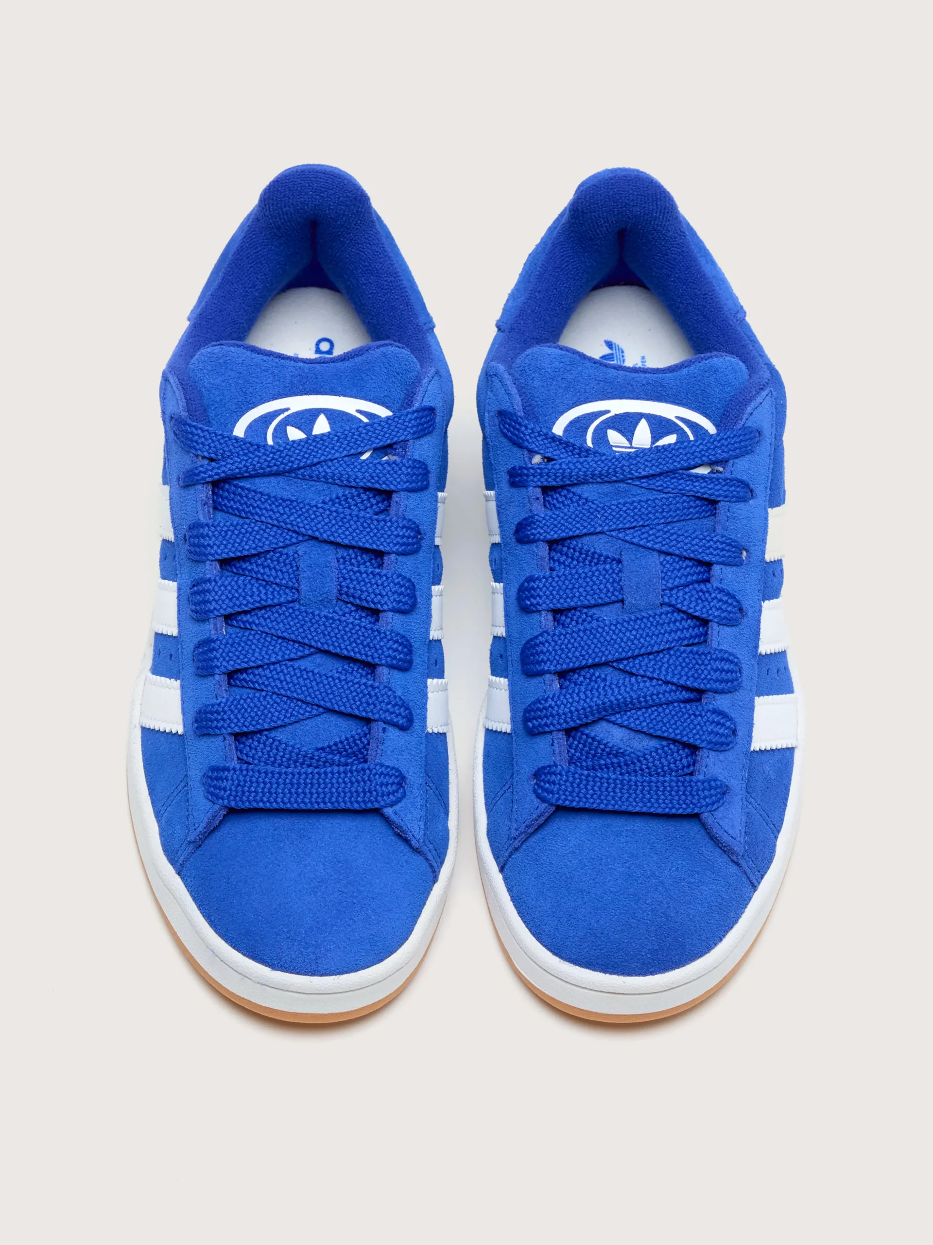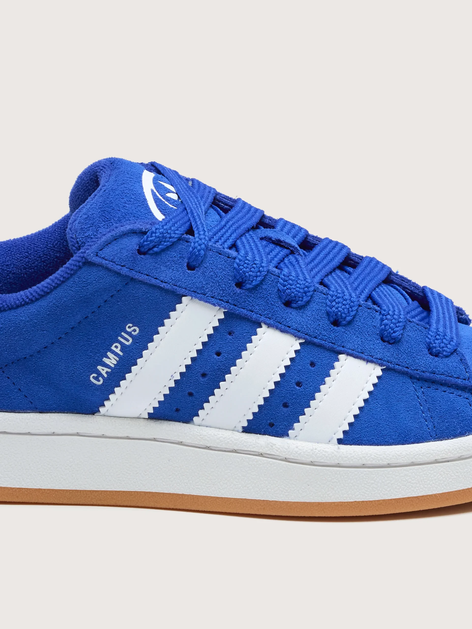 De Y2K-geïnspireerde Junior Adidas Campus 00S sneakers hebben een gestroomlijnde vorm met lederen bovenwerk en een rubb…