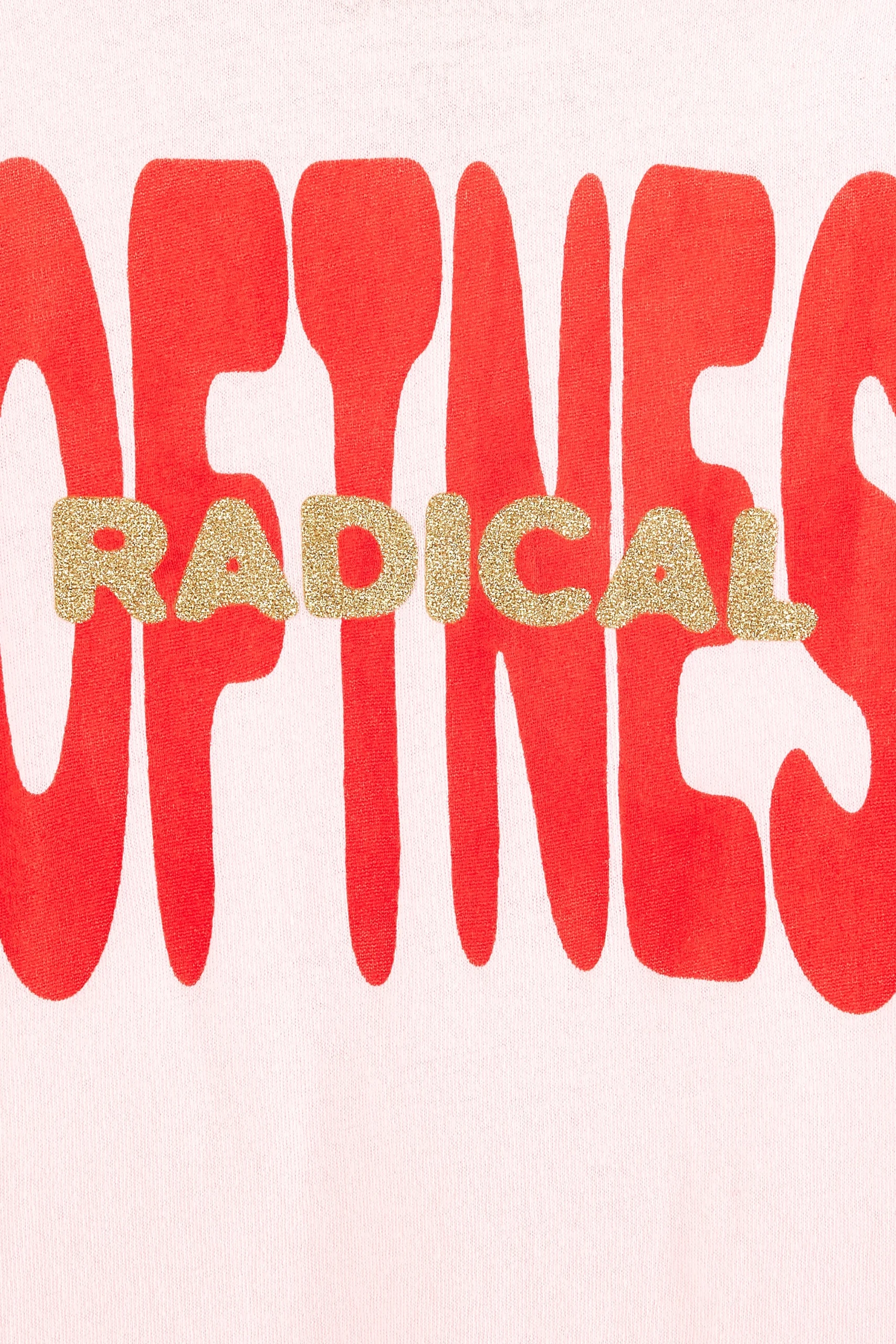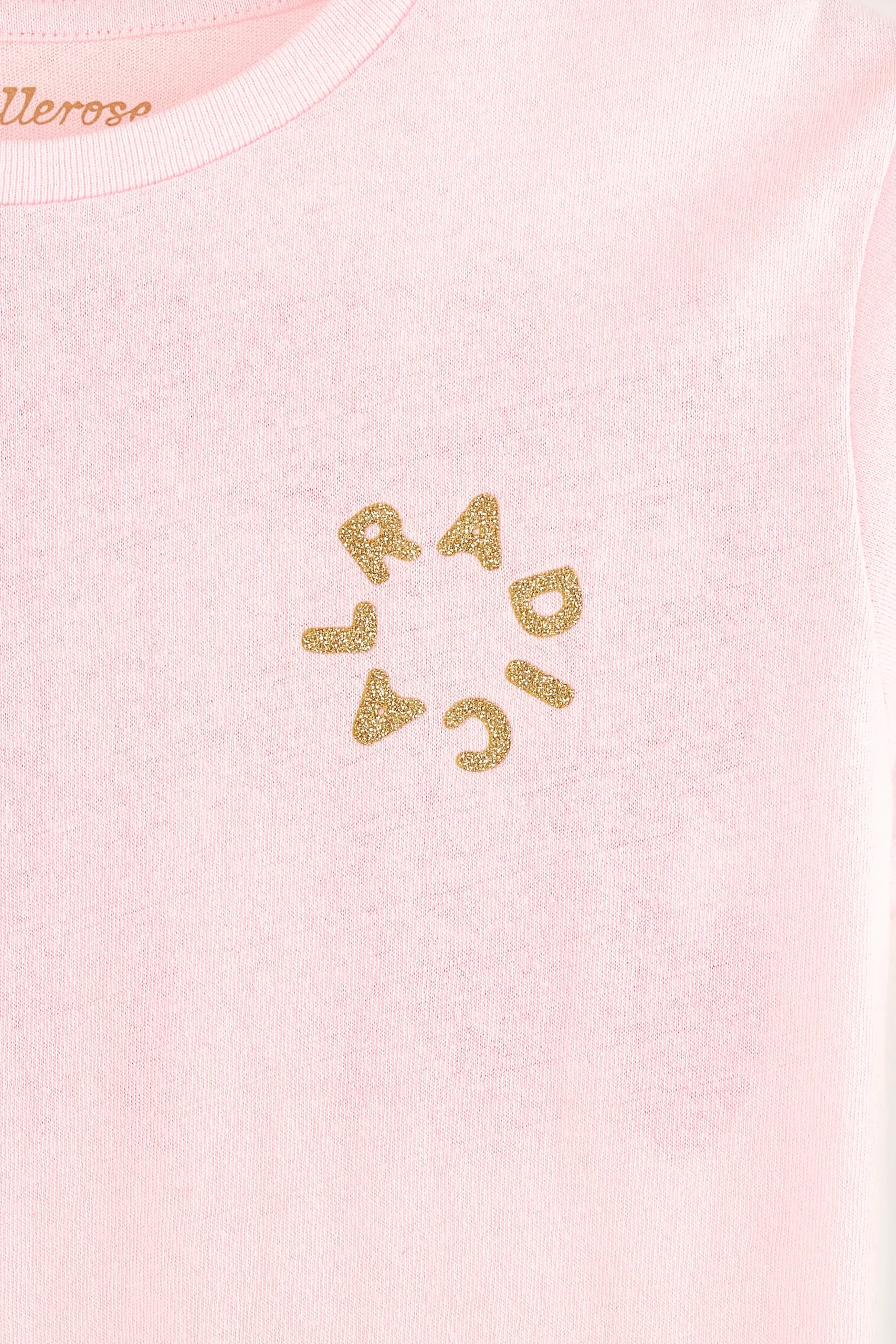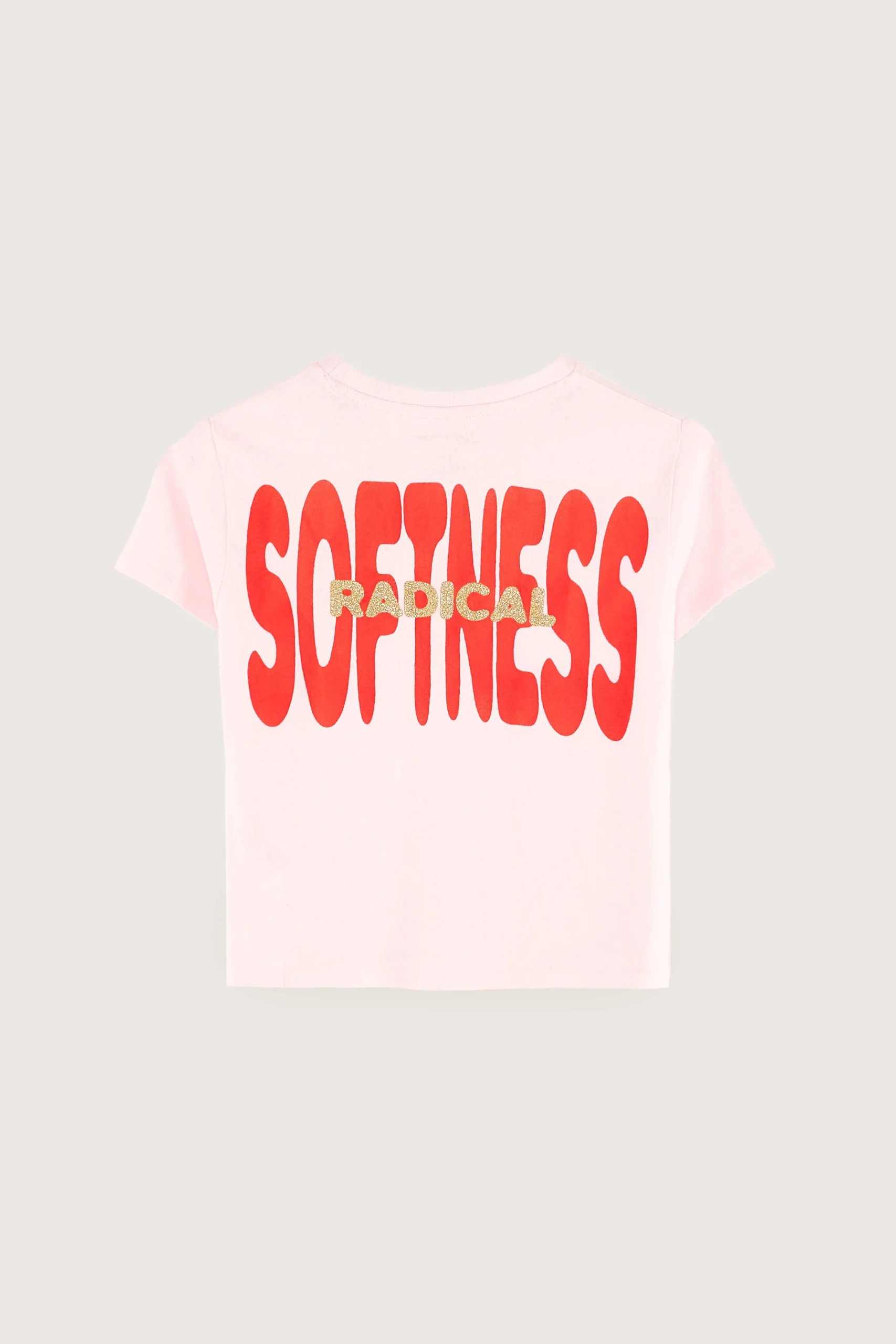 Klassiek T-shirt met korte mouwen en geribde ronde hals, gemaakt van donkerrood, halfzwaar katoenjersey met opdruk “Radical softness” op de achterkant.Klassieke pasvorm Ronde halsKorte mouwen CroppedHalfzwaar katoenjersey Opdruk op de achterkant