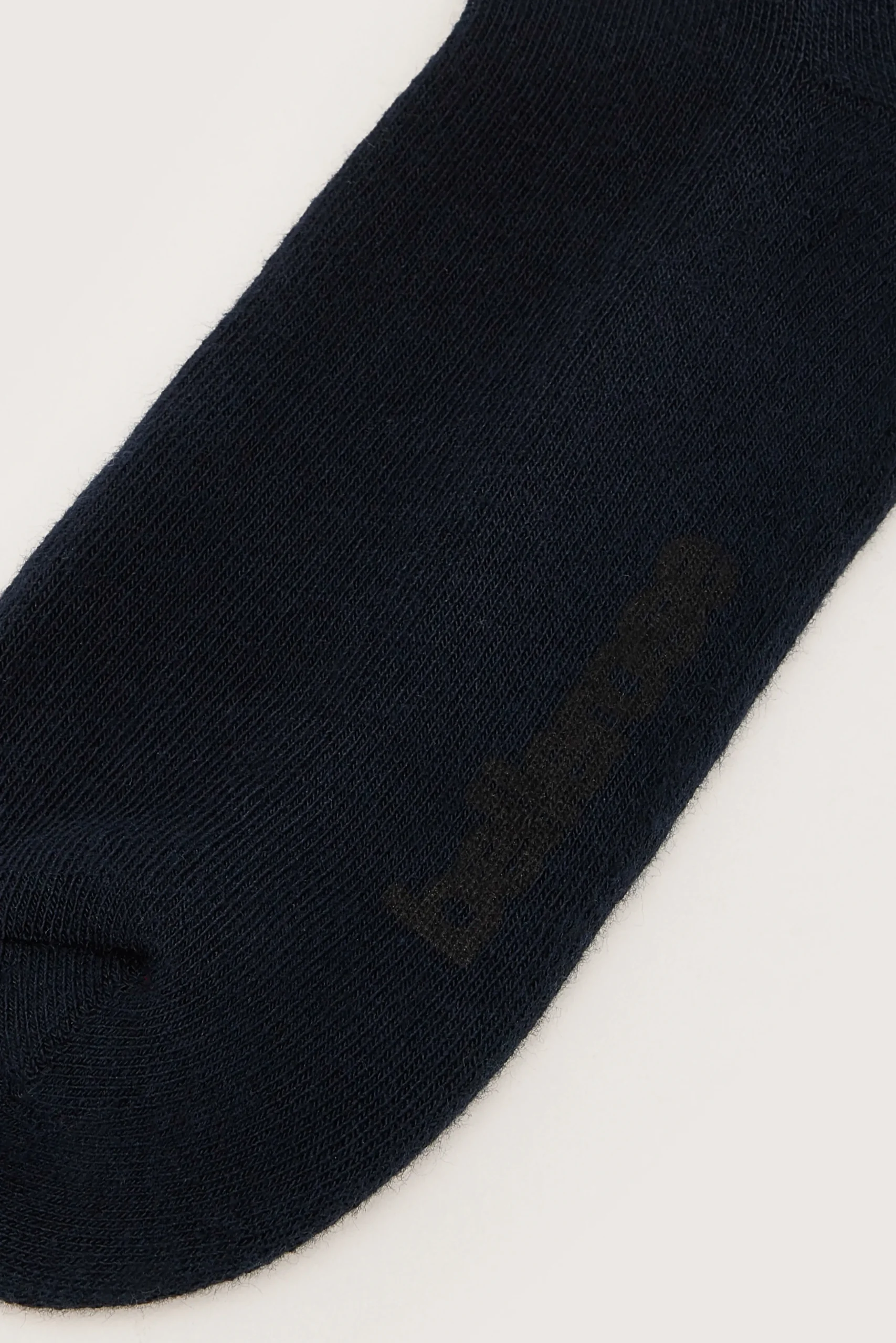 Halfhoge sokken met geribde bovenkant, Bellerose-opdruk op de zool en oranje Stay Cool op de enkel, gemaakt van zacht, marineblauw katoen.HalfhoogGeribde bovenkant Bellerose-opdruk op de zool Onderkant in sponsbreiselStay Cool op de enkels