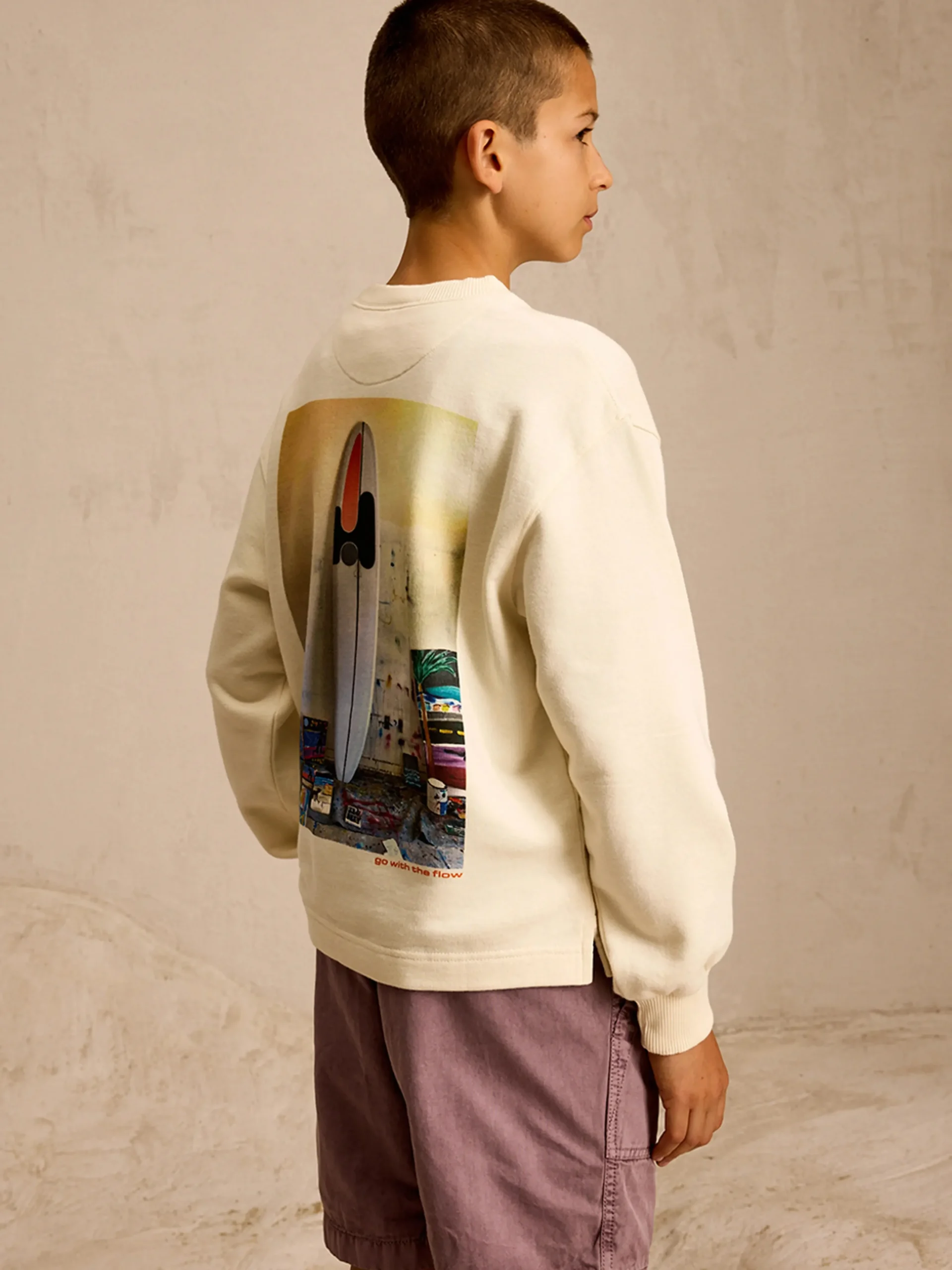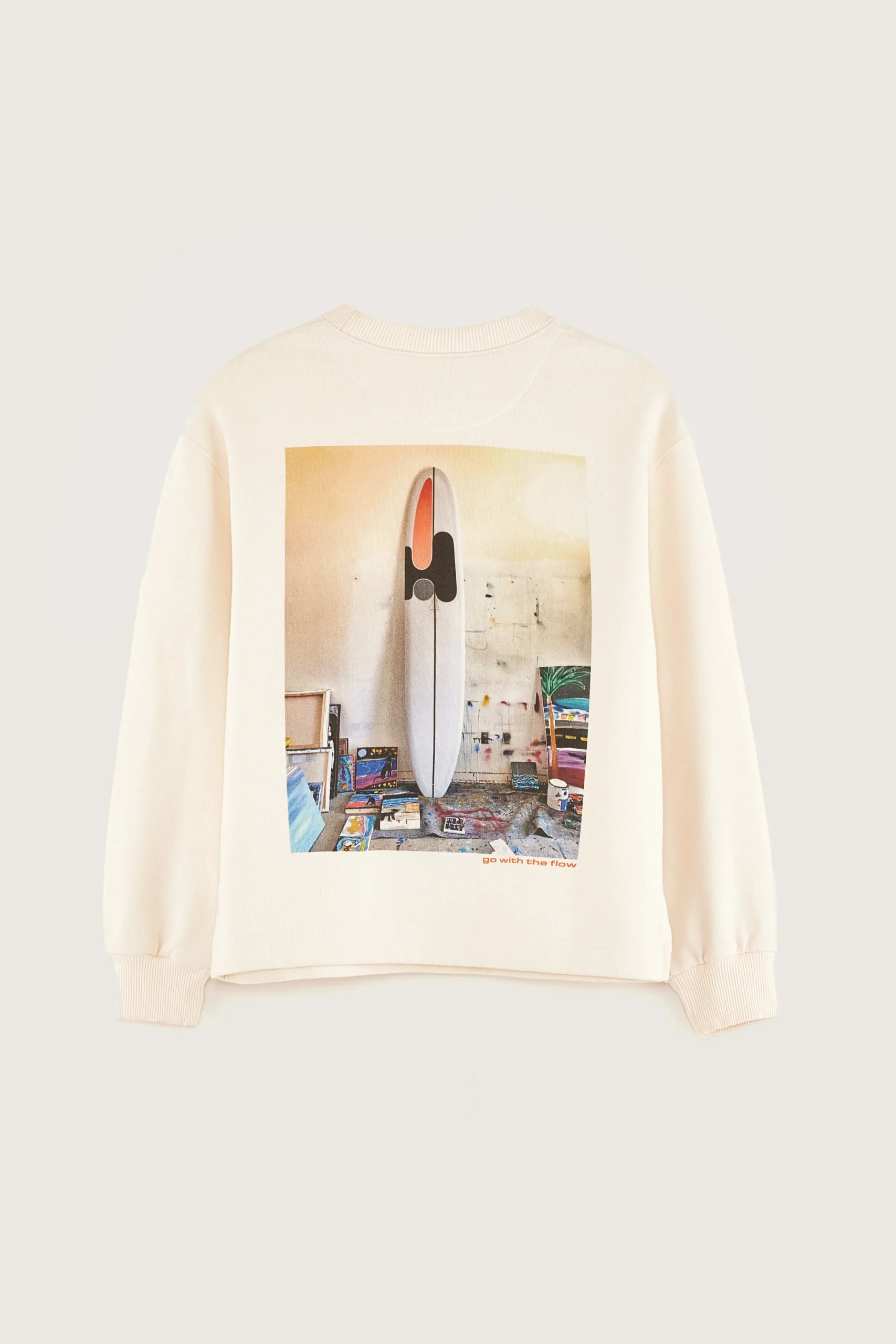 Los sweatshirt met ronde hals en rechte zoom met kleine zijsplitjes, gemaakt van katoenfleece en afgewerkt met een surf-…
