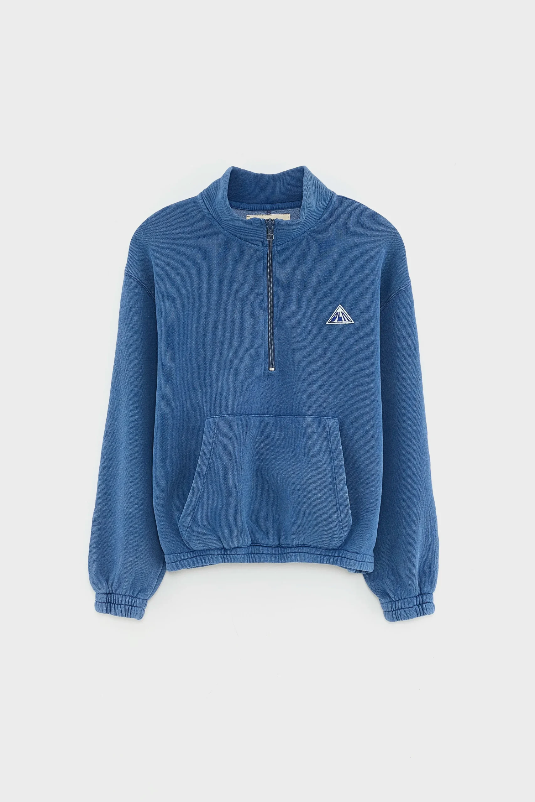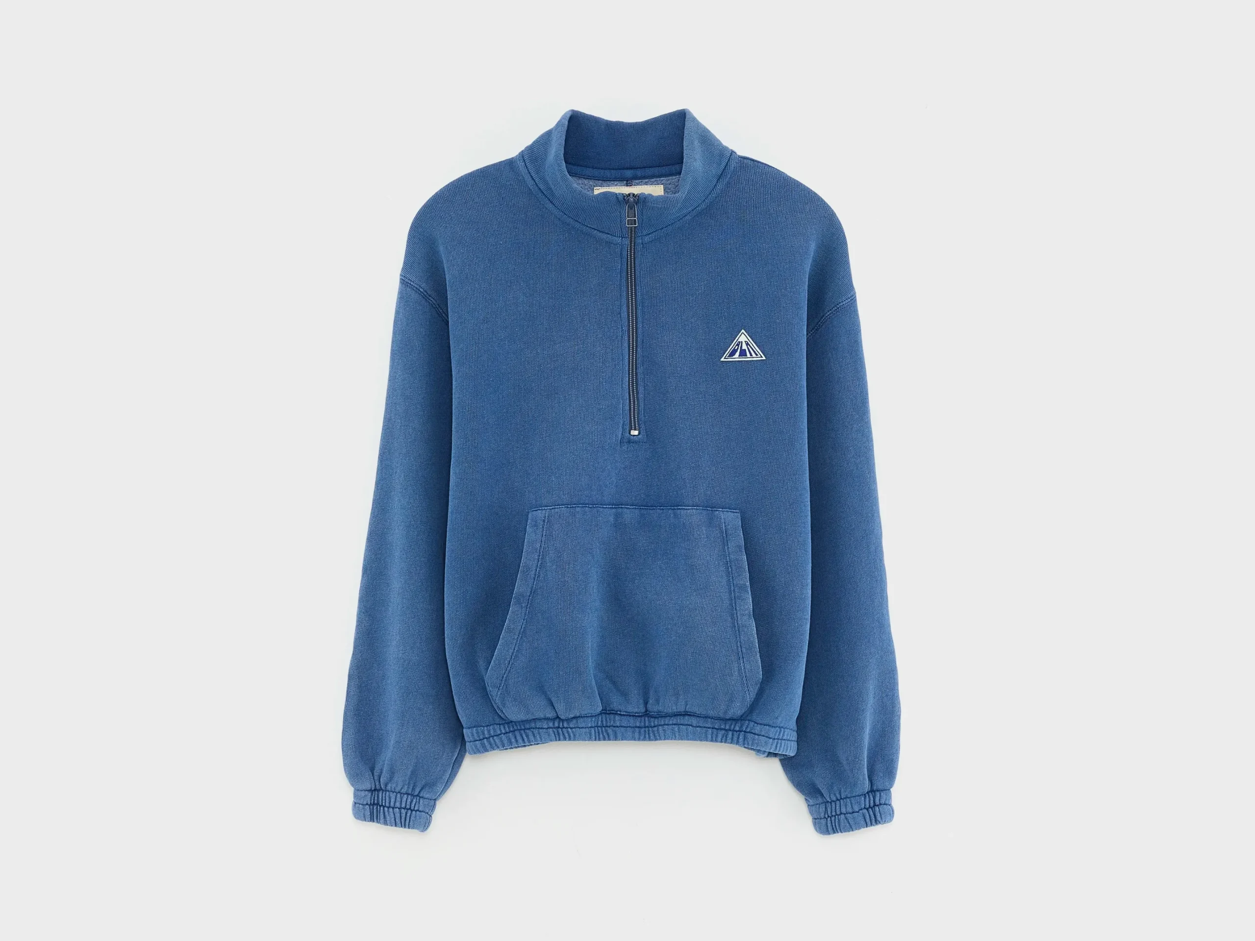 Los sweatshirt met opstaande kraag met halve ritssluiting en kangoeroezak van lichtblauw fleece en afgewerkt met een contrasterende ruitvormige BLR-patch.Losse pasvorm Opstaande kraag met halve ritssluitingLange mouwen Kangoeroezak Contrasterende ruitvormige patch